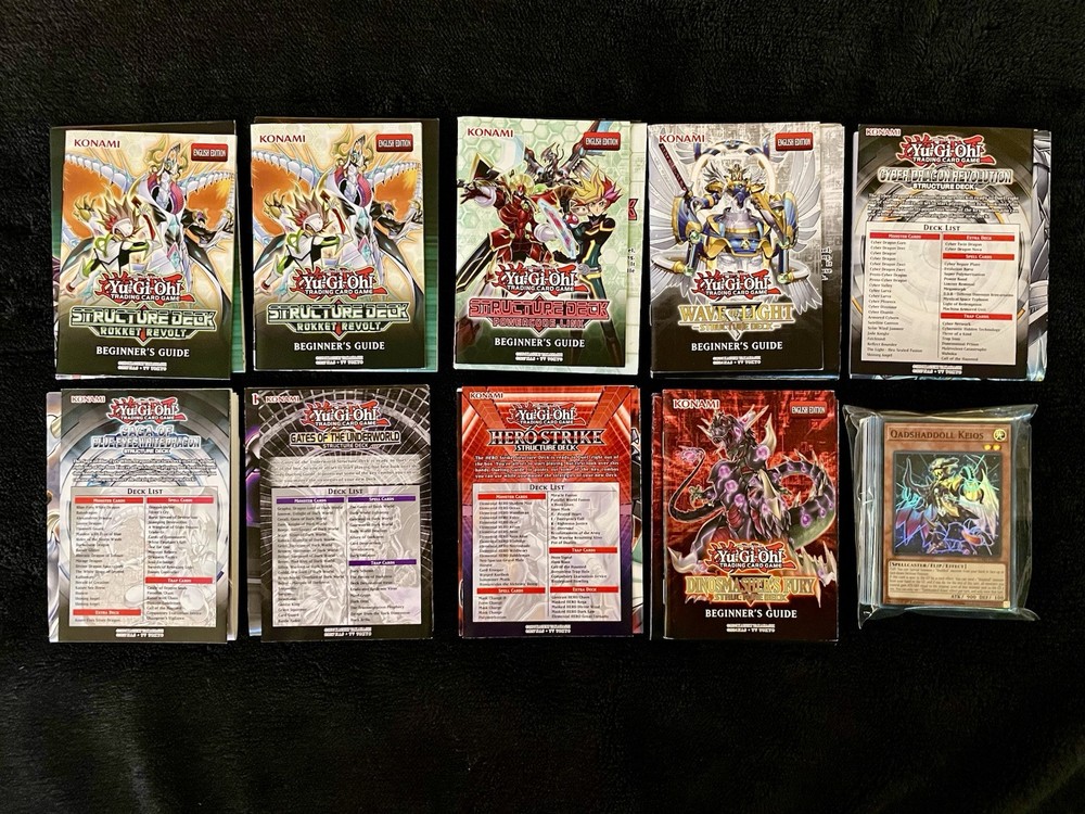 For sale is a lot of 10 Yu-Gi-Oh! structure decks. Several decks are first edition. All cards are in near mint condition and have been well cared for. Most decks have the included beginner’s guide and card zone except a few. Great for collectors or beginner players! The structure decks include: Gates of The Underworld Saga of Blue-Eyes White Dragon Cyber Dragon Revolution Hero Strike Dinosmasher’s Fury Wave of Light Powercode Link 2x Rokket Revolt Shaddoll Showdown