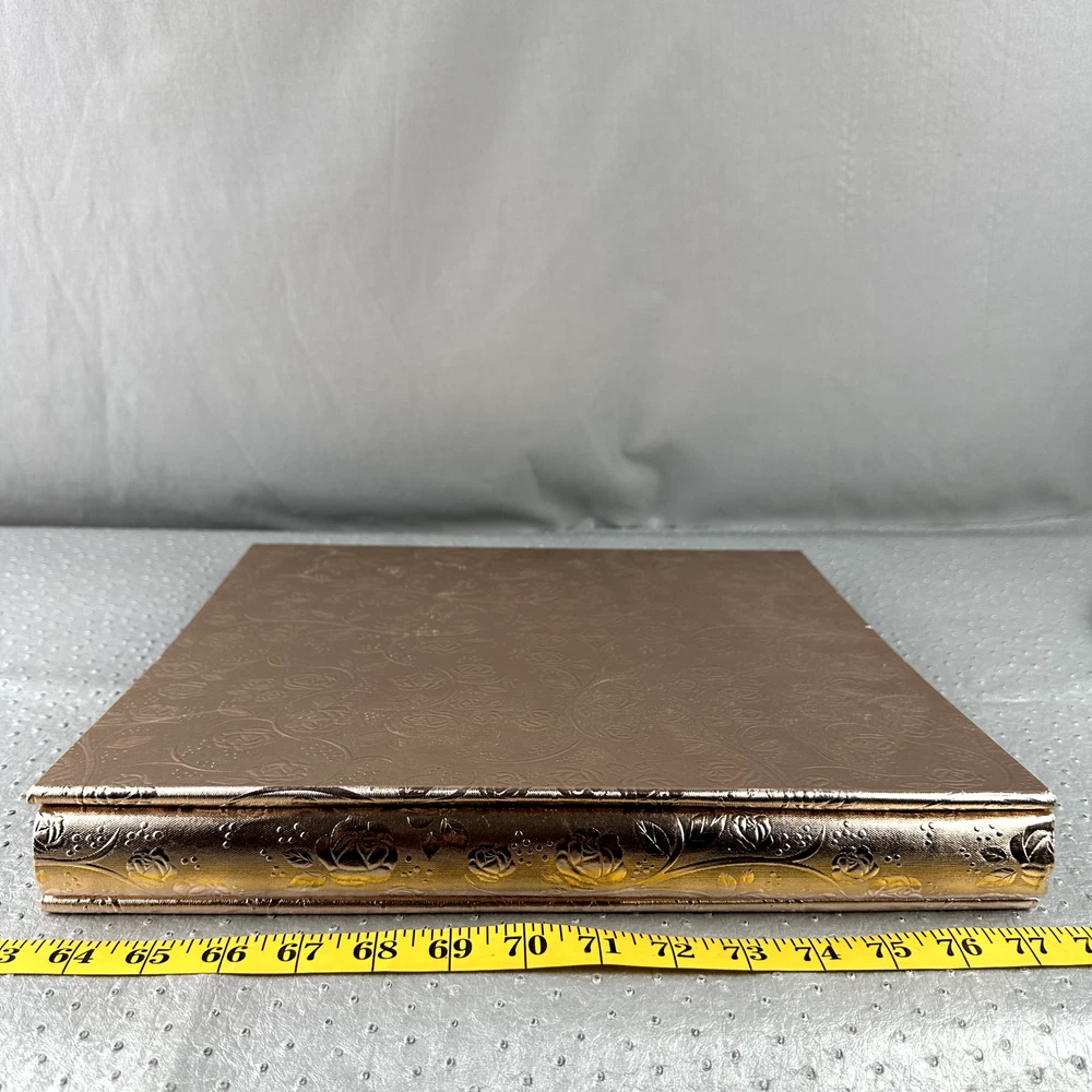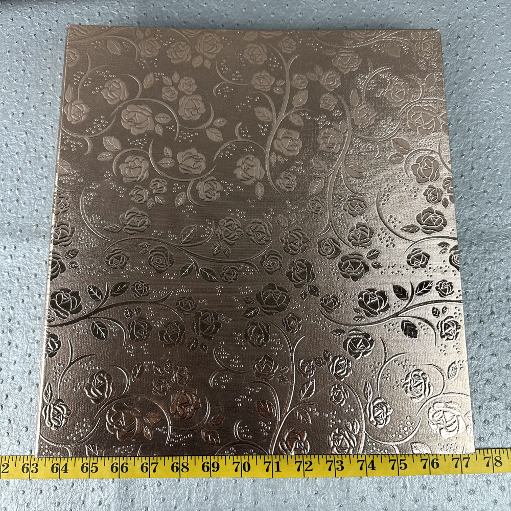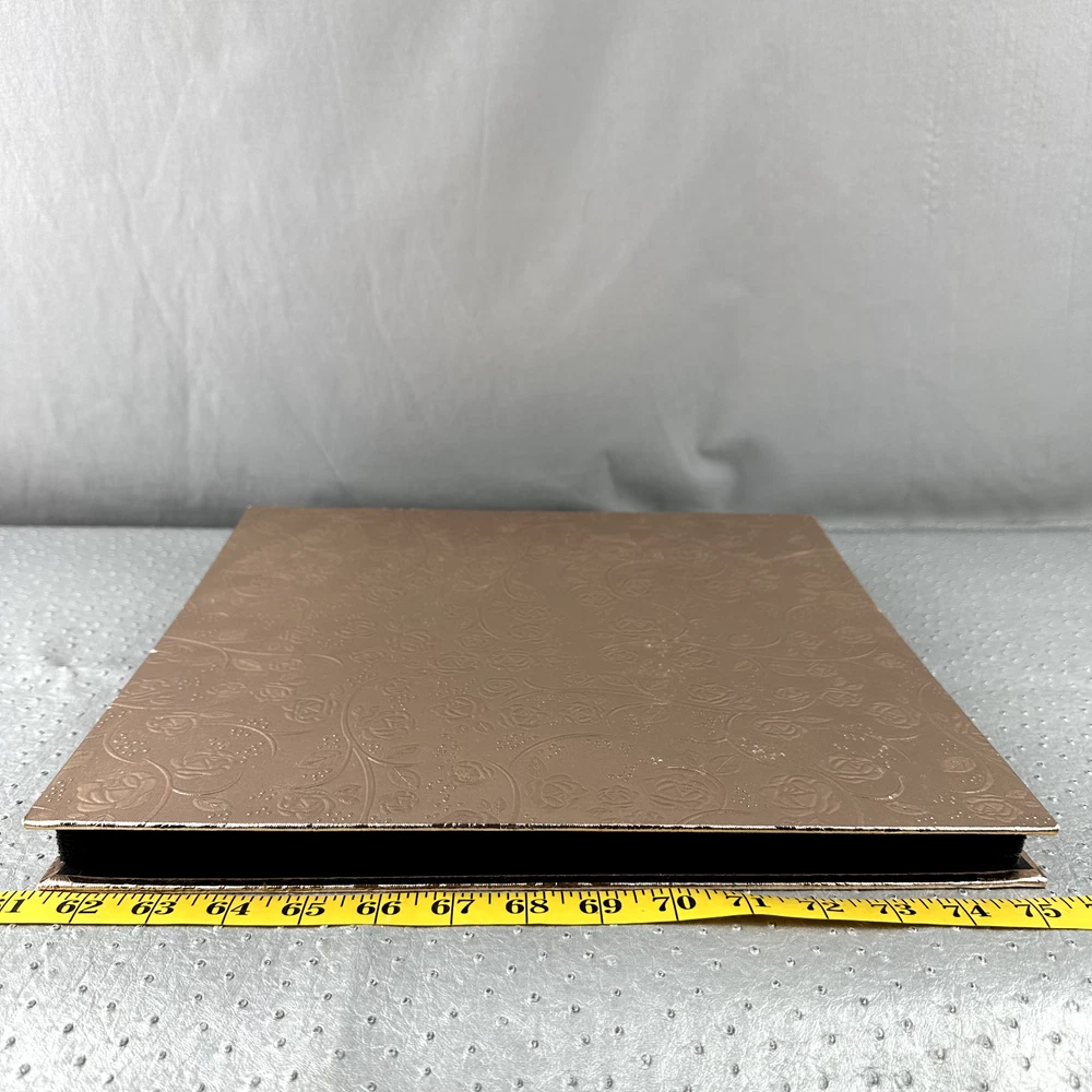 Beautifully Designed, PU Leather Floral 12x12 Photo Album in a Rose Gold Like Tone. Comes with 60 pages that can hold 5:4x6 photos on each side for a total of 600 photos. Cover has a small 1/8" blemish in the foil. Picture to show. Please view all pictures before purchase and for accurate description of item and measurements. Shipping: Item will ship within three business days of cleared payment. Typically within 24hrs.
