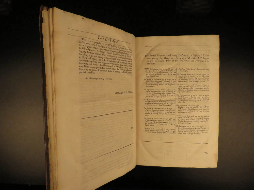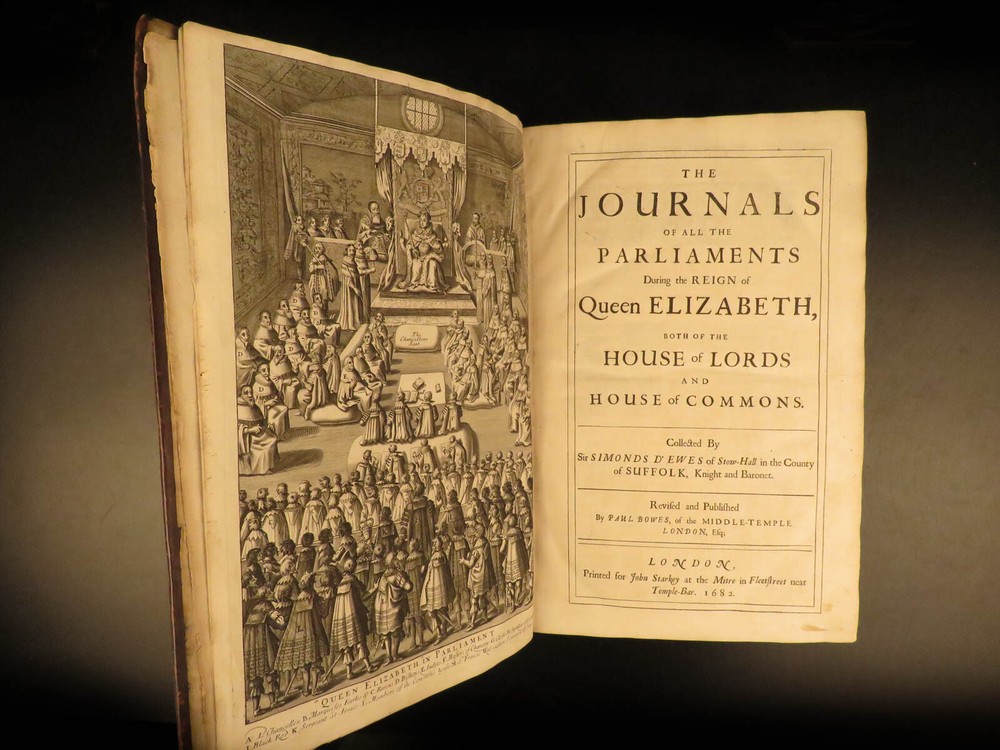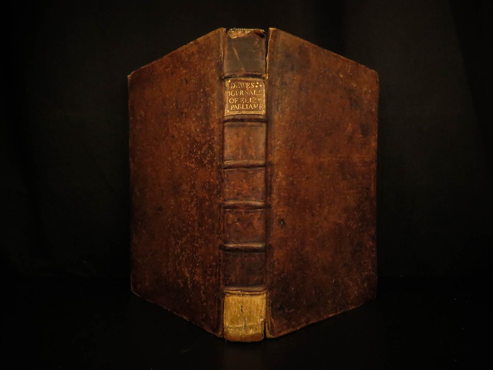 1682 1 ed Journal of British Parliament Queen Elizabeth I England d’Ewes Politics The most valuable source on the British Parliament during the reign of Elizabeth I! Simonds d’Ewes was a 17 th -century English politician who served as a member of Parliament. He was an important historian who is best known for his account of the British parliament and politics in the 16 th -century. This work was a collection of journal entries and anecdotes which were first published in 1682, decades after d’Ewes death. The DNB notes of this book: “a great and very valuable work” Item number: #9543 Price: $950 D’EWES, Simonds The journals of all the parliaments during the reign of Queen Elizabeth, both of the House of Lords and House of Commons London: Printed for John Starkey, 1682. First edition. Details : · Collation: Complete with all pages o [12], 689, [19] · References: Wing D 1250; Arber's Term cat, I 486; ESTC R 303; · Language: English · Binding: Leather; tight & secure · Size : ~14.25in X 9.5in (36cm x 24cm) Our Guarantee: Very Fast. Very Safe. Free Shipping Worldwide. Customer satisfaction is our priority! Notify us with 7 days of receiving, and we will offer a full refund without reservation! 9543