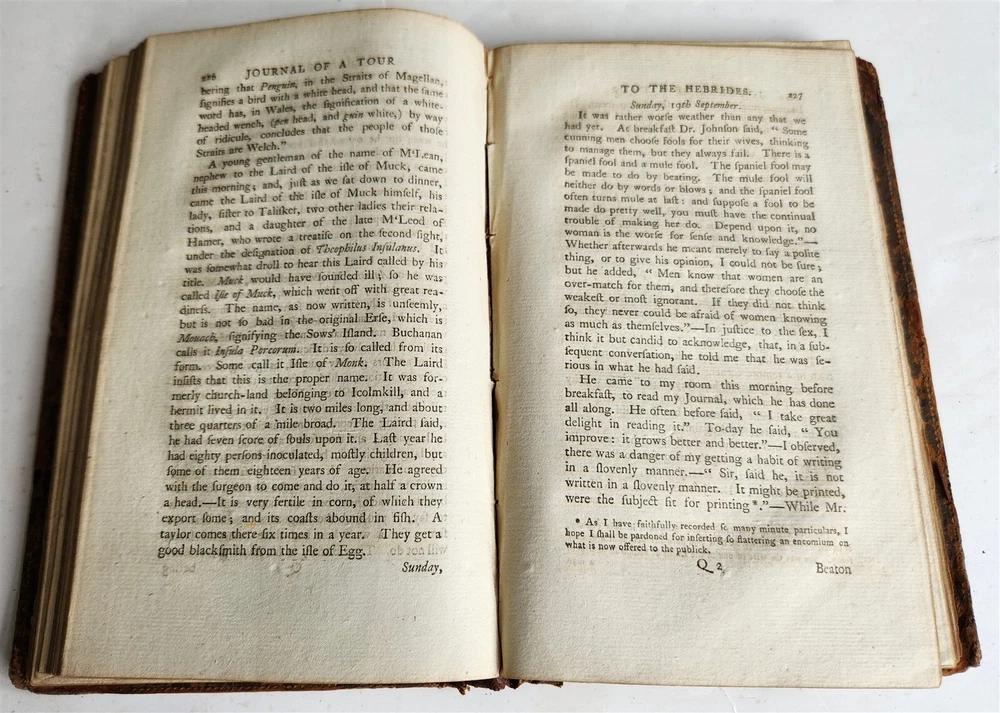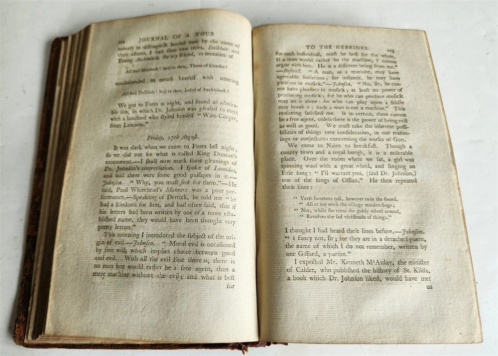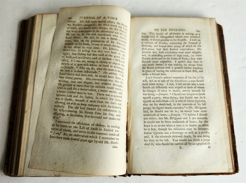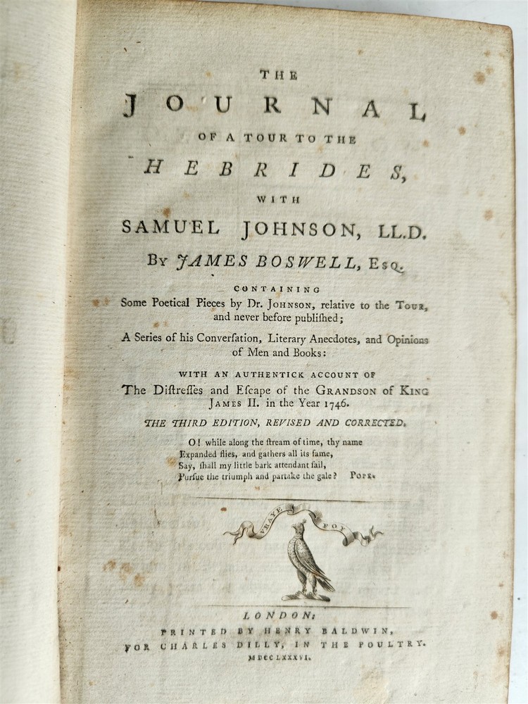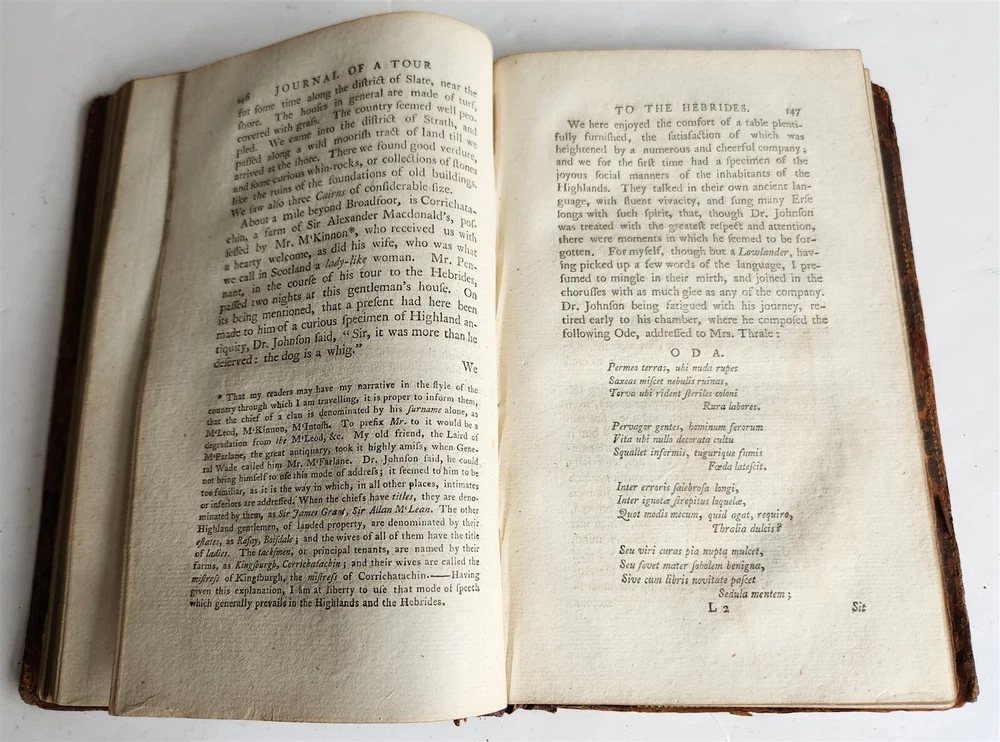 This antique 1786 edition of Boswell’s *Tour to the Hebrides* is a treasure for literature lovers! The original calf binding, though worn, adds charm, and the inclusion of Johnson’s unpublished poetry and lively conversations makes it fascinating. The detailed accounts of their travels, literary insights, and historical anecdotes create an immersive experience. A must-have for collectors of classic journeys and 18th-century thought!