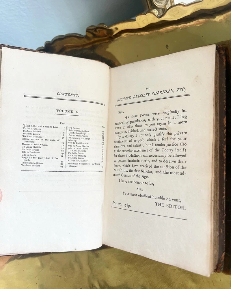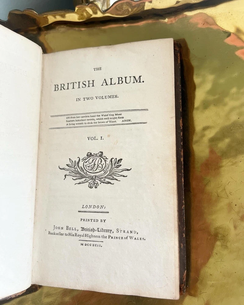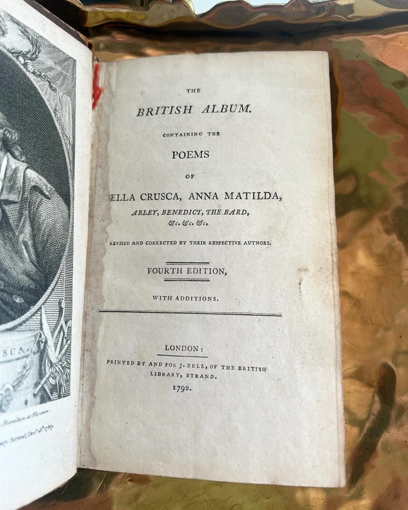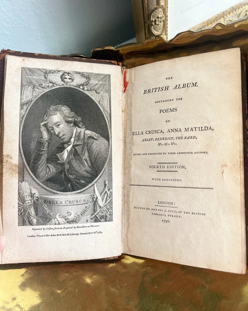 Indulge in the world of English poetry with this 1792 British Album Volume 1 featuring the poetic works of Della Crusca, Anna Matilda. The leather-bound book was published by John Bell in London, England, making it a rare find for literary enthusiasts.