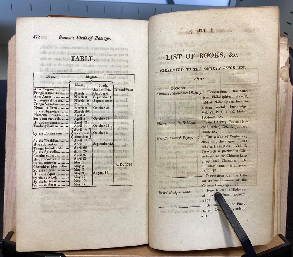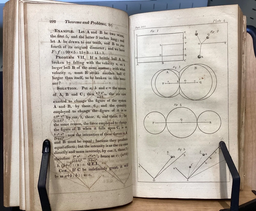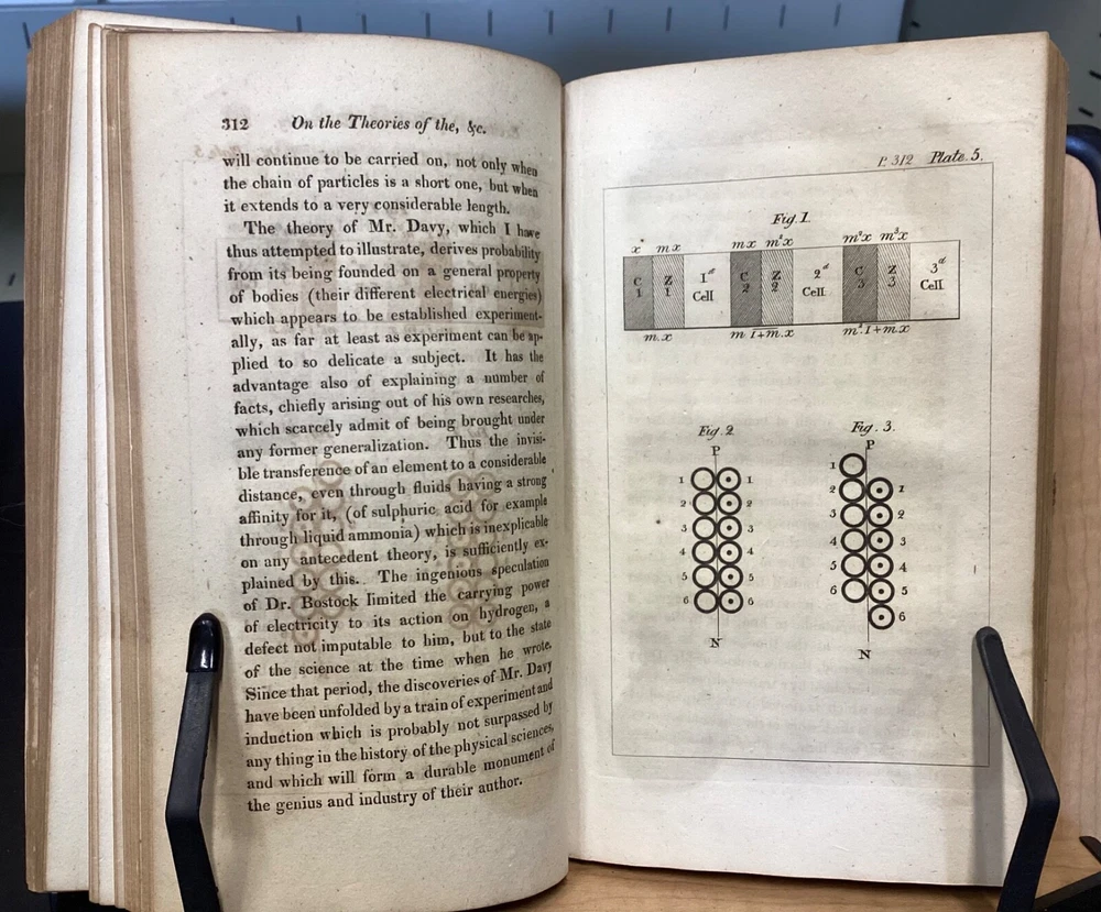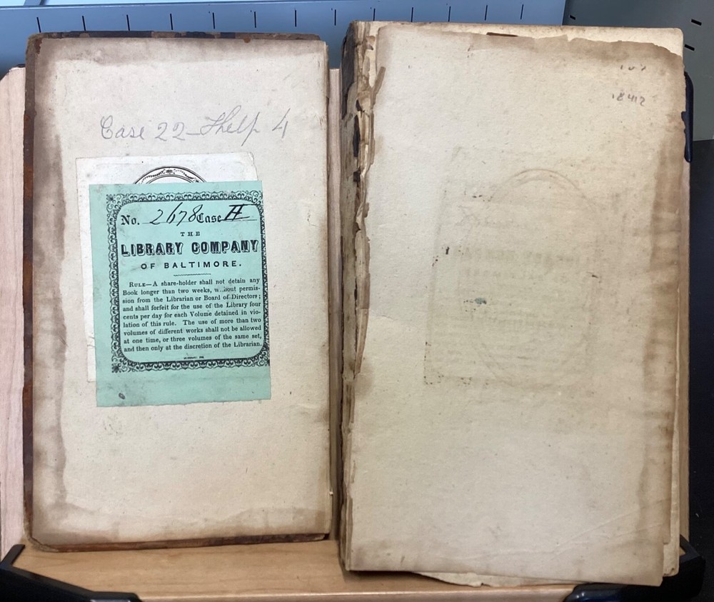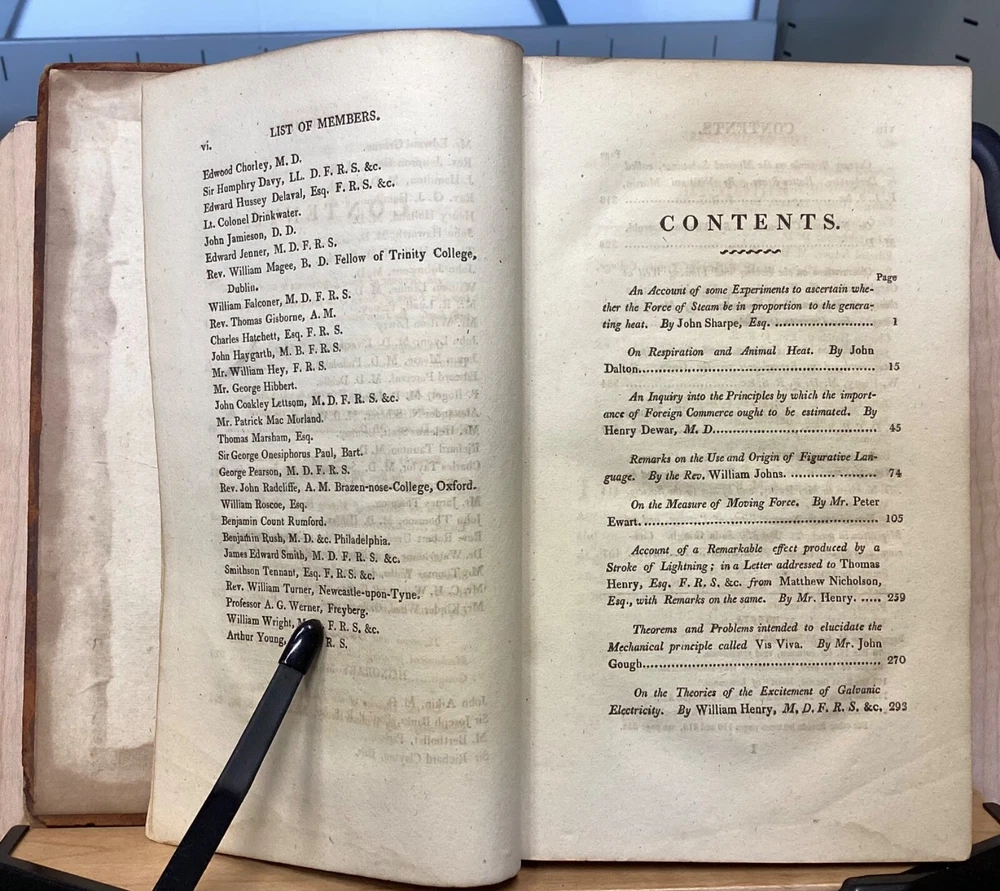 Memoirs of the Literary and Philosophical Society of Manchester, Second Series, Vol. II, R. Bickerstaff, London, 1813, 484pp, leather, 5 x 8.5", 8vo Poor condition/as is. Front and rear boards are completely detached from binding. Chipping and redrot present on boards. Tips are bumped. Very little of the spine is still present, the rest having chipped off. Bookplate on front pastedown for The Library Company of Baltimore. Marginalia on front endpapers. Toning, age-staining, and tea-staining throughout textblock. Includes 5 fold-out plates and 4 full-page plates. The plate between 262-263 appears to have been ripped out. Imprinting of illustrations and plates to opposite pages. Please see photos and ask any questions prior to purchase. The Literary and Philosophical Society of Manchester is the second oldest learned society in Britain, founded on the 28 February 1781. The society organizes a range of lectures, including the Wilde, Joule, and Dalton Lectures and three lectures annually specifically for Young People. Membership is open to anyone over 16 years of age and lectures are held both in person at venues in Manchester City Centre, and (since 2020) online. The society's Memoirs were first published in 1783 and were, at the time of its launch, the only regular scientific journal in the United Kingdom except for the Philosophical Transactions of the Royal Society . Memoirs contains the transactions of the society (most notably the text of many recent lectures) and is distributed to members and to similar institutions throughout the world by subscription. Copies are also available for purchase by non-members. FORN-MSB-0124-TUB0002-JC67
