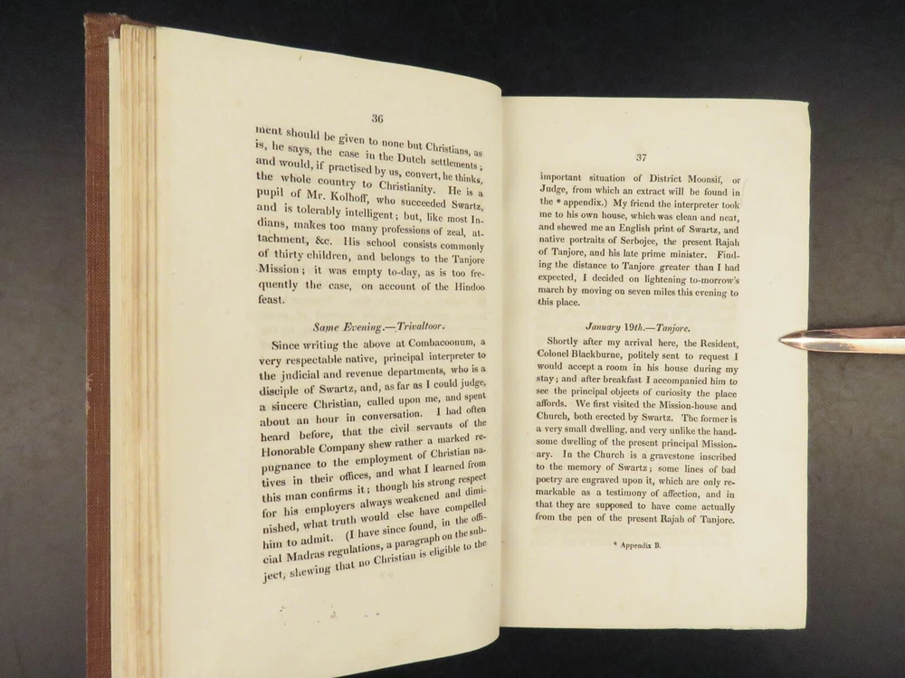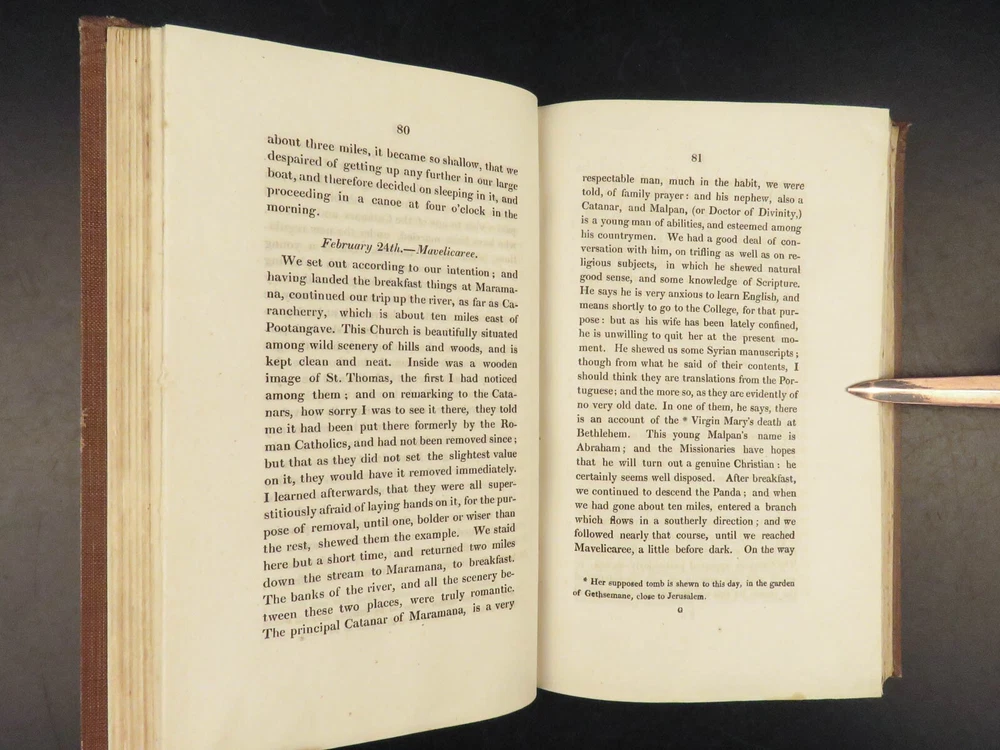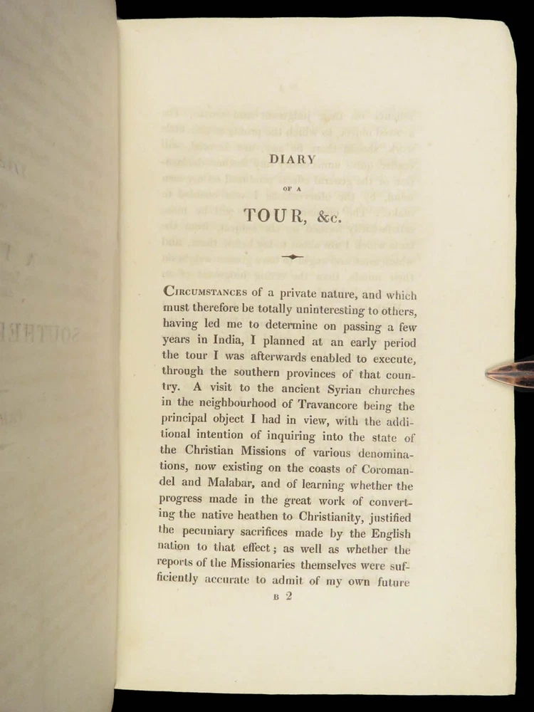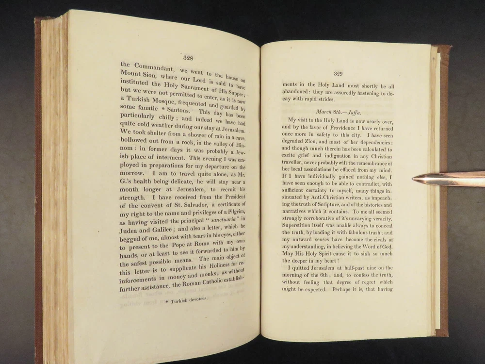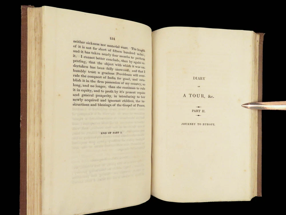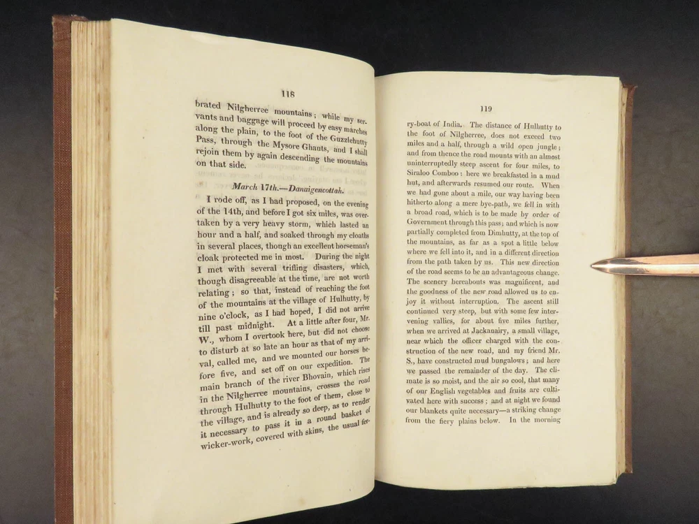 1823 Diary of Tour in EGYPT South INDIA Palestine MAPS Voyages Digby Mackworth Digby Mackworth’s “ Diary of a Tour ” was the English military officer’s travelogue of his voyages in India, Egypt, and Palestine. This journal offers a first hand, yet accurate account of Egypt, Southern India and the Middle East as it was during the early part of the 19 th -century. Mackworth includes impressive illustrations of the things he encountered – bridges, desert homes, and landscapes. Though, without question, the most desirable aspect of this work is the highly coveted folding maps of Southern India and Egypt near the Red Sea. Item number: #24601 Price: $499 MACKWORTH, Digby Diary of a tour through southern India, Egypt, and Palestine, in the years 1821 and 1822 London: Printed for Messrs. J. Hatchard and Son, 1823. 1 st edition Details : · Collation: Complete with all pages o [8], 372 o 2 folding maps o 2 engraved plates · Provenance: Handwritten – [ Valeri Siddall ] · Language: English · Binding: Leather; tight and secure · Size : ~9in X 5.75in (22.5cm x 14.5cm) Our Guarantee: Very Fast. Very Safe. Free Shipping Worldwide. Customer satisfaction is our priority! Notify us with 7 days of receiving, and we will offer a full refund without reservation! 24601