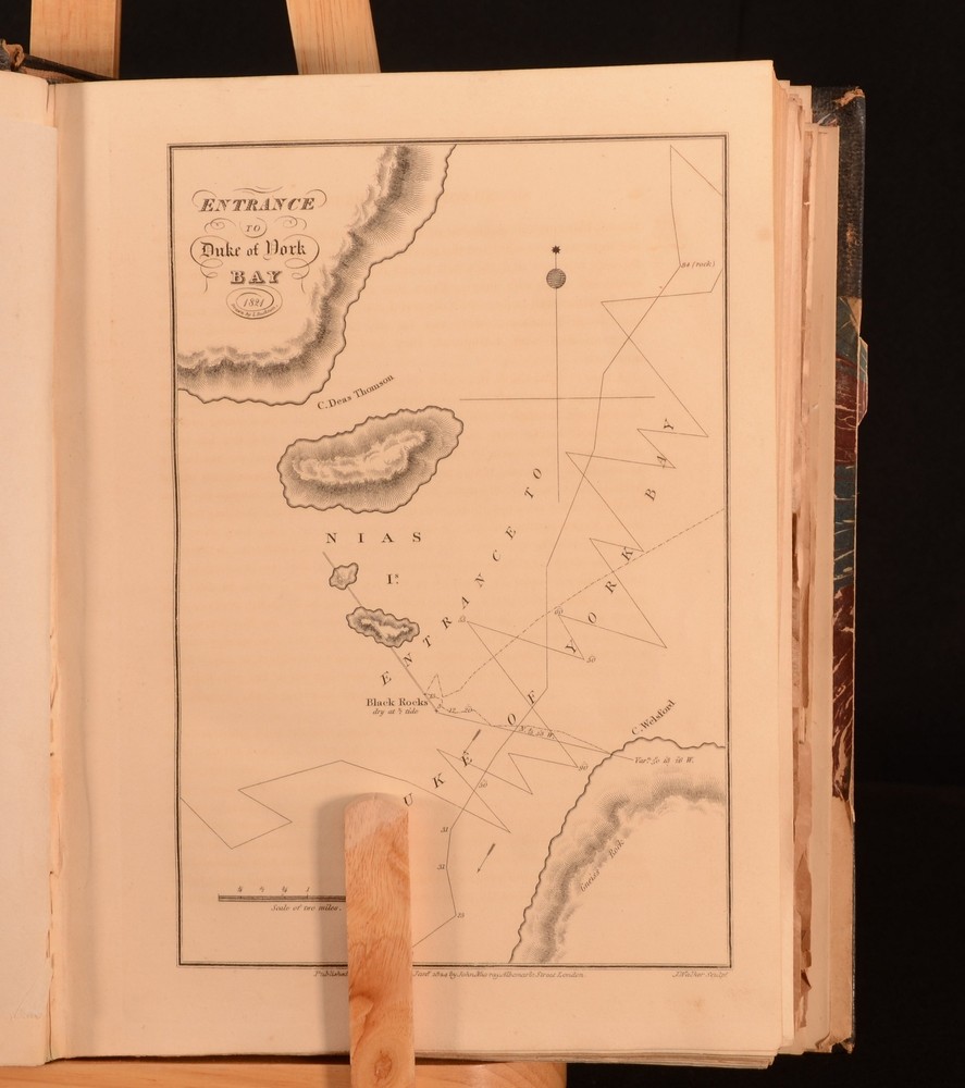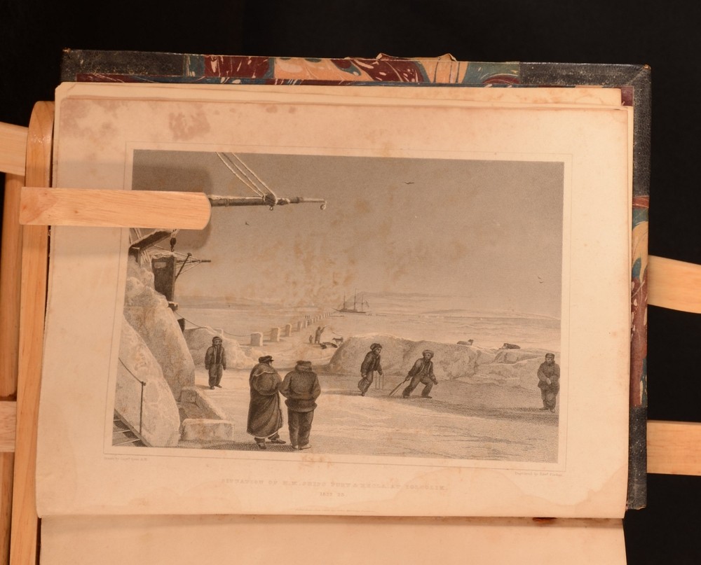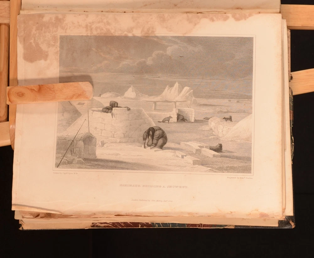 Click here to see our other books! Journal of a Second Voyage for the Discovery of a North-West Passage William Edward Parry 1824 John Murray : London 11.5" by 8.5" [9], ii-xxx, [4], 2-571, [1], [4]pp SUMMARY The first edition of this important travel work regarding Parry's second expedition through Hudson Strait into Hudson Bay. This copy belonged to Parry's daughter, Katharine. First Edition,Illustrated,Leather Binding Overall Condition: Good Only This book weighs 3 KG when packed UK Postage: £ 3.99 US Postage: £ 36.99 EU Postage : £ 25.99 European Postage: £ 27.99 Asia Postage: £ 47.99 Worldwide Postage: £ 69.99 DESCRIPTION With the inscription 'Katharine Brodie Hoare from W H Stene 1885'. Brodie Hoare was Katharine Parry's married name. The bookplate of her husband, Edward Brodie Hoare, is to the front pastedown. Brodie Hoare was a banker and Conservative Party politician. He was a director of Lloyds Bank and a chairman of the Colonial Bank. This work largely forms an ethnographical work, and looks at the indigenous people in the Arctic. He speaks of the 'Eskimos', their culture and way of life, with many illustrations demonstrating this. This is Parry's second expedition of discovery, whereby he sought to discover a North-West passage from the Atlantic to the Pacific. He commanded HMS Fury and was accompanied by HMS Hecla which was under the command of George Francis Lyon. The mission was to find a passage near the northwest end of Hudson Bay. Parry navigated the ice of the Hudson Strait to the Frozen Strait which found him at Repulse Bay which he found land-locked. from there he mapped the coast of the Melville Peninsula and came to the southeast corner of Winter Island. This work is told in chronological order. To the start there is an explanation of technical terms and the official expedition instructions. With publisher's adverts to the rear. With twenty-nine plates (including four folding) and nine maps (four folding). Plates at page 267, 271, 275, 295, 419, 437, 499, 531, 549, 551, are detached but present. Collated, lacking one plate. A first edition copy of this work, with an important association. CONDITION In a half morocco binding with paper covered boards. Externally, worn with lifting to the paper covered boards. Leather is lifting to the rear board. Front hinge is strained but firm. Bookplate to the front pastedown, Edward Brodie Hoare. Inscription to the recto of front endpaper. Rear hinge has failed with the textblock detached from binding. Internally, Plates at page 267, 271, 275, 295, 419, 437, 499, 531, 549, 551, are detached but present. Pages are generally bright. Heavy damp staining to the extremities of 'Takkeelikkeeta', 'Groupe of Eskimaux', 'Nakahu and his wife', 'Eskimaux Building a Snow-Hut', 'Eskimaux Killing Deer in a Lake', and 'Eskimaus Children Dancing' plates. Damp staining to the extremities of most pages, heavier to the rear of the work, particularly the adverts. Chips to the extremities of 'Groupe of Eskimaux' plate. Loss to the 'Esimaux Implements weapons &c' plate, affecting the image. Occasional scattered spots to pages. Overall Condition: Good Only GLOSSARY OF TERMS Overall Condition (Dustwrapper condition rating is shown after that for the book itself, where a dustwrapper is present) Fine - Very well preserved copy showing very little wear Very Good Indeed - Only one or two minor faults, really a very attractive copy Very Good - Quite a wide term meaning no major faults but probably several smaller ones often expected given the age of the book, but still a respectable copy Good - Meaning not very good. Some more serious faults as will be described in the condition report under 'condition' Good Only - Meaning one or more faults that could really do with repair Fair - As with good only above but with other faults leaving a compromised copy even after repair Poor - Really bad and possibly seriously incomplete. We only sell books in this condition where their rarity or value makes them attractive none the less. Major defects will be described. GUARANTEE We offer a full money back guarantee on our descriptions. Please ask for details and conditions. We prefer PAYPAL. If you pay via PAYPAL we will post the item off the same or the next working day with the postage you have selected. Please note we cannot accept USD cheques