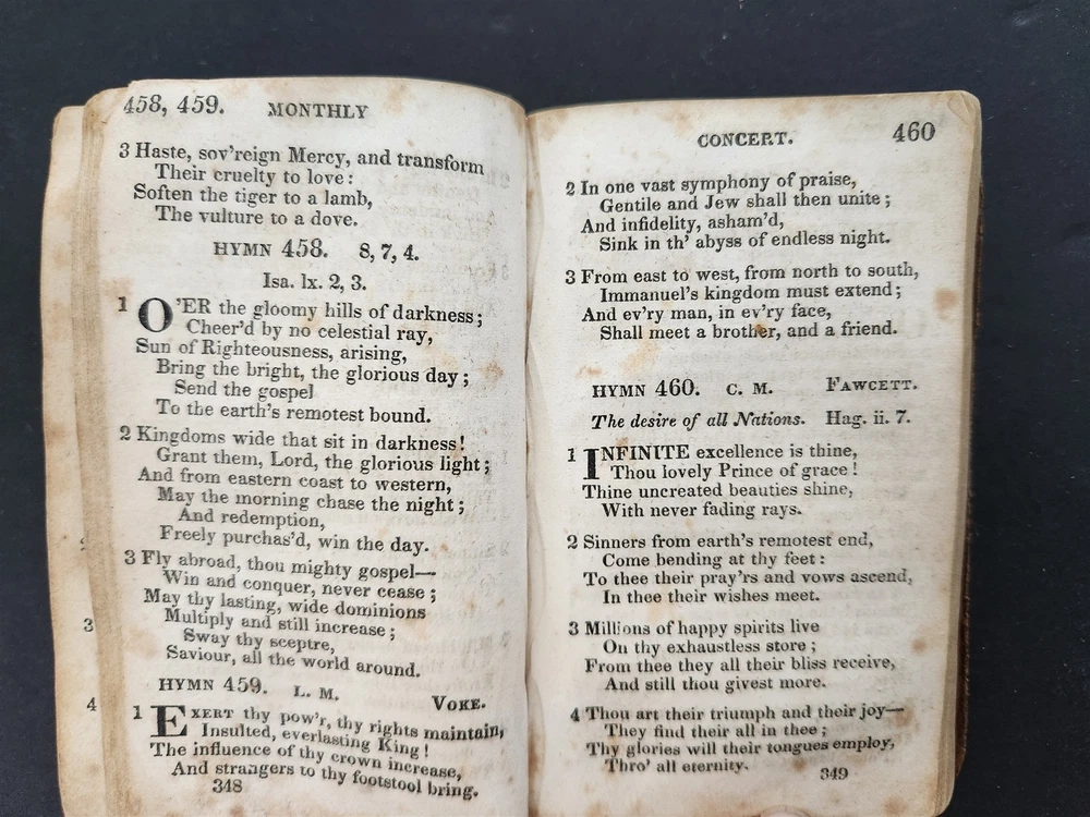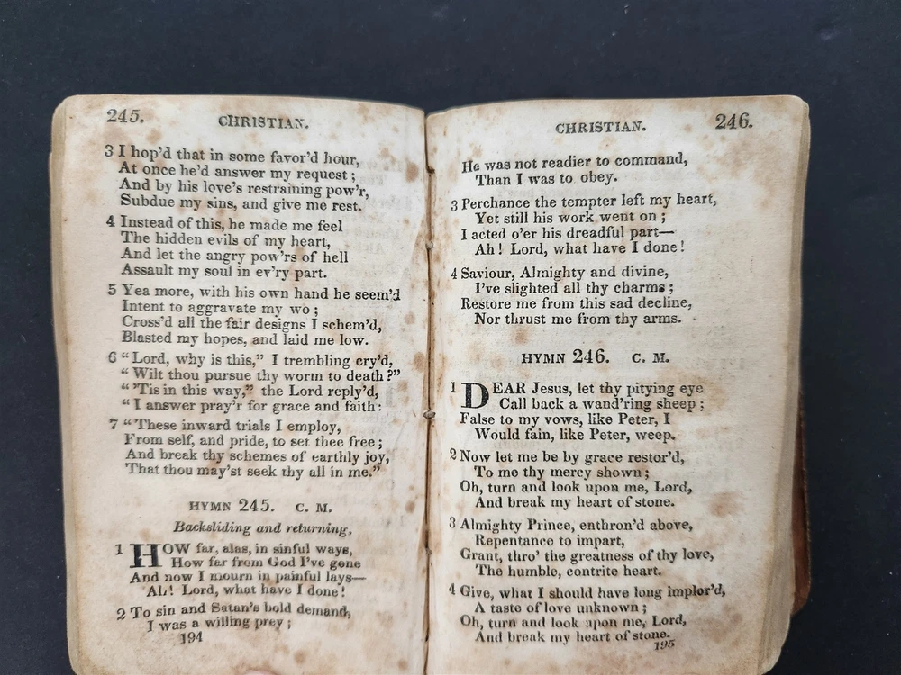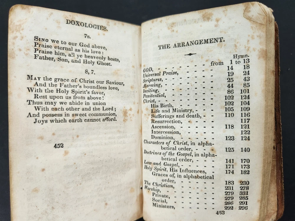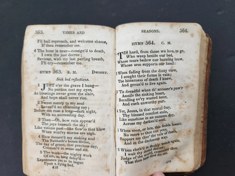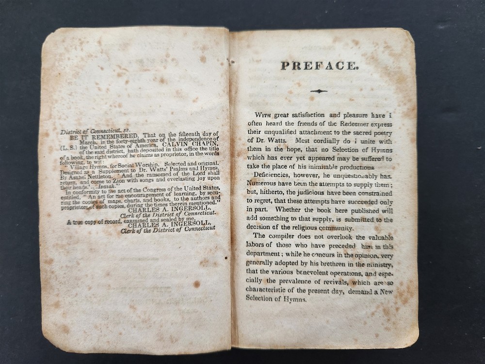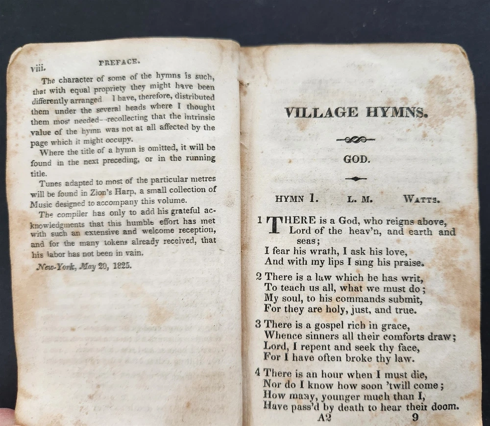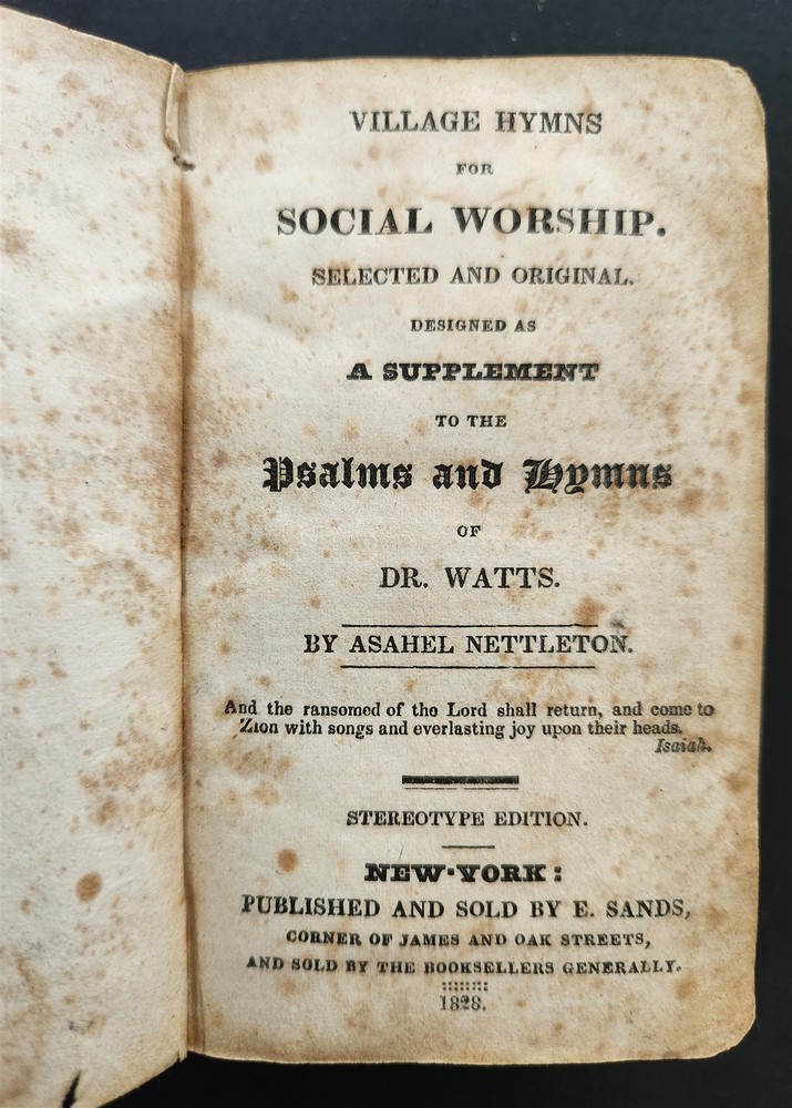 1828 antique VILLAGE HYMNS for SOCIAL WORSHIP of DR ISAAC WATTS Asahel Nettleton SCROLL DOWN for MORE PHOTOS in DESCRIPTION Click HERE to view or search ANTIQUE.COTTAGE listings. This listing is for the hardcover, leather over board book shown. Measures approx 4.75"x3". Nettleton, Asahel . Village Hymns for Social Worship-Selected and Original: Designed as a Supplement to Dr. Watts Psalms and Hymns . New York: E. Sands, 1828. CONDITION : Covers mostly detaching. Early repair with thread is no longer holding up. See listing description and photos. - International buyers are responsible to pay VAT or other Taxes to their countries as required. - eBAY collects and remits sales tax on behalf of several states. If you are a dealer, you can write to eBay to file a form to become tax exempt. LOC: LOC2: MEDIUMBOOKS06-TMKTK-F250126BDS35 Powered by SixBit's eCommerce Solution