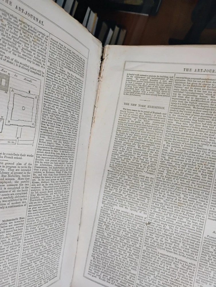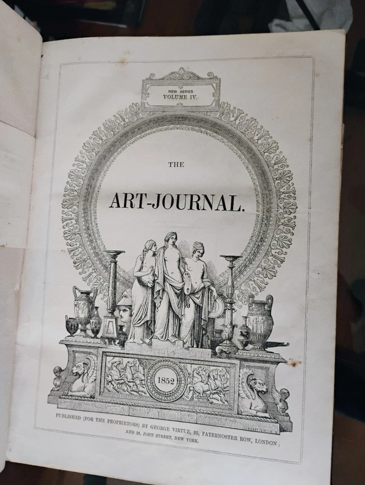 The Art Journal 1852 Half leather binding, there are a few book binder tags and one embossment in book, some foxing to plates as usual. Binding is cracked at page 233. Please let me know if you have any questions. Shipping will be with USPS Media Mail to keep costs down. I can ship with different methods if requested. 30 day returns.
