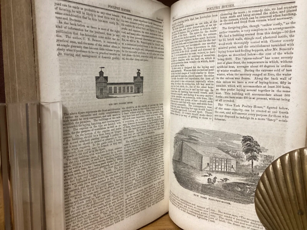 Pennsylvania Farm Journal, Devoted to Agriculture, Horticulture, and Rural Economy. Edited by S.S. Haldeman and printed in Lancaster, Pennsylvania by A.M. Spangler. 1852 and 1853, two volumes in one, 380 and 384 pp, 10.5” x 7.25”, 8vo, hardcover 3/4 leather. In good condition, with superficial rubbing and wear to exterior, primarily along edges and corners. Hinges remain in good condition and text block remains bound well. Bookplate and small inscriptions at front. Nicely illustrated with black-and-white sketches of animals and more. General age-related toning to pages, along with periodic foxing and wear. Please see photographs and ask any questions prior to purchasing. A scarce 1st and 2nd yearly volumes of Pennsylvania agricultural news, bound as part of a larger set. COLN1852BHKD-0724-aj1768