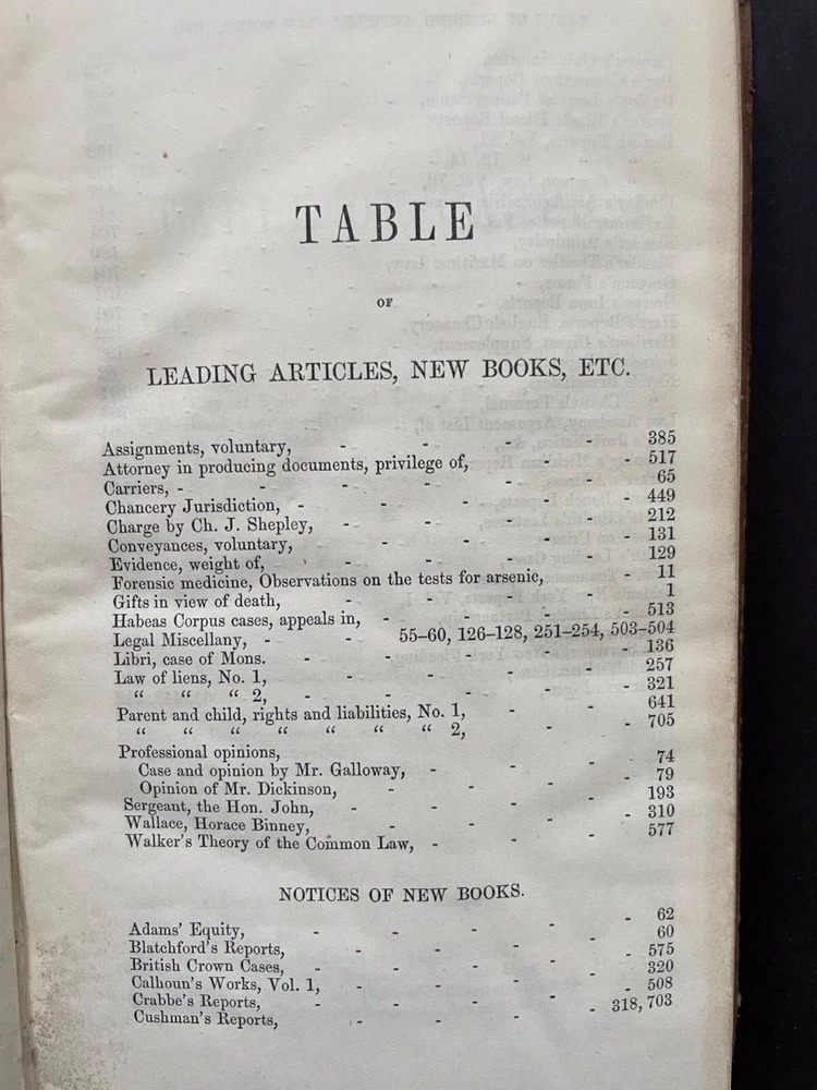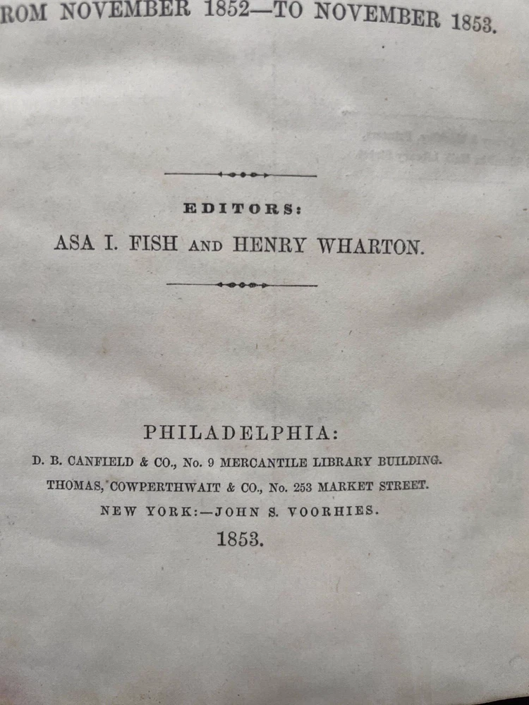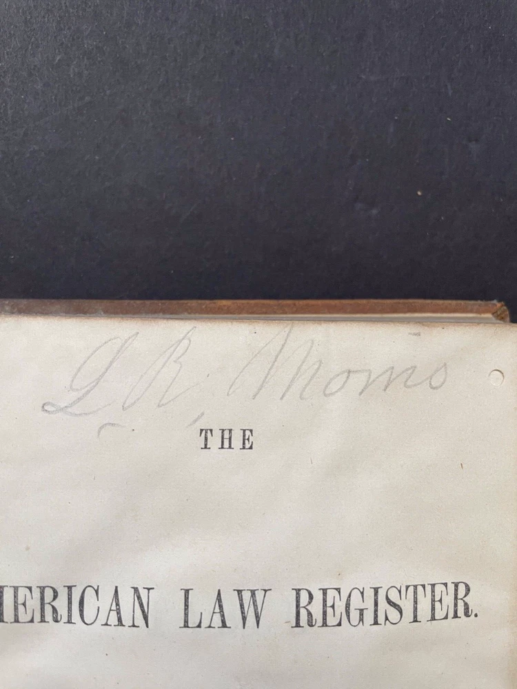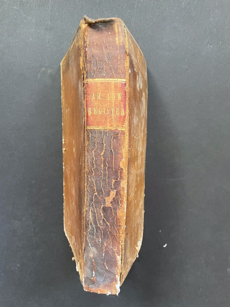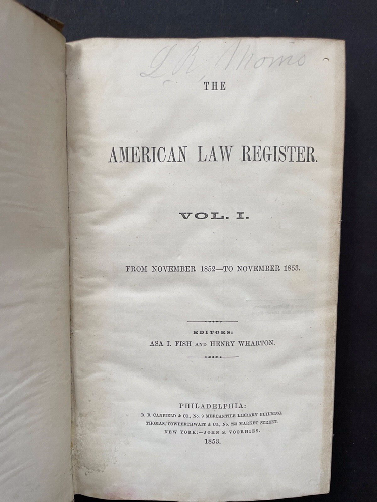 Offered here is Volume 1 of the the American Law Register, published in 1853, which is the first volume of the first university law school law review in the United States. The University of Pennsylvania began publishing the law review as the American Law Register , which was originally written and edited by practitioners. In 1892, the name was changed to the American Law Register and Review and later, in 1908, to the University of Pennsylvania Law Review and American Law Register . Finally in 1945, the name was changed to its current title, the University of Pennsylvania Law Review . The first volume to be edited by law students was published in 1896. This book is from my personal collection which I am beginning to sell off. Unless noted otherwise in the description, the prints, art and other items that I sell are not "reproductions". For example, offered maps are of the period. Please check my other listings for additional items of interest. I will combine shipping.