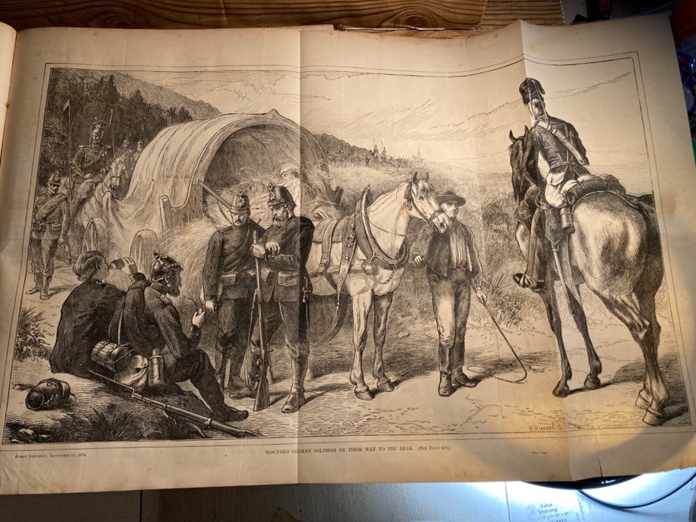 The product is an original 1870 Volume 2 of "Every Saturday," an illustrated journal containing published issues from July-December 1870. Contains beautiful prints inside that would be neat to frame. See pictures for condition