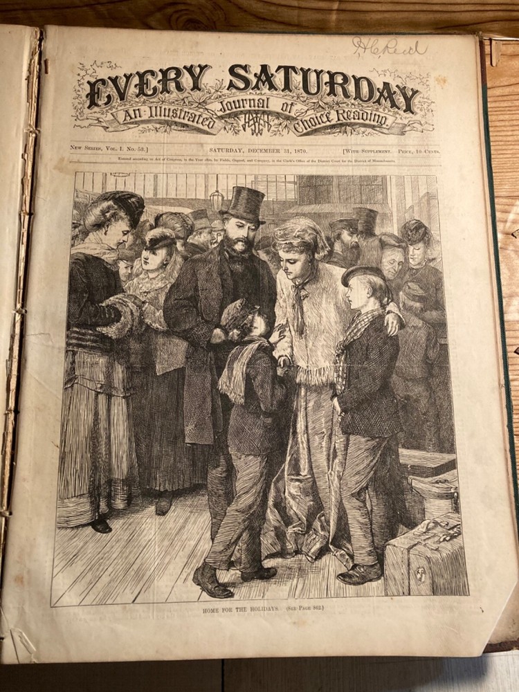 The product is an original 1870 Volume 2 of "Every Saturday," an illustrated journal containing published issues from July-December 1870. Contains beautiful prints inside that would be neat to frame. ...