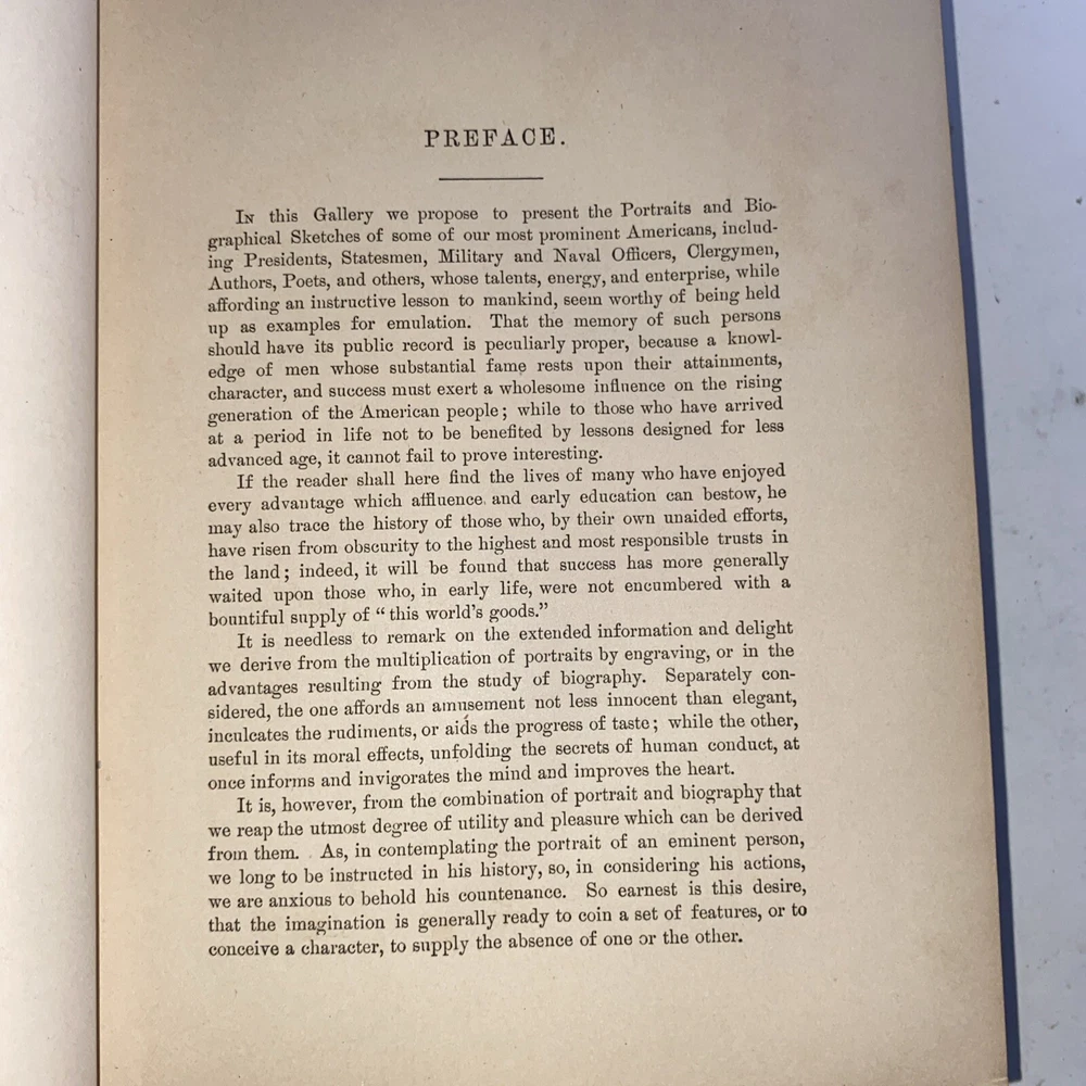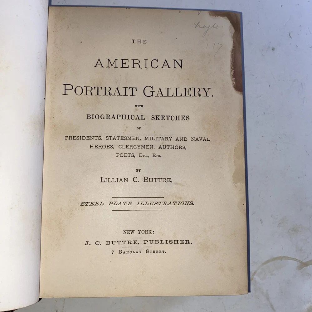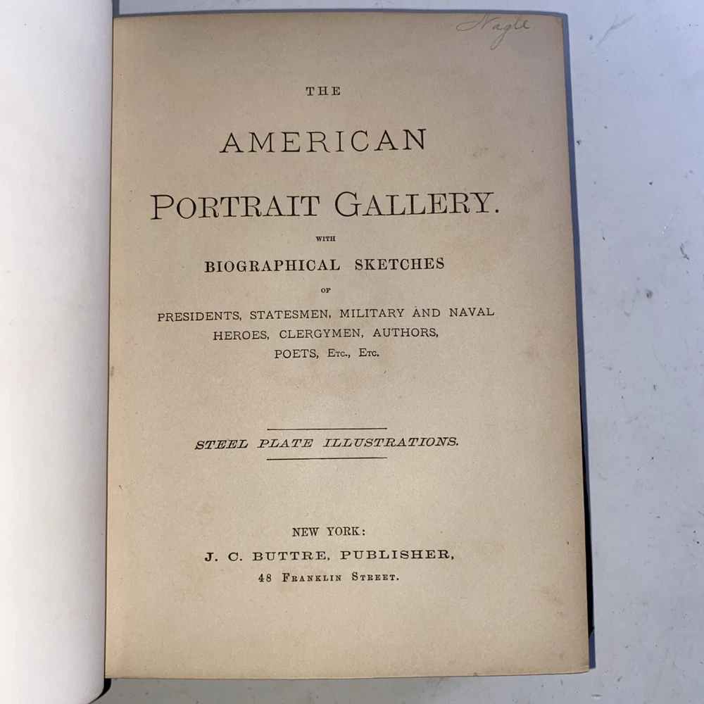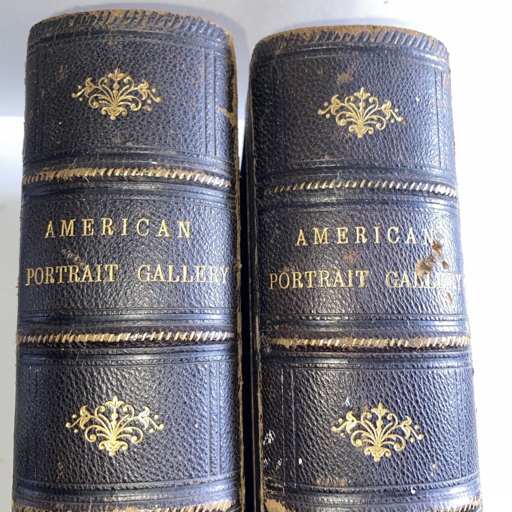 1877 Antique The American Portrait Gallery Vol. 1 & 2 Steel Plate Illustrations Biographical sketches presidents, statesman, military, naval, heroes, clergyman, authors, & poets. Books have some wear. Please see pictures. Binding in good shape.