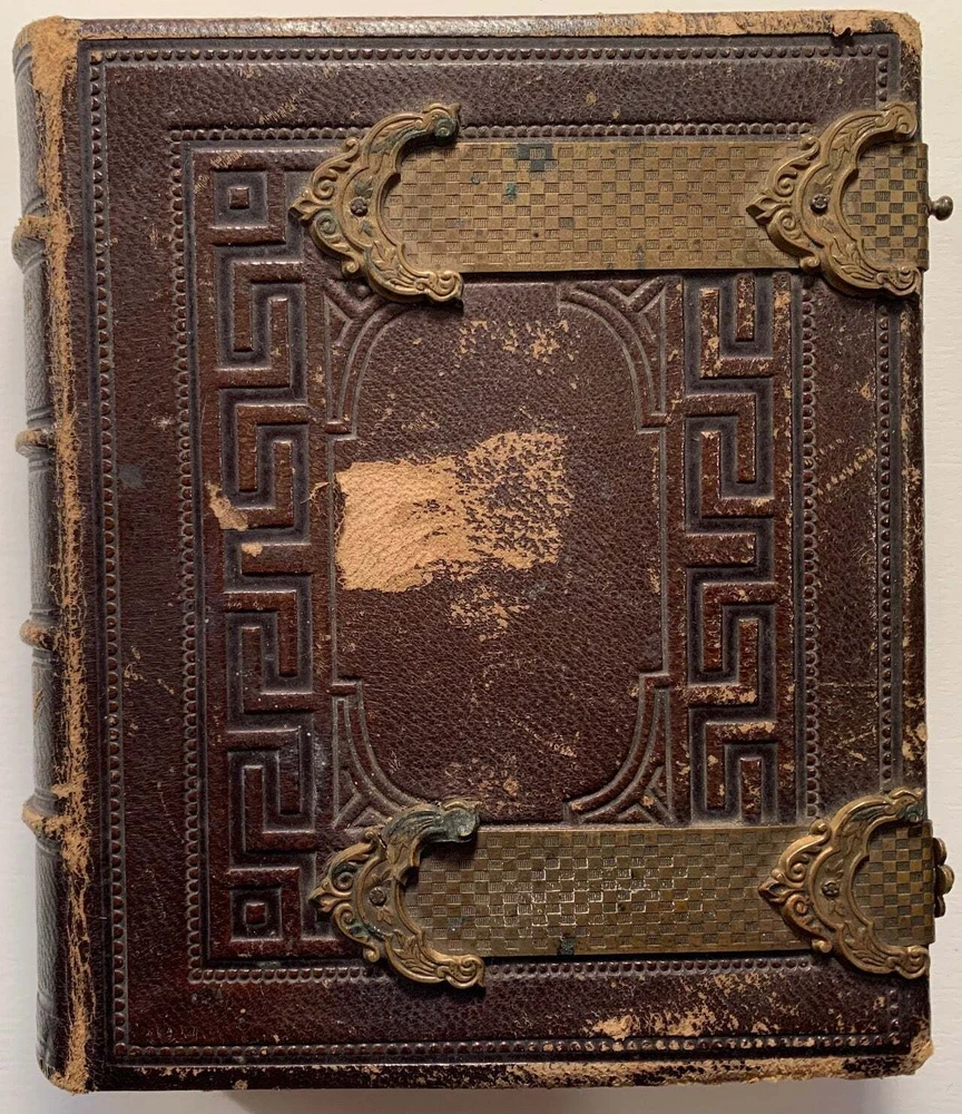 1880's Leather-Bound Well Appointed Gauffered Edged CDV and Tintype Album--30 Images Title: 1880's Leather-Bound Well Appointed Gauffered Edged CDV and Tintype Album--30 Images Publication: 1880's Description: Leather-Bound Well Appointed Gauffered Edged CDV and Tintype Album 1880's--30 Images Fully embossed leather-bound album (6 x 5 1/4 inches) with metal straps and buckles. One buckle missing; leather remains supple yet edges are rubbed with area 1 ¼ x ¾ inches on front with surface leather gone. Overall, very good condition. "Photograph Album" in gilt on spine. All edges gilded with very pleasing gauffered edges. Gauffered edges are created by heated finishing tools or rolls which indent a decorative pattern. In this case the edges exhibit a repeating floral design. Decorative endpapers with gilt dentelles inside front and back board. Interior pages have light soiling, especially to fore edge. All the photo windows are intact. This little album is a prime example of an 1880's CDV album. Nice embellishments in leather boards, gauffered edges with gilt finishes. The 30 photos include twenty-five CDV's and 5 mounted tintypes. Not all photos examined but those we did pull out were mostly from mid-west photographers (Illinois, Indiana, Ohio, Wisconsin, Missouri) with one Boston studio included. The subjects in the photos are not identified as best as we can tell. CDV collecting was a craze in the 1860's thru 1880's. Relatives and friends would mail far-flung family members newly photographed images; friends would leave CDV's as calling cards. The CDV format was easier and cheaper to produce than tintypes, and were extremely popular throughout North America and Europe through the 1880's. Seller ID: 262 Subject: Carte de Visite (CDV), Photograph Albums, Tintype Stellar Books & Ephemera is an on-line antiquarian dealer offering a wide variety of unique, unusual and rare artifacts of American History ranging from letters, manuscripts, archives and diaries to 19th century photography and 20th century letterpress. We specialize in the ephemeral and occasionally offer finer books which strike our fancy. If we stock it, you know it's unique. Terms All items are guaranteed to be as described or they may be returned within 30 days of receipt. This listing was created by Bibliopolis.