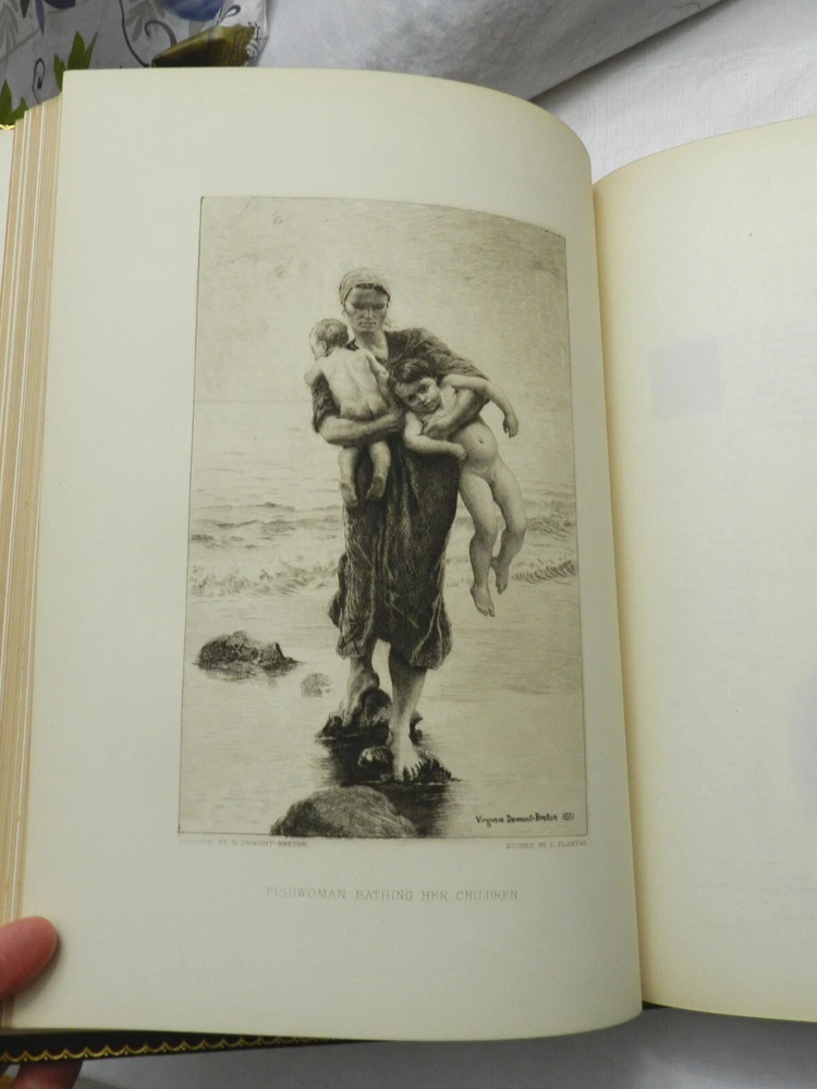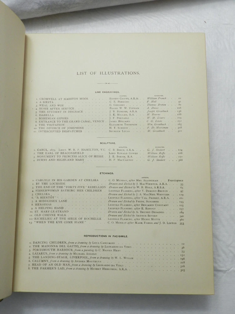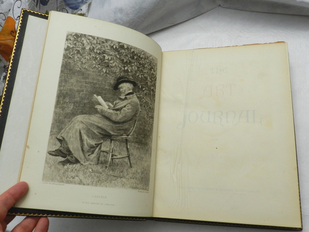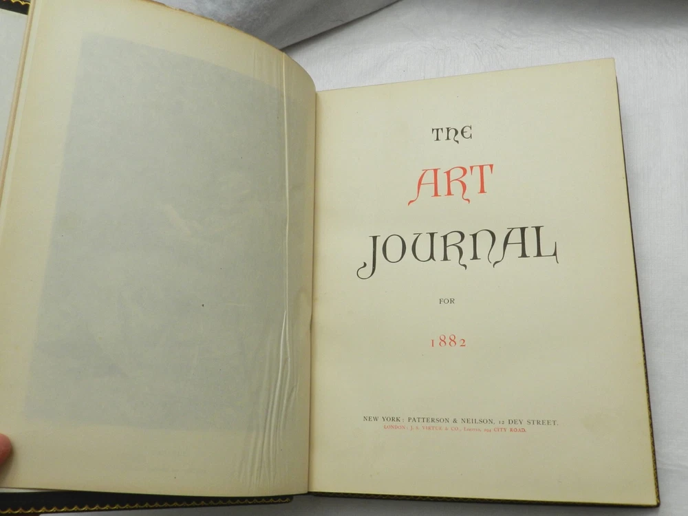From Wikipedia on the Art Journal, which began as a journal based in London only: "The Art Journal was the most important British 19th-century magazine on art. It was founded in 1839 by Hodgson & Graves, print publishers, 6 Pall Mall, with the title Art Union Monthly Journal (or The Art Union), the first issue of 750 copies appearing 15 February 1839. It was published in London but its readership was global in reach..." From an archive on The Art Journal: "D. Appleton and Co. began The Art Journal in 1875 as an American edition of the older London-based Art Journal. It included original content as well as content from the London journal. The journal was taken over by Patterson and Neilson around 1881, and ceased publication in 1887." I HAVE FOUR VOLUMES OF THE AMERICAN ART JOURNAL FROM 1881 TO 1884. All are described similarly: They are fully restored in their original FULL LEATHER GLORY!! The leather is dark brown towards black. Blind-stamped borders on front and rear boards, UNRUBBED GILT TITLES AND DECORATION on front board and spine. Five raised bands on the spine. Gilt lined board edges, and gilt decoration on the leather borders behind the front and rear boards. Light edge and corner wear on the boards. TREATED LEATHER results in a supple look and feel. Moire endpapers, gilt page edges on the three edges. Moire endpapers, THICK PAPER PLATES THROUGHOUT. I have provided the List of Illustraitons page for each of the volumes. Each volume has 350-400 pages. They measure 13" by 10" and weigh 8 lbs 14 oz. THIS LISTING IS FOR THE 1882 VOLUME. Cliff's Books B140