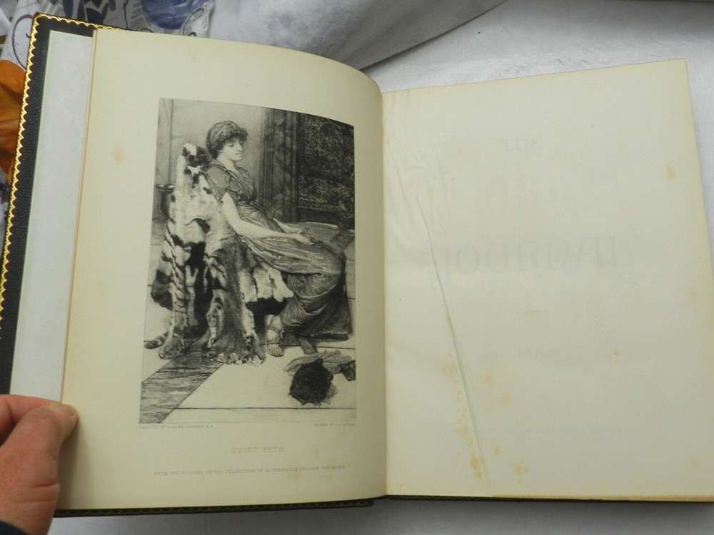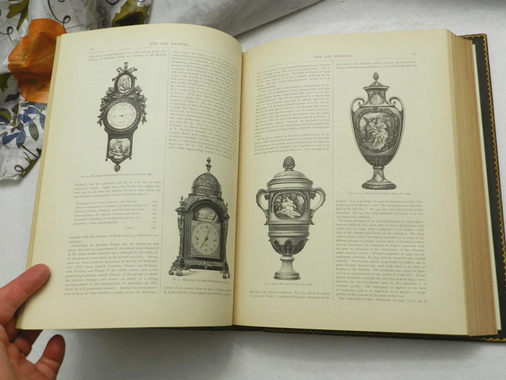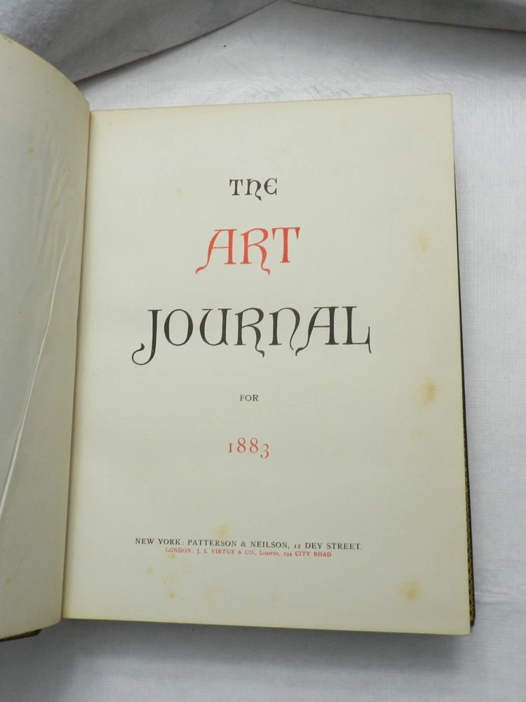From Wikipedia on the Art Journal, which began as a journal based in London only: "The Art Journal was the most important British 19th-century magazine on art. It was founded in 1839 by Hodgson & Graves, print publishers, 6 Pall Mall, with the title Art Union Monthly Journal (or The Art Union), the first issue of 750 copies appearing 15 February 1839. It was published in London but its readership was global in reach..." From an archive on The Art Journal: "D. Appleton and Co. began The Art Journal in 1875 as an American edition of the older London-based Art Journal. It included original content as well as content from the London journal. The journal was taken over by Patterson and Neilson around 1881, and ceased publication in 1887." I HAVE FOUR VOLUMES OF THE AMERICAN ART JOURNAL FROM 1881 TO 1884. All are described similarly: They are fully restored in their original FULL LEATHER GLORY!! The leather is dark brown towards black. Blind-stamped borders on front and rear boards, UNRUBBED GILT TITLES AND DECORATION on front board and spine. Five raised bands on the spine. Gilt lined board edges, and gilt decoration on the leather borders behind the front and rear boards. Light edge and corner wear on the boards. TREATED LEATHER results in a supple look and feel. Moire endpapers, gilt page edges on the three edges. Moire endpapers, THICK PAPER PLATES THROUGHOUT. I have provided the List of Illustraitons page for each of the volumes. Each volume has 350-400 pages. They measure 13" by 10" and weigh 8 lbs 14 oz. THIS LISTING IS FOR THE 1883 VOLUME. Cliff's Books B140