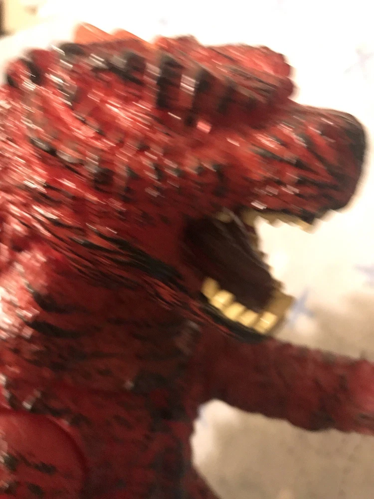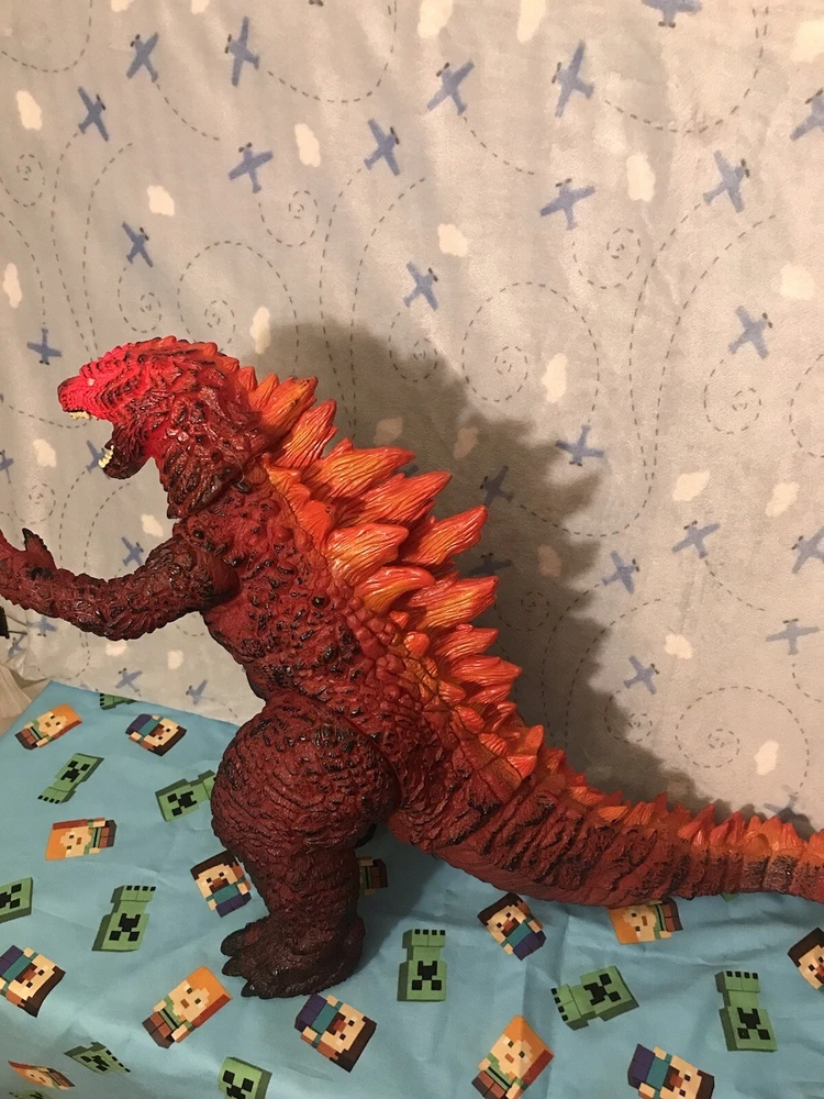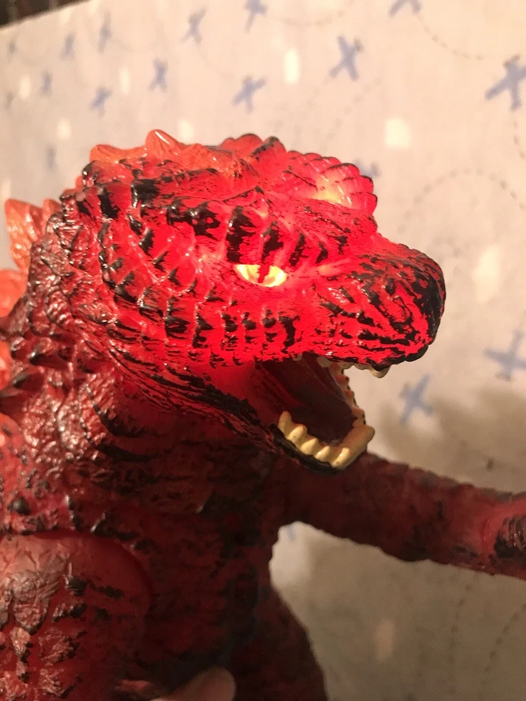 19 Inch Tall mexican bootleg vinyl Godzilla figure SUPER RARE!. MEGA SIZE RED FIRE GODZILLA!! Roughly 19 inches tall, 33 inches from head to tail! Vinyl figure makes sounds and eyes light up! Eyes are made out of glass, this figure is not available anywhere, this figure is made in Mexico only!! Great for any zilla collector! DONT LET THIS GET AWAY! US SELLER! Buy with confidence! Any questions please let me know! Thanks for looking!