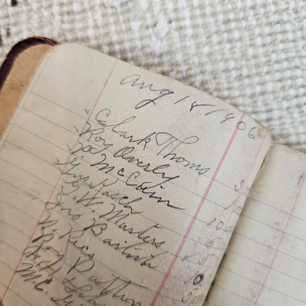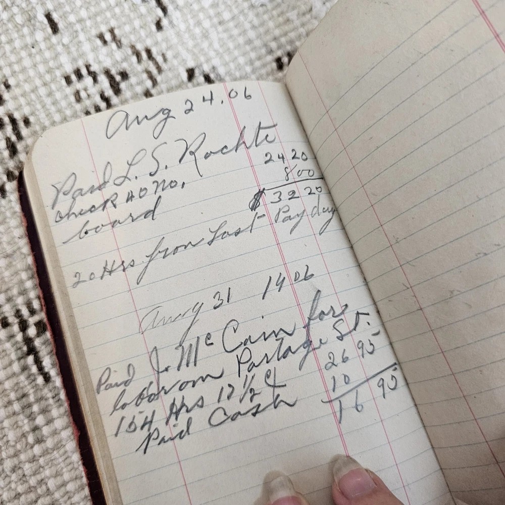1906 Red Log Book Ledger Hand Written Edwardian Notebook Daily Journal Money Log Lovely vintage log with hand written entries. Great display item. Condition, very worn, and well loved. Sold as is, where is. All sales are final, we do not accept returns. Please observe photos carefully as they are a part of the description. We do not guarantee wearablity of vintage clothing items. Feel free to ask questions. 5-7 day handling time, usually.