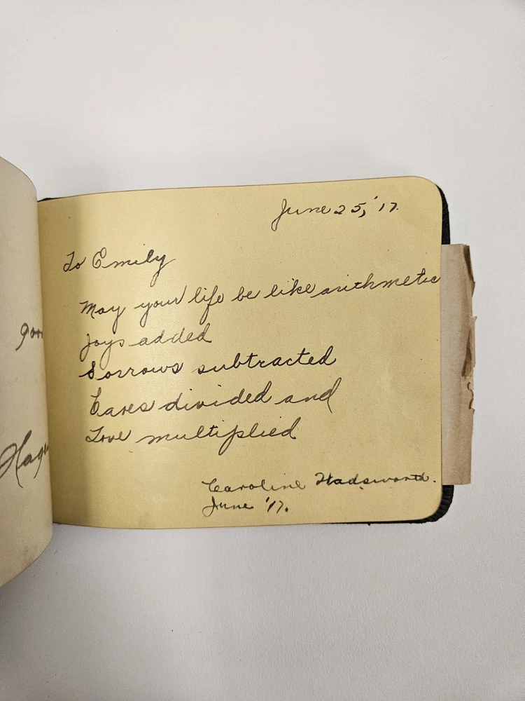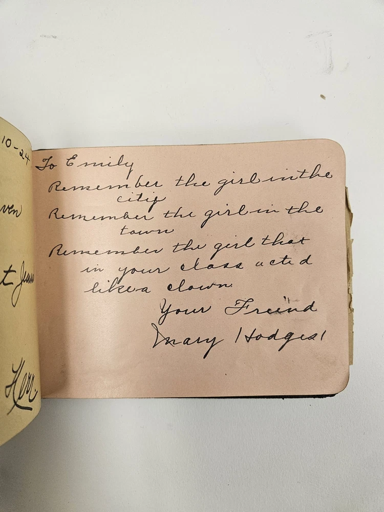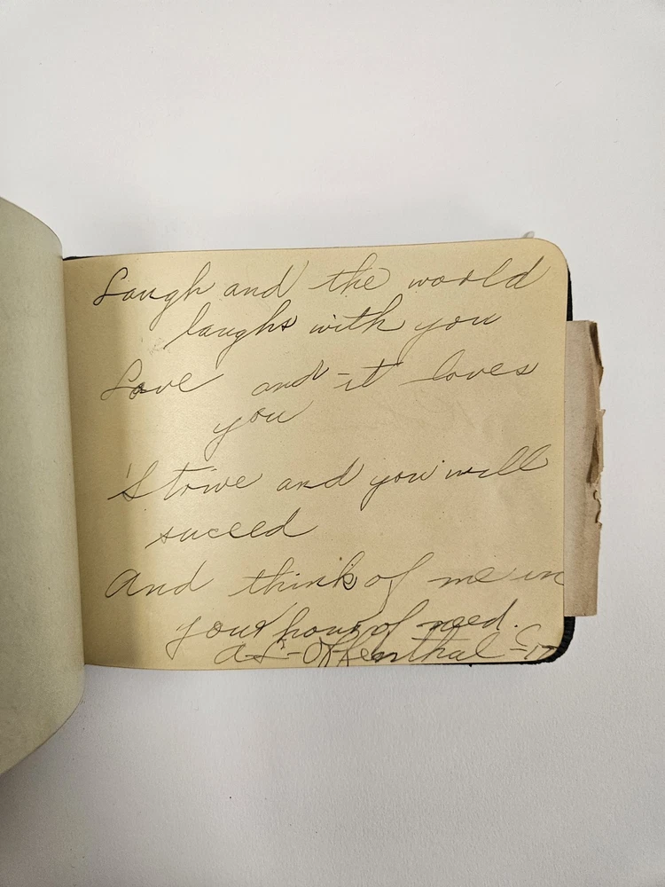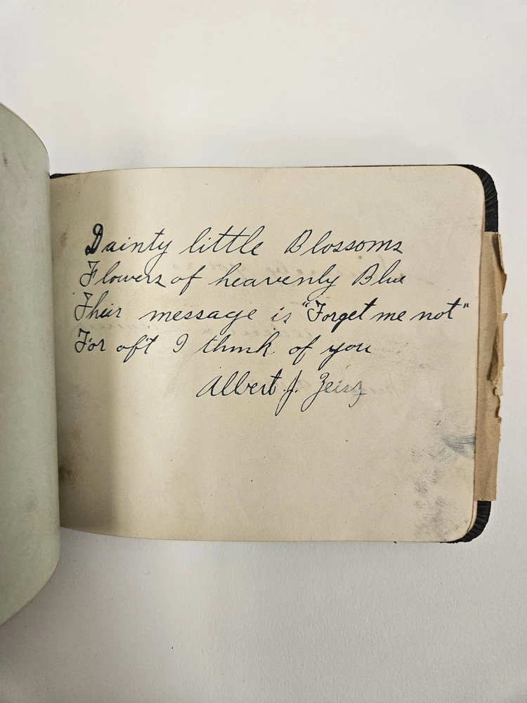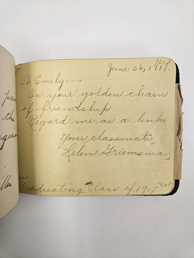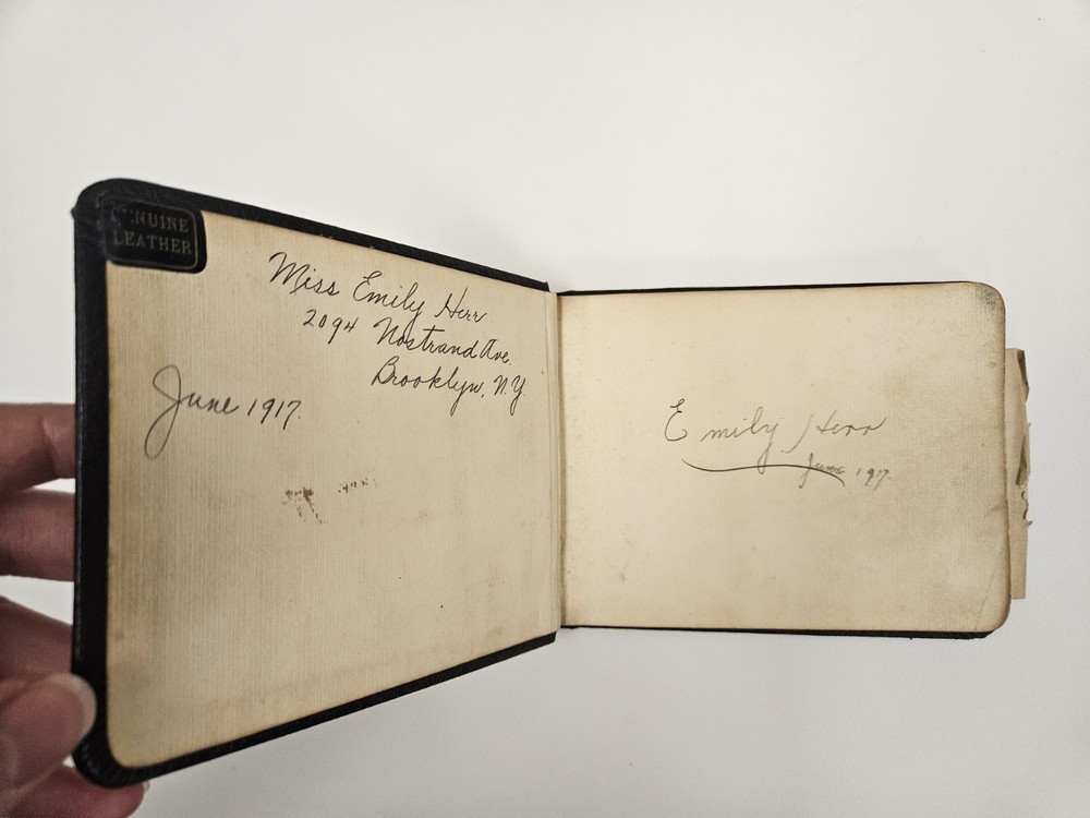 Here is a charming autograph album dated to June 1917. The owner was Miss Emily Herr. Emily Herr lived in Brooklyn N.Y. The album is extremely full of notes and signatures + some added ephemera tucked in. Please see photos for condition and reach out if you have any questions. Offers always welcome. Thanks for looking!