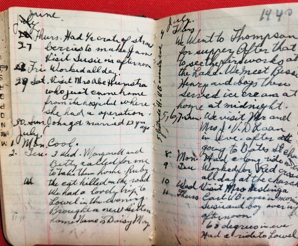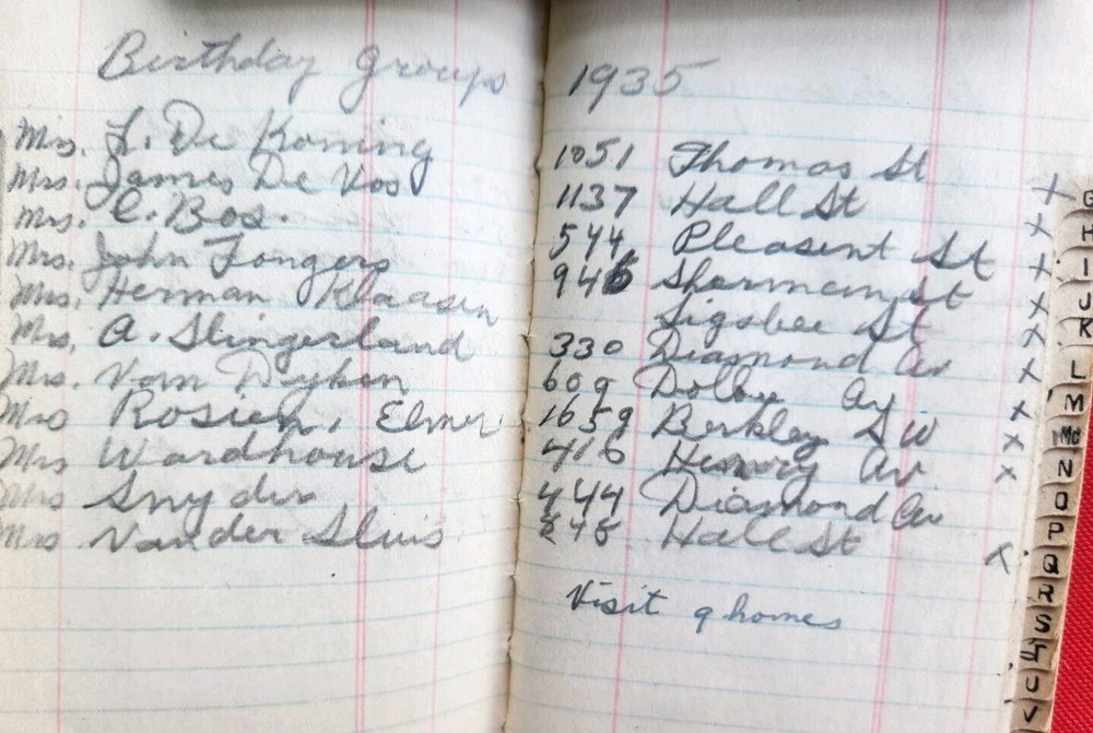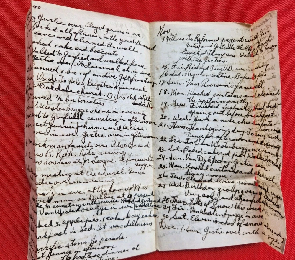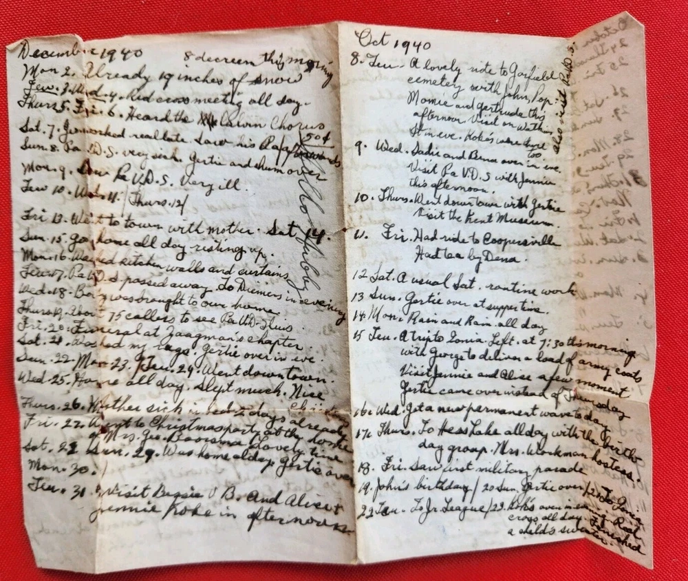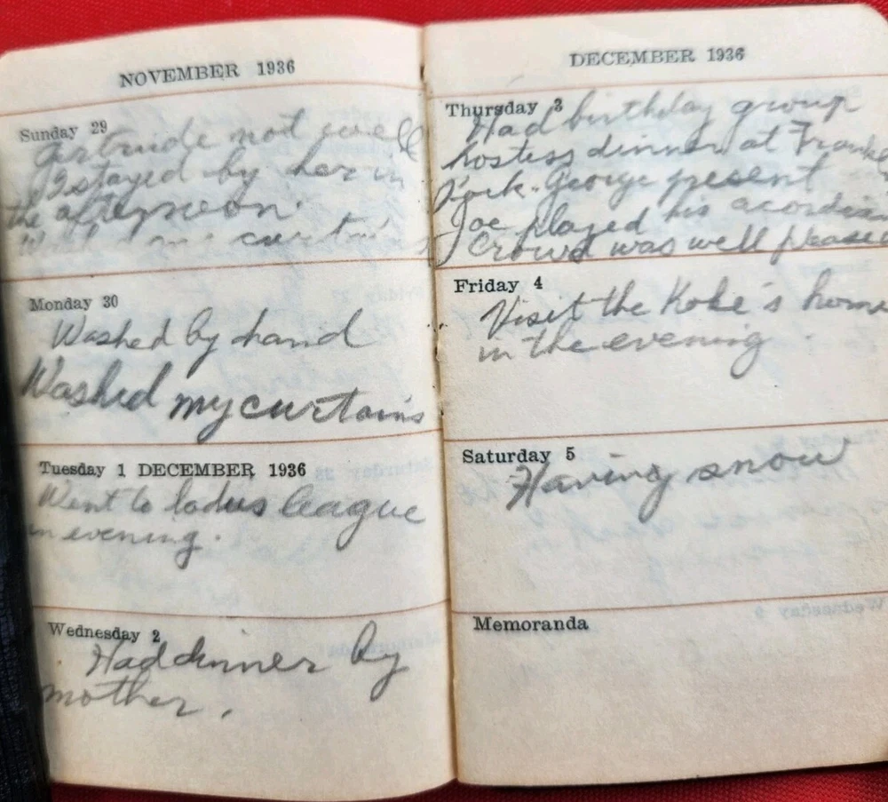 1930s 1940s Two Dairies Personal Handwritten Tiny 4" in length. 1. Memo: Black Leather "full" of tids bits of personal information. Approximately 1937 to 1940s. Dedicated to George Van Der Sleius. 2. Glens Falls Insurance New York. C.B. Magnetism Agency, Grand Rapids, MI. Belonged to Marie Sleius. 3. One piece of paper, with information written on both sides Fast Shipping