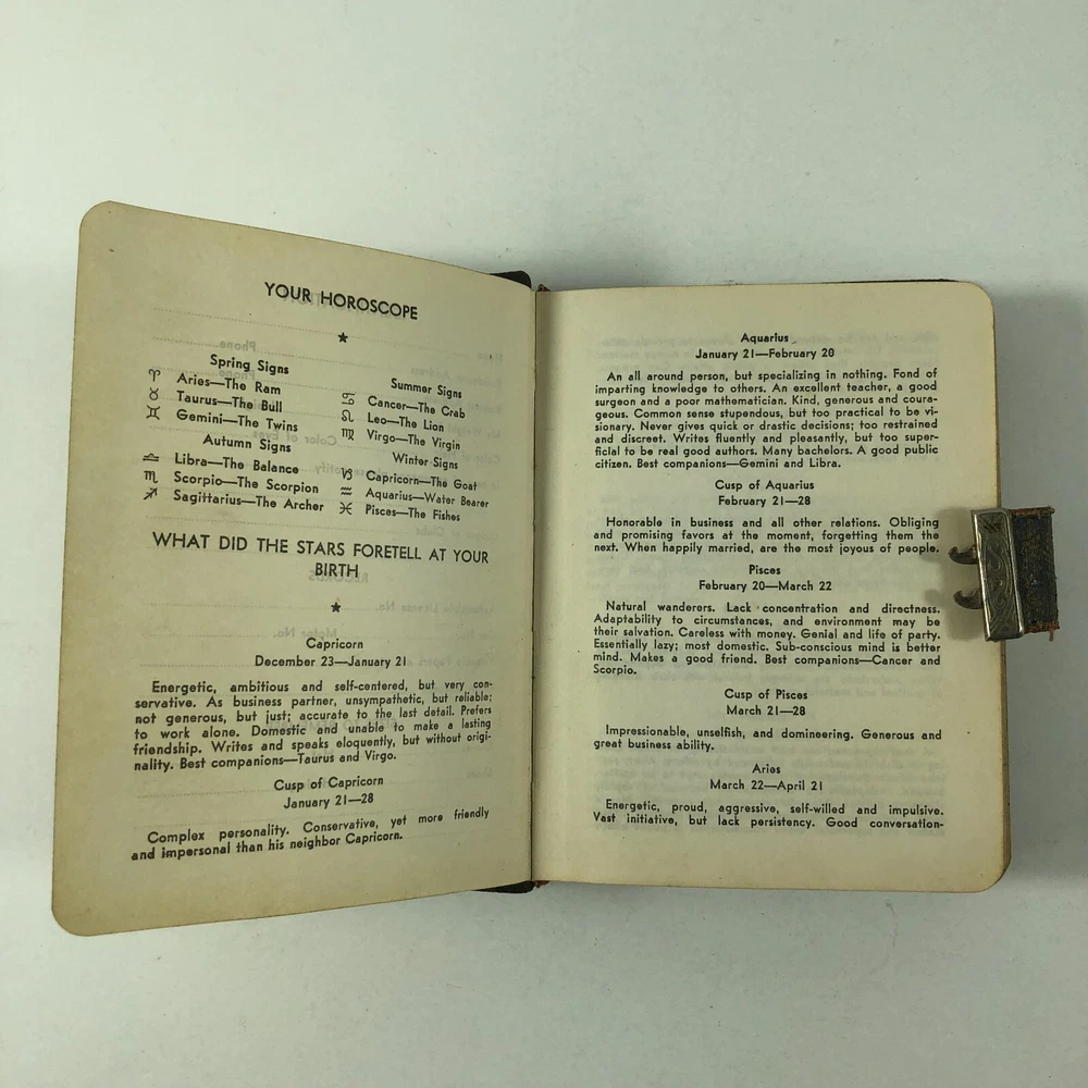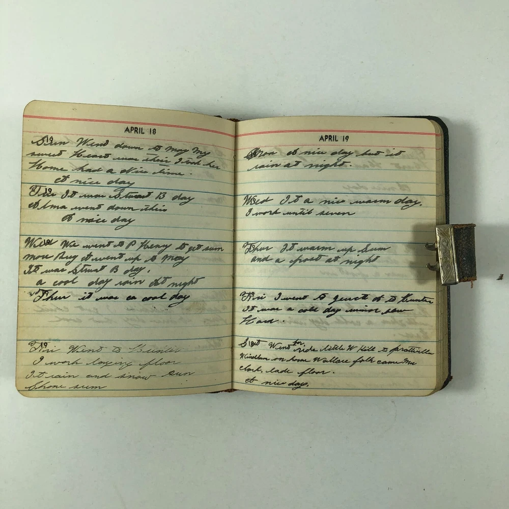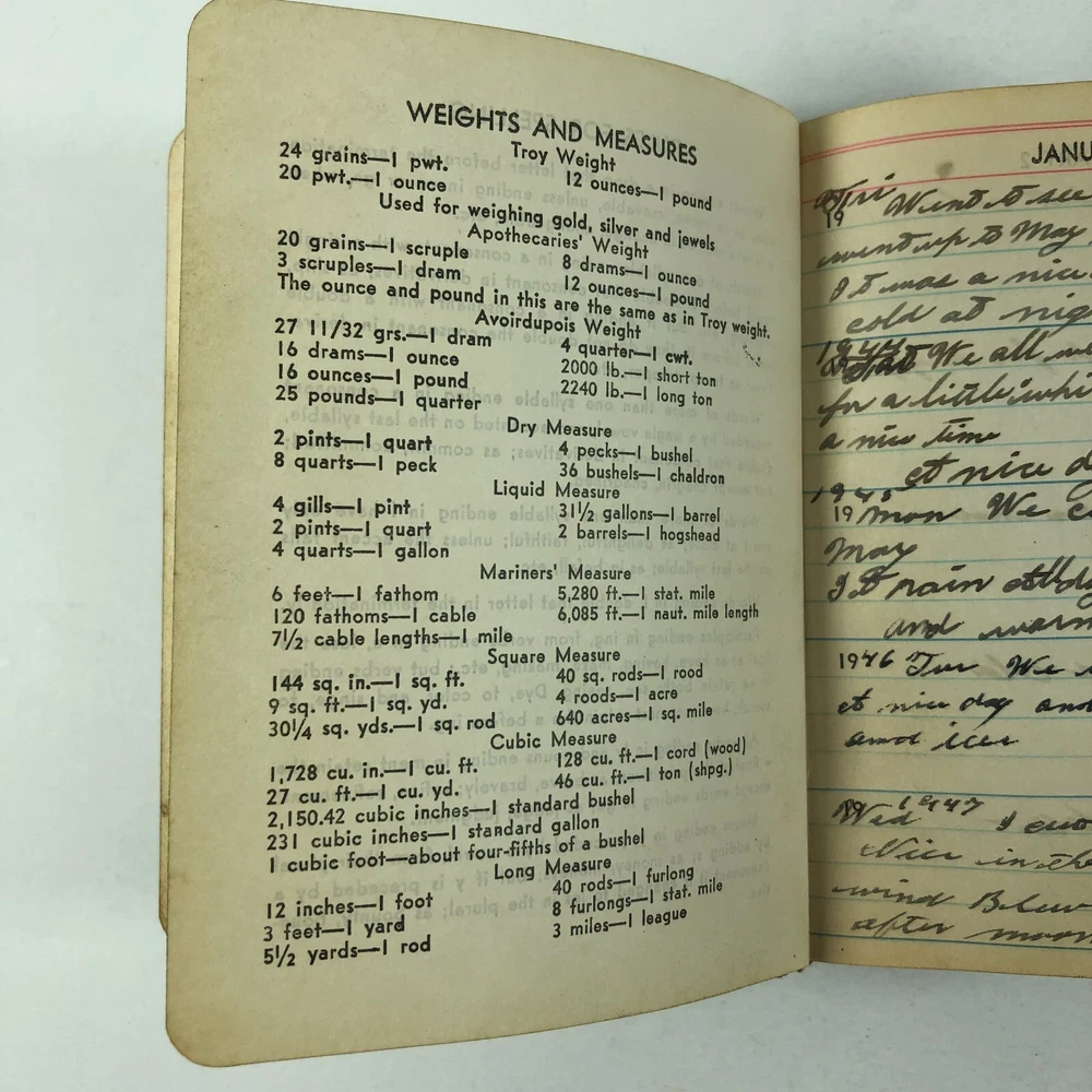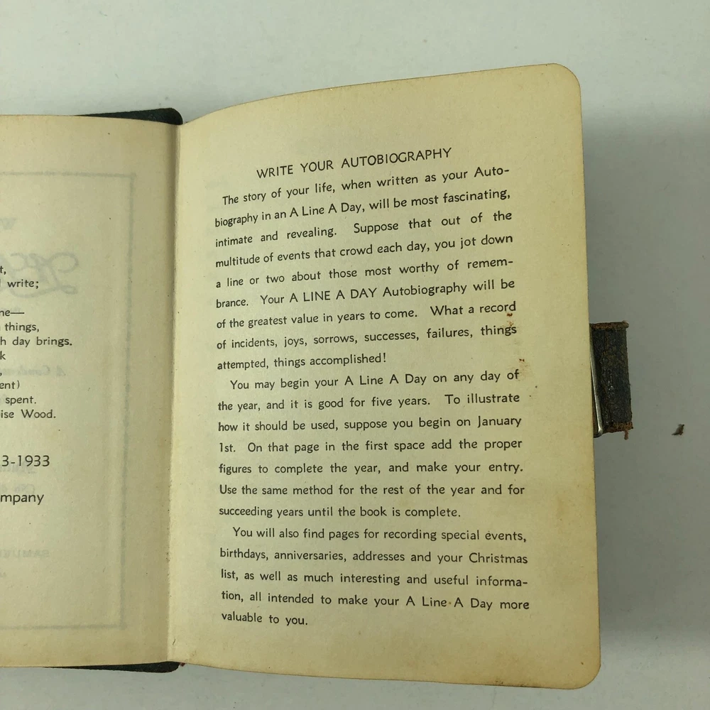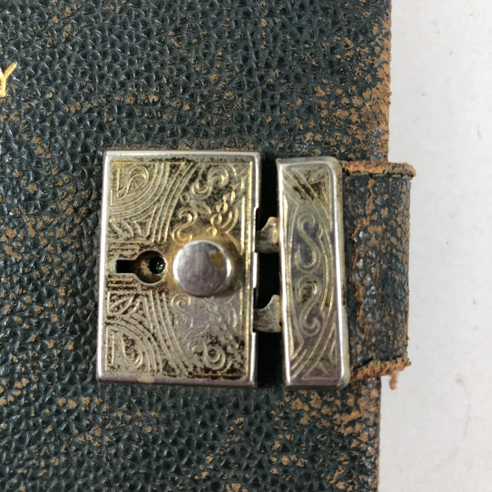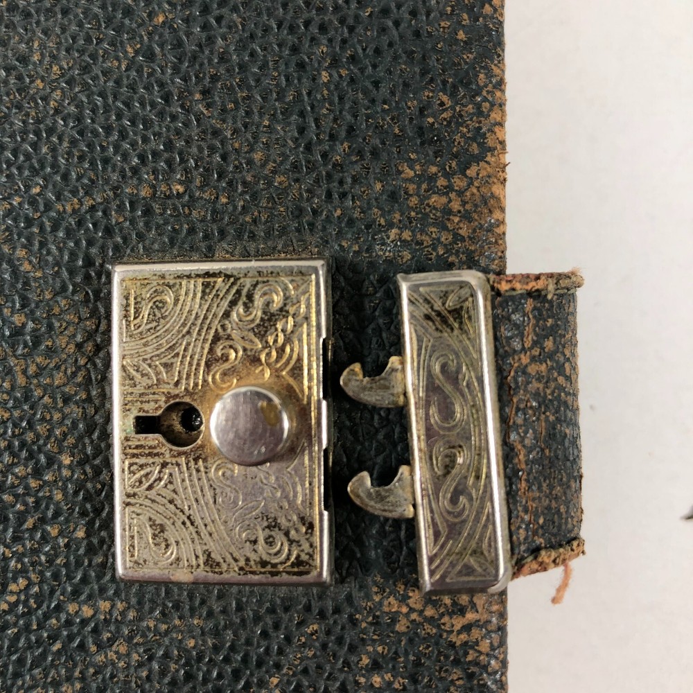 1940's WWII Era A Line A Day Five Year Diary Every Day Travels With Lady Friend . This diary appears to be in very good condition for it's age. It spans 1943-1947. Note there is a functioning lock, but no key. I was able to open simply with a small screwdriver. All pages are totally intact, binding is in very good condition. It appears that there is some type of daily entry almost every day of the five year span. It mainly discusses weather, daily life, travels with and without "My Lady Friend", mentioned frequently. This leather bound diary is definitely an enjoyable browse and read, makes a great piece of historical decor, too. Please use the zoom function over the photo to closely examine condition before purchasing. We are continually adding products to our inventory, so please come back and check out our other items! Don't forget to add our store to your favorites list! Shipping: We ship Monday through Friday, and Saturday whenever possible. I will make every effort to complete shipping with 24 hours except for Sunday's and holidays. Feedback: Positive feedback is greatly appreciated. If you have trouble with your purchase, PLEASE contact us before leaving a neutral or negative feedback. I will make every effort to correct any concern or problem you may have. We take great pride and responsibility for our sales, and in most cases can help with a problem one way or another: no matter if it is the fault of the shipper, a mistake we may have made, or just something overlooked or done accidentally by the buyer. Thanks again for looking at our listing! 012623