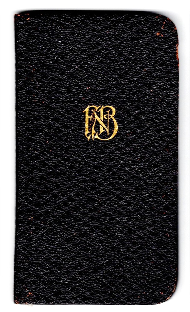 1950 First National Bank Memo Book; notes on investment purchases — measures: 2 1/4" x 4"...