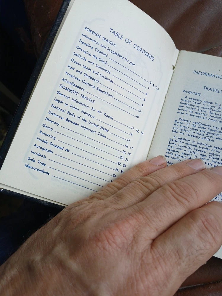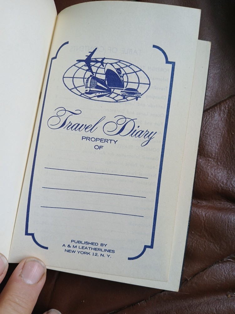 This is a unique travel diary from the 1950s, detailing a trip abroad to various destinations. The diary is beautifully bound in leather and is a wonderful piece of memorabilia for anyone who loves to travel. It provides a glimpse into the past and allows readers to experience what travel was like in the mid-20th century. The diary is perfect for collectors of antique and rare books, as well as those who enjoy reading about travel and adventure. It is filled with fascinating details about the places visited and the experiences of the author, making it an engaging and informative read. With its beautiful leather binding, this diary is sure to be a treasured item for many years to come.