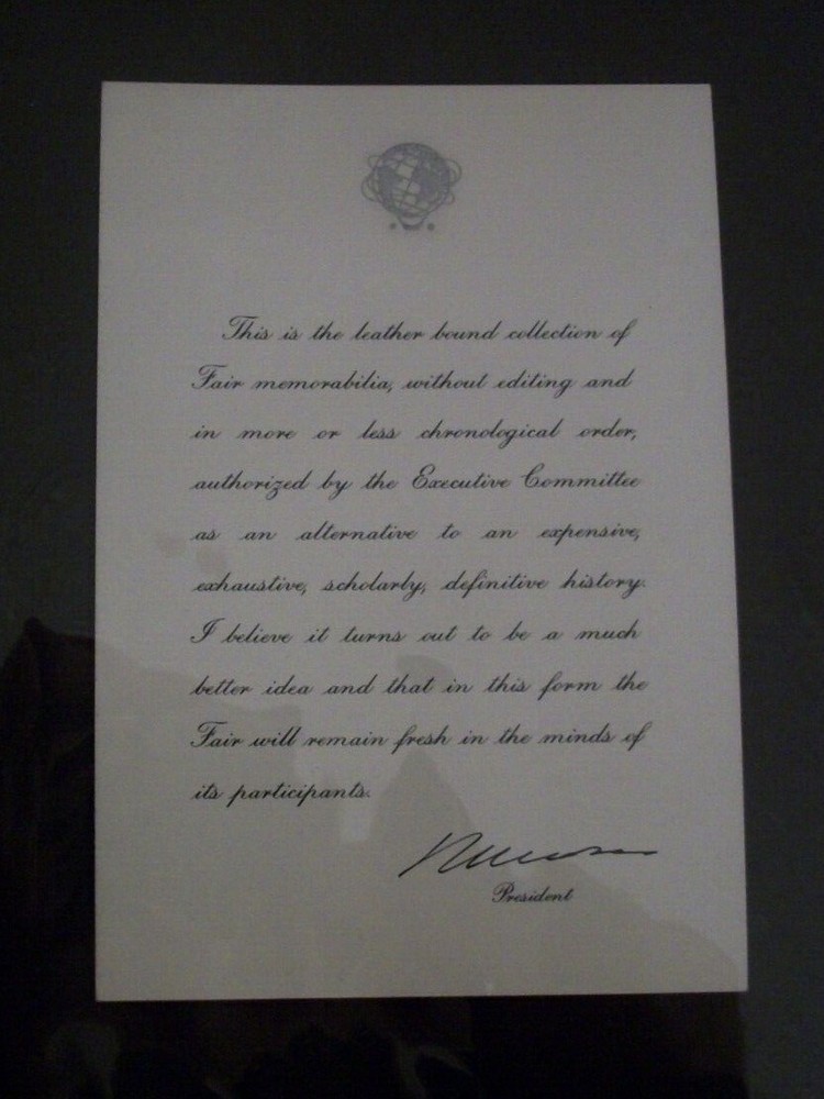 Extremely rare, never seen another one of these for sale anywhere. They were made specifically for the producers of the 1964 World Fair in NYC. Lots of memorabilia, like maps, glossy photographs, brochures, etc. Sure, you can get most of this individually here and there on the Internet but you can't get a compilation like this, assembled by the President of the World's Fair and a select committee, set in a beautiful blue leather, 3-ring binder. I am not sure of its value and probably no one is, so I am open to offers. In the end, what it sells for, is, in my opinion, its true worth. I appreciate you looking and feel free to ask questions. I won't answer questions regarding "Will you take X amount for it" because that is why I have it set to "Make an so don't hesitate to make an offer because you never know. Because to me stuff is just stuff. Thanks for looking, guys, and happy hunting.