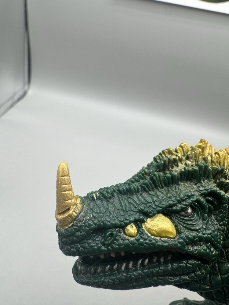 This 1994 Bandai 14” Powered Zumbolar figure is a must-have for any Godzilla fan. Made in Japan, this Ultra Monster Series Ultraman figure is 4.5 inches tall, 13.9 inches in length, and 3.3 inches wide. It features intricate details and is perfect for collectors of all ages, from 3 to 100. The figure comes from the popular Godzilla theme and is part of the Robots, Monsters & Space Toys category. It is a great addition to any collection and is sure to impress fans of the Ultraman series. Don't miss your chance to own this rare and highly sought-after figure. - The horn is not original has been replaced. See photos for condition - Any questions feel free to ask