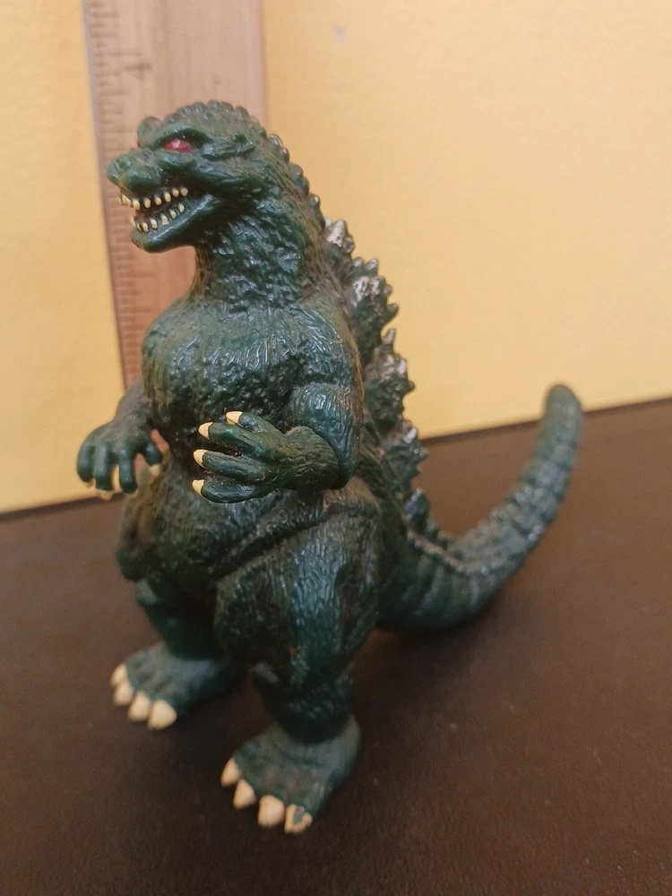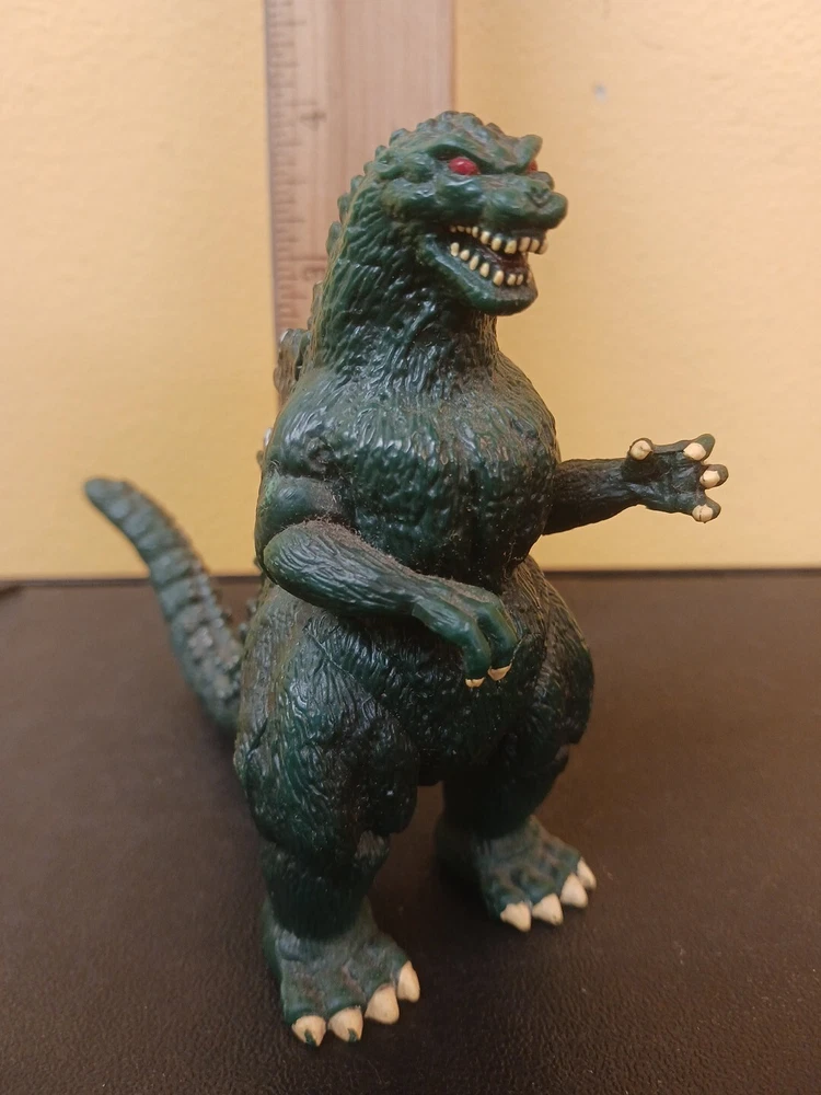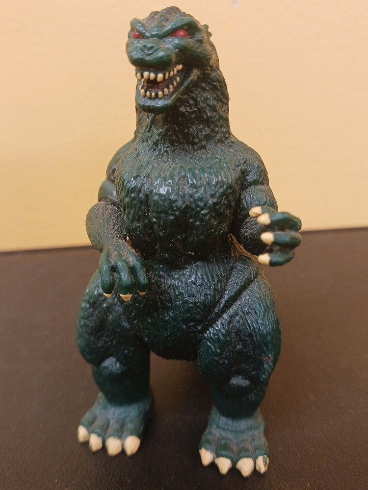 Vintage 1994 Godzilla PVC figurine is approximately 4" inches tall, in good used condition, with minor visible wear to painted and plastic surfaces (photos). Trendmasters Toho collectible, made in China. Free shipping.