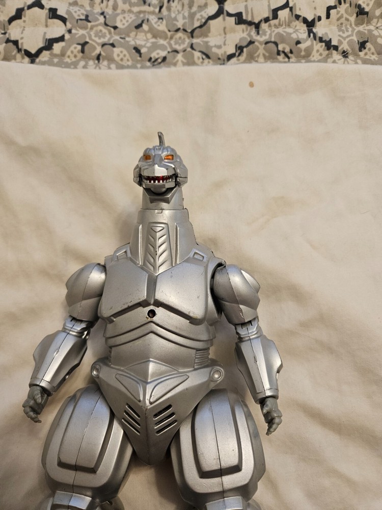 This Mecha Godzilla figure is awesome! The lights and sounds still work perfectly, adding so much fun to playtime. Despite a few minor blemishes, it's in great shape for its age. The lack of a tail doesn’t take away from how cool it looks. A must-have for any Godzilla fan!