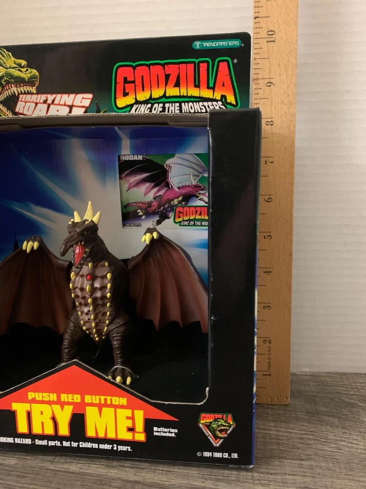 Figure looks great! Still firmly attached to box. Try me button does not work, Probably needs new battery. Been sealed to box nearly 30 years. comes with Bonus card in box. Please examine photos of actual item.