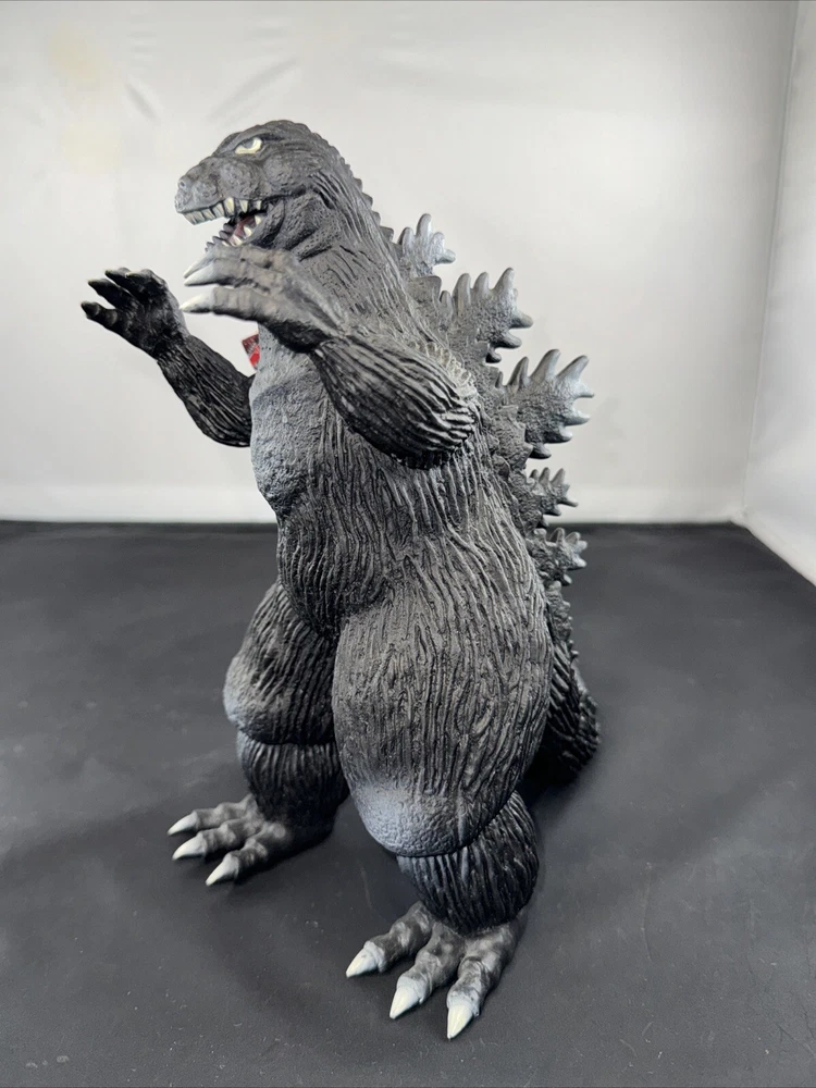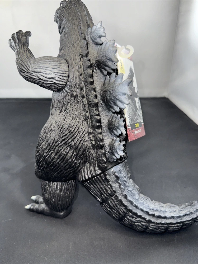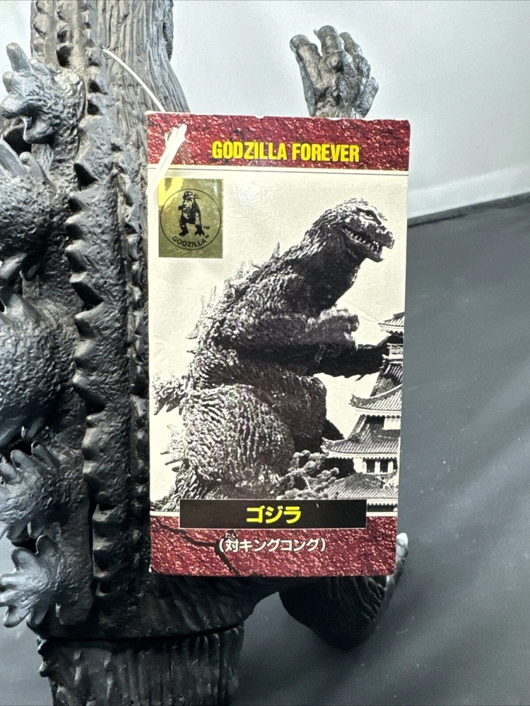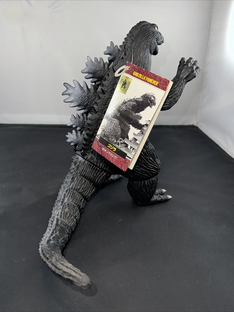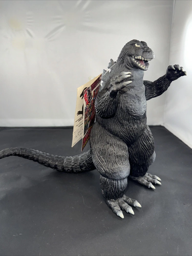 1996 BANDAI 9” GODZILLA 1962 WITH TAG Vinyl Figure GODZILLA FOREVER Version. Beautiful tag!!! Very similar to the memorial box version but the nail paint is white and the head chest and knees have grey highlight paint.