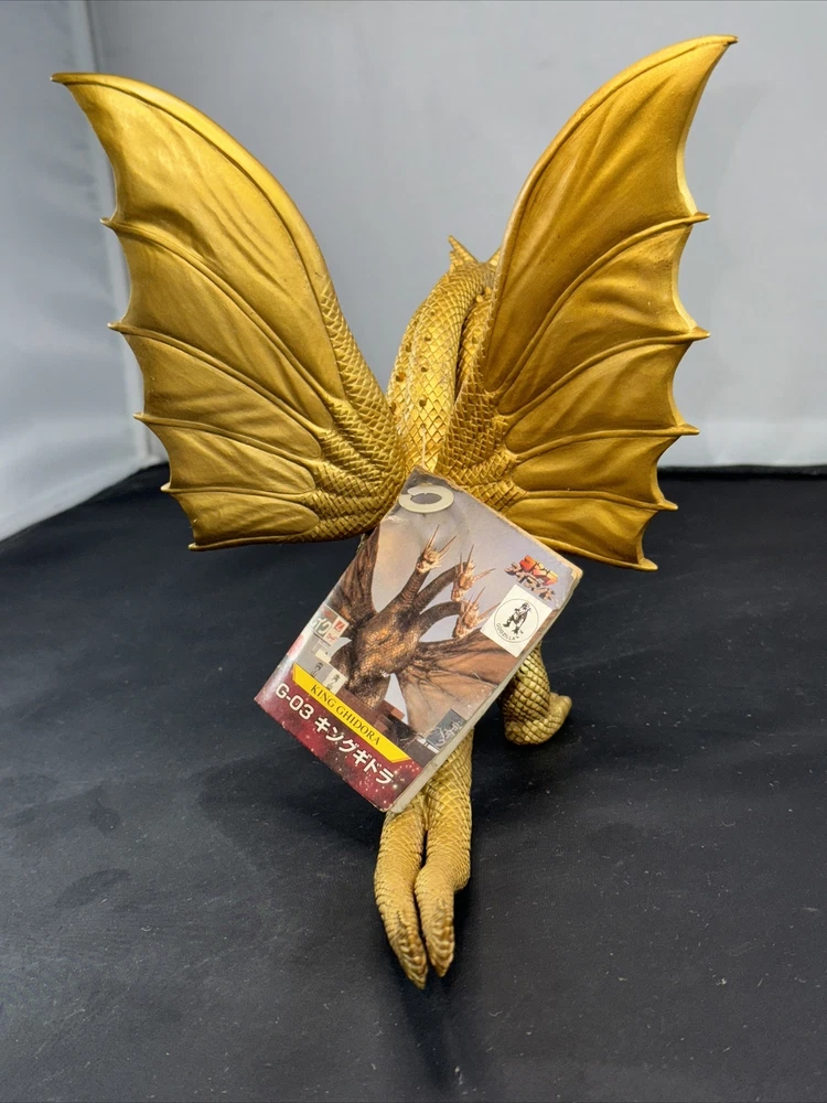 1998 BANDAI 8" Tall KING GHIDORAH G-03 Vinyl Figure Godzilla Island WITH TAG Tag is pretty worn.
