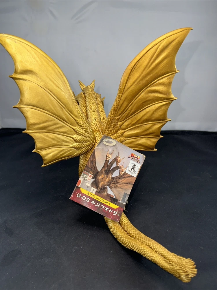 1998 BANDAI 8" Tall KING GHIDORAH G-03 Vinyl Figure Godzilla Island WITH TAG Tag is pretty worn....