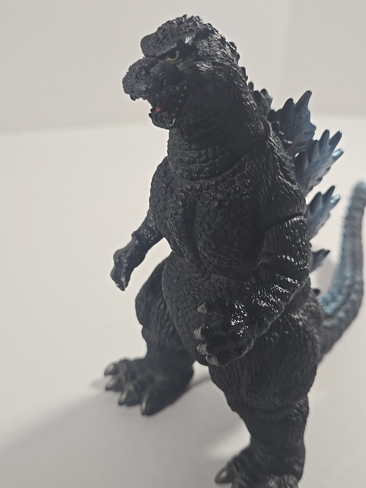 This 6" Godzilla figure from 1998 is a must-have for any fan of the legendary monster. Produced by Bandai and made from soft vinyl, this collectible is perfect for playing or displaying. The figure features incredible details, including the iconic exposed spine and wrinkles, and stands ready to battle any monster that comes its way. Whether you're a collector or just a fan of the King of Monsters, this Godzilla figure is sure to impress.