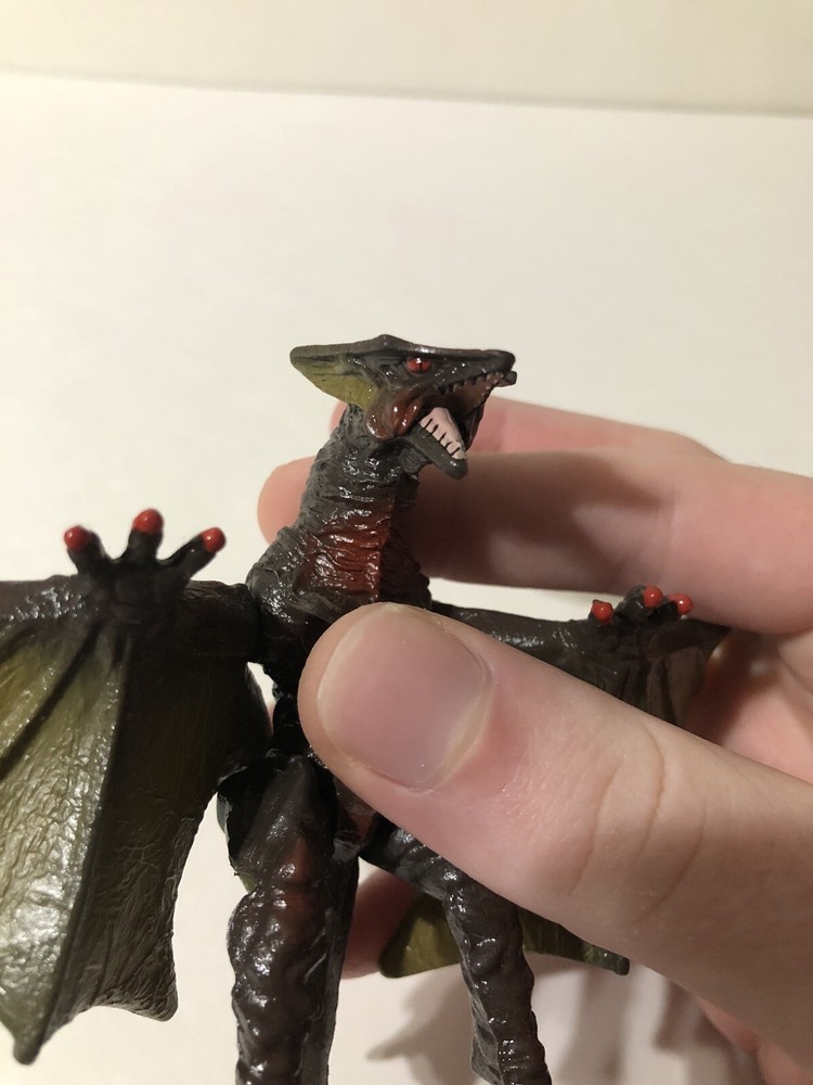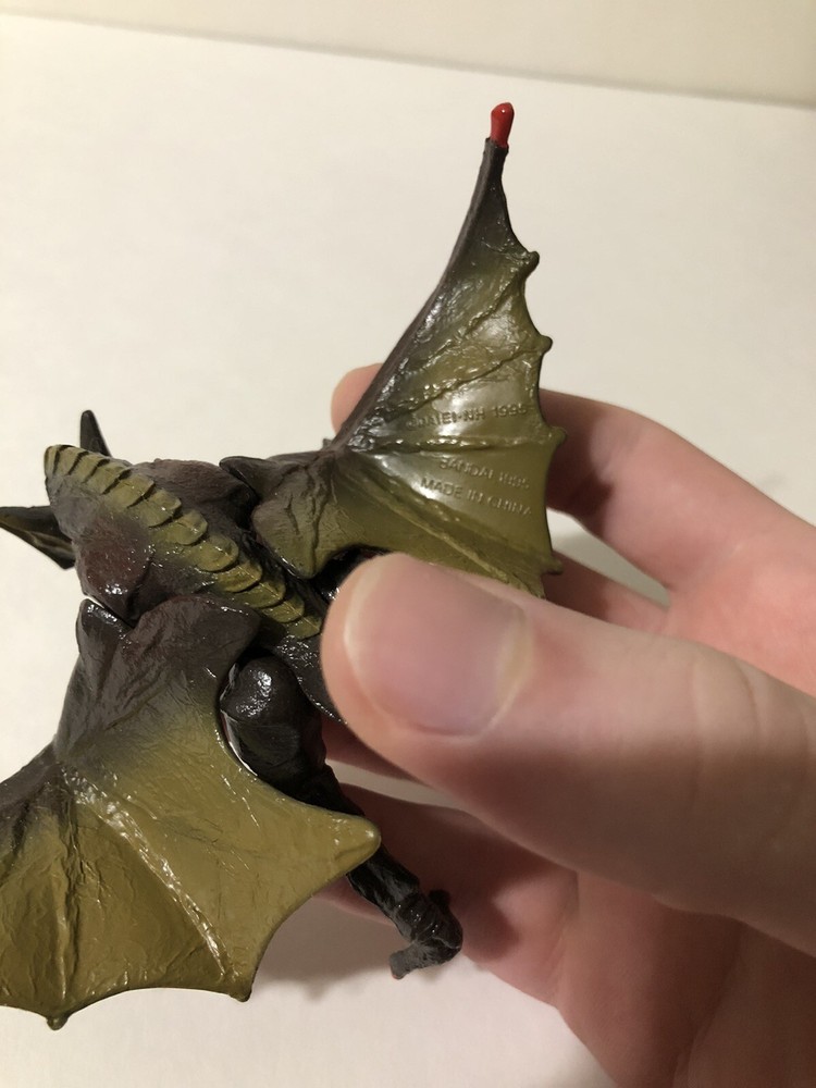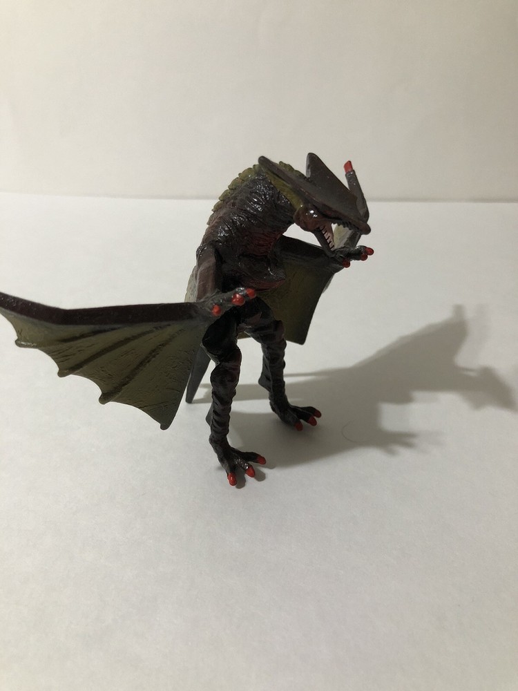 A Bandai hyper figure of Gyaos from “Gamera: Guardian of the Universe.” Figure stands four inches tall and can be taken apart like a gashapon. Used, but primarily displayed and in good shape. Comes from a smoke free home.