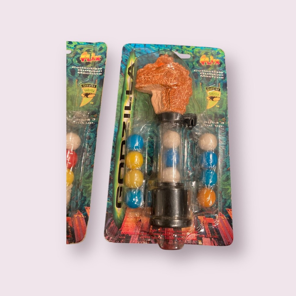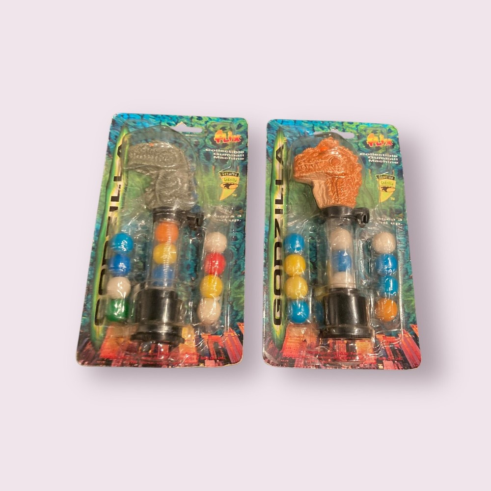 The product is a set of two vintage Godzilla Flix gumball machines from 1998. The gumball machines are green & brown in color and are new & sealed. They are themed after Godzilla and are recommended for ages 3 and up. The toys are made in China and cater to a wide age range from 3 years old to adults aged 17 and up. To Ensure Proper Fit, Please Check Listing's Measurements And Compare To A Similar Item That You Currently Own That Fits Well. Please note that actual colors may vary slightly from the pictures, sometimes the lighting/flash just can't capture the right color. I will do my best to describe the variants, but there too not everyones color perceptions are the same. • • Our Mission "We strive for excellence and 100% customer satisfaction. A smooth transaction, quick delivery, and happy customer is our goal. We will do whatever it takes to achieve this." • Shipping & Handling Handling time is 1 business day. Packages are shipped on a daily basis. We are happy to combine shipping on multiple item purchases! Message us if you would like to purchase multiple items for a quote on shipping. • International Shipping We ship worldwide. We are not responsible for customs fees or taxes. Please note that international packages can sometimes be held up in customs which may cause a delay in receiving your item. • Payments Paypal is the preferred form of payment. It is the safest form for both the seller and the buyer. If you need more time to make a payment please just let us know, we are happy to work with you! • Contact Us Please contact us with any questions! Be sure to add our store to your favorites list! • Feedback We greatly appreciate positive feedback and 5-Star ratings in all categories! Please let us know if there is anything that was unsatisfactory before leaving negative feedback. We strive for 100% positive feedbacks and 5-Star ratings and will do whatever it takes to maintain this. We appreciate the opportunity to satisfy our customers and fix or resolve any problems that may occur before receiving feedback. • Returns- Satisfaction Guaranteed!! If you are unsatisfied with any part of you purchase please let us know. We will do what it takes to make you a happy customer! Returns are accepted within 14 days of receiving your item. Only unused, unopened items with be accepted. Buyer is responsible for return shipping. Item must be returned in the same condition as it was received. A 10% Restocking Fee Will Be Apply. • Be sure to add our store to your favorites list! • Check out my other it