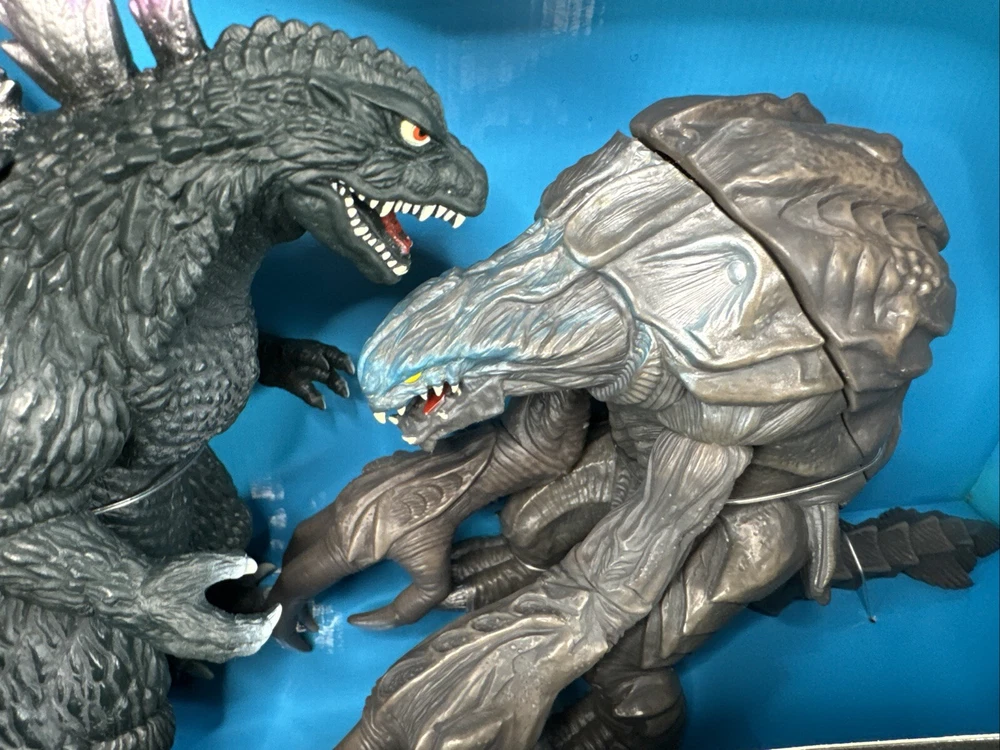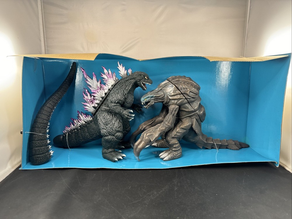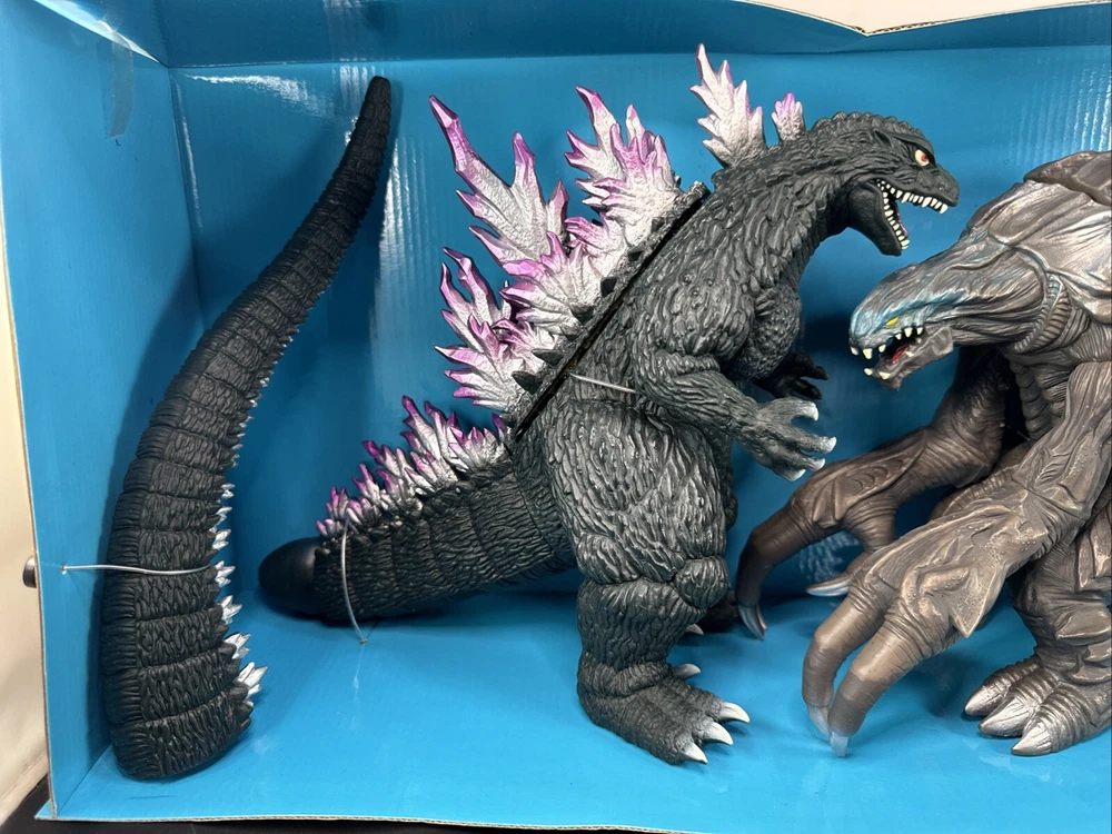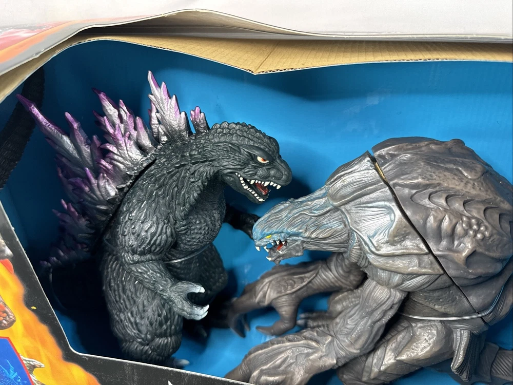 1999 BANDAI 9” GODZILLA VS 8” ORGA SOUND BATTLER FIGURE SET NEW IN BOX! Never been removed from the card. Box has wear and no cellophane piece on the front.