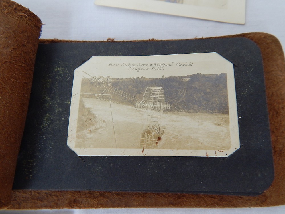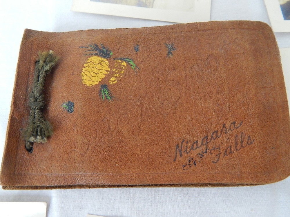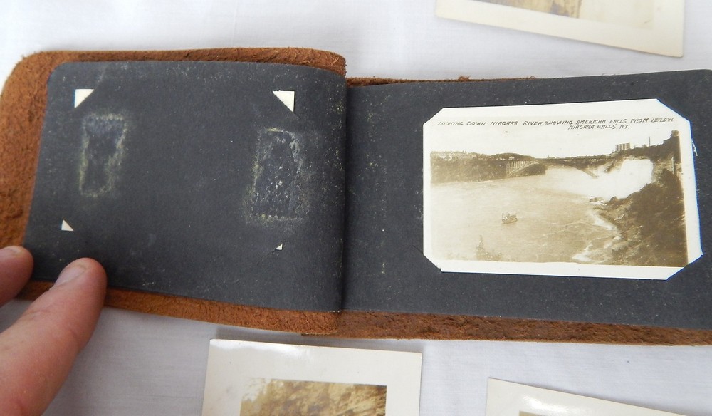 Offering this Antique Snap Shots Niagara Falls Souvenir Miniature Photograph Album. Approx 5" by 3" leather or Cowhide bound with string...includes 10 photographs 2 1/2" by 1 3/4" in size...these each have a caption added to the photograph...there are also 9 'personal' photographs approx 3 1/4' by 2" in size...these are detached from pages...some photographs in better condition than others...see pics. Nice Old Niagara Falls Souvenir Piece For Your Collection! Please Note Most of our listings are acquired at estate sales or auctions. They may be used and/or vintage. We try to provide a description of any notable flaws for each item we list. Please expect some age wear in all vintage items or used items. Please contact us if you have any questions before buying. Payment & Shipping Info Paypal only, USPS first class mail shipping use the shipping calculator to determine s/h cost to your zip code, international buyers s/h cost to be determined at end of auction, payment due within 2 days of purchase or end of auction. Returns accepted within 30 days of item reciept, please e-mail before returning, item ships 1 days after recieving payment. Combined shipping on multiple auctions and feel free to e-mail any questions.