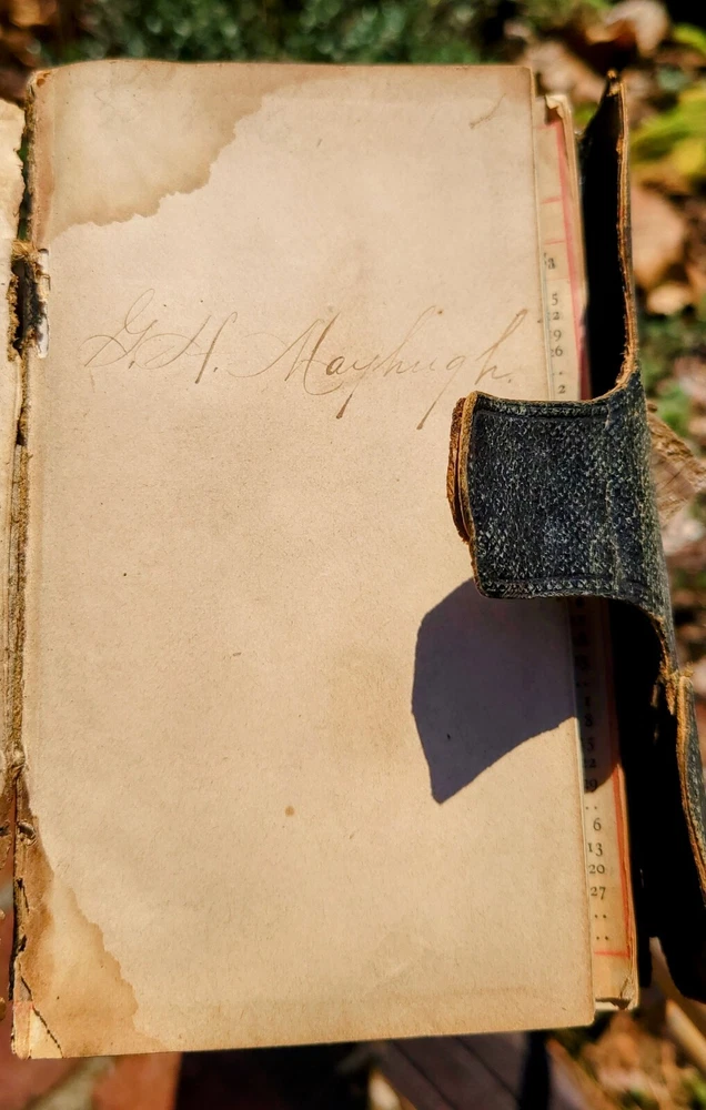 Antique Standard Diaries 1879 Athens County Ohio There are two diaries both from 1879: A) bound into the leather cover has the name GH Mayhugh written on it - he appears to have been a school teacher and member of the Bates Church located on what today is called Pleasant Hill Road B) unbound diary I believe was written by the mother or some other female relative of GH Mayhugh separated from original binding and stored with the diary of GH 6 inches tall Entries are in pencil and various inks See photos for condition A fascinating glimpse into daily life in Athens almost 150 years ago