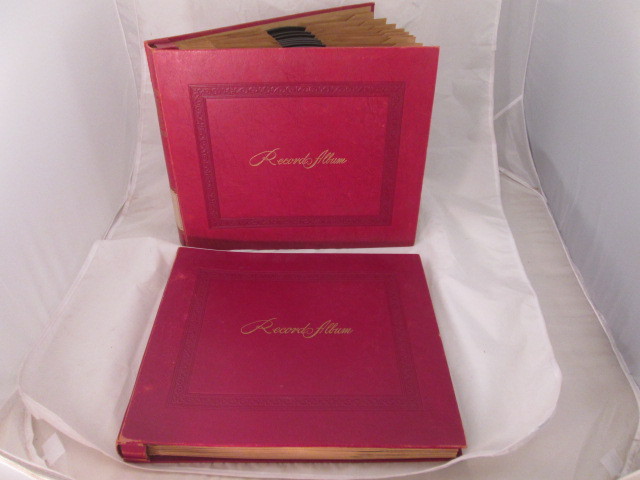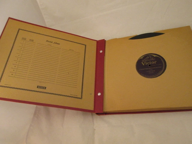 Decca Records Leatherbound red album holders, 2 in all~ 1 has 8 albums and can hold up to 10 ~ The index inside the front cover has no markings, and there is shelf wear to the outer edges of the albums ~ The 18 records included are played, but appear in overall good to better condition with NO deep scratches or faded or worn labels ~ Albums are as follows: Victor "Swing Lo Sweet Chariot" & "Prayer of Thanksgiving" by Associated Glee Clubs of America ~ 1908 Victor "It Came Upon a Midnight Clear" & "While the Shepherds Watched" Victor Oratorio Chorus ~ 1908 RCA Victor "Sometimes I'm Happy" & "Great Day" Russ Case & His Orchestra ~ RCA Victor "Serenade in C Op. 48 Sides 4 & 5 Boston Symphony Orchestra ~ Victrola "Carry Me Back to Old Virginny" Alma Gluck, 1 side only ~ Victrola "How Many Hired Servants" & Samson- Total Eclipse No Sun! No Moon! Evan Williams ~ 1908 The other album complete with 10 albums are as follows: 6 Victor labels Harry Lauder Albums ~ Victrola "Aloha Oe" Alma Gluck ~ Victrola "Forgotten", "Goodbye" & "The Song That Reached My Heart" all Evan Williams ~ PLEASE VIEW ALL PHOTOS ~ TERMS AND CONDITIONS: Payments accepted: We accept Paypal online. Shipping: Shipping is within the US 50 States. We do not ship internationally unless using the Ebay Global Shipping program. All packages shipped within 3 to 5 business days. Breakage. If an item is received broken, we will request you send digital photos of the damage and a phone number to discuss how we will handle the claim or the refund. Warranty: Items are guaranteed as described. Assume normal, minor use marks and wear unless we describe the items as "MINT" or "New". If you are unhappy with the item/s, we must be contacted within three days of receipt of the package; item/s may be returned only after our approval. ABOUT US: We are family owned and operated. We are a Liquidation company and often sell items for clients for a commission. We are a brick and mortar warehouse in Massachusetts . We run our eBay store Tuesday thru Saturday 8a-5p therefore any messages or shipping is not typically done on Sunday/Monday. Questions after 4pm Saturday will be answered first thing Tuesday morning. R6rm1706