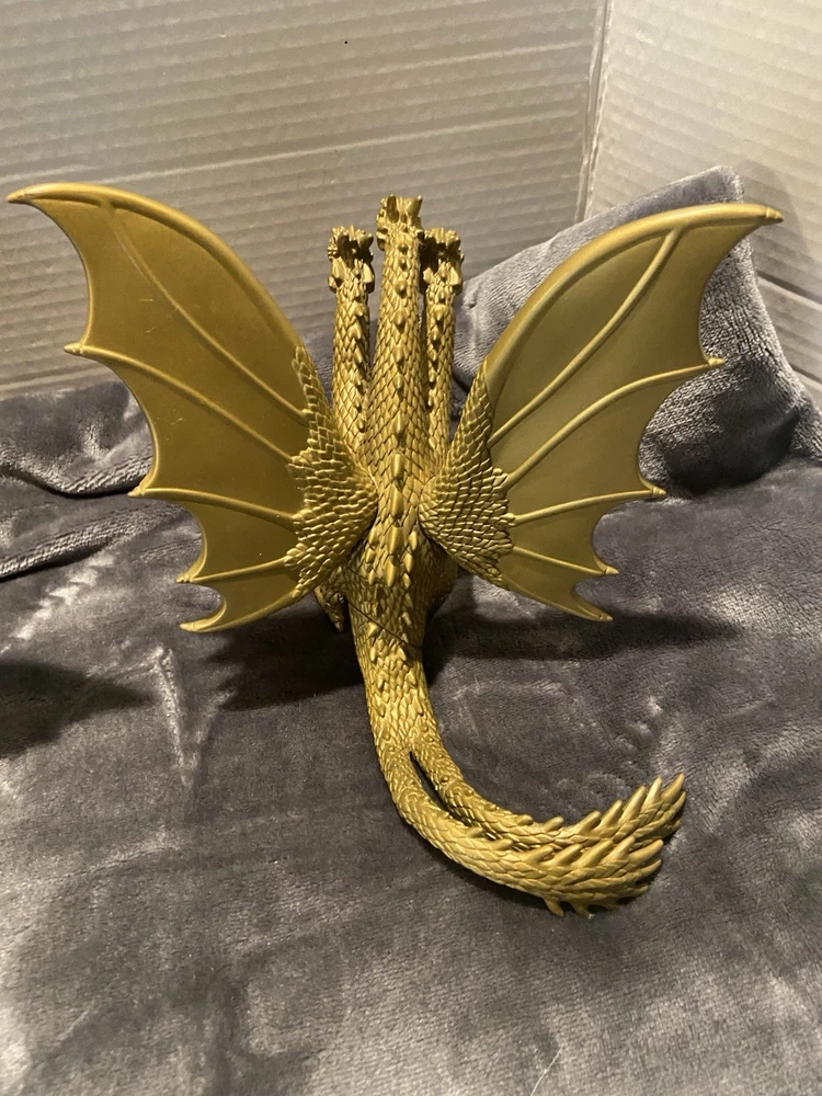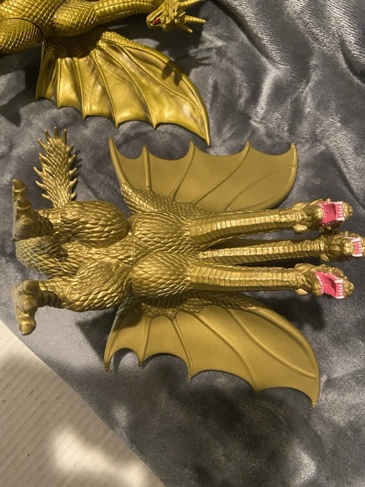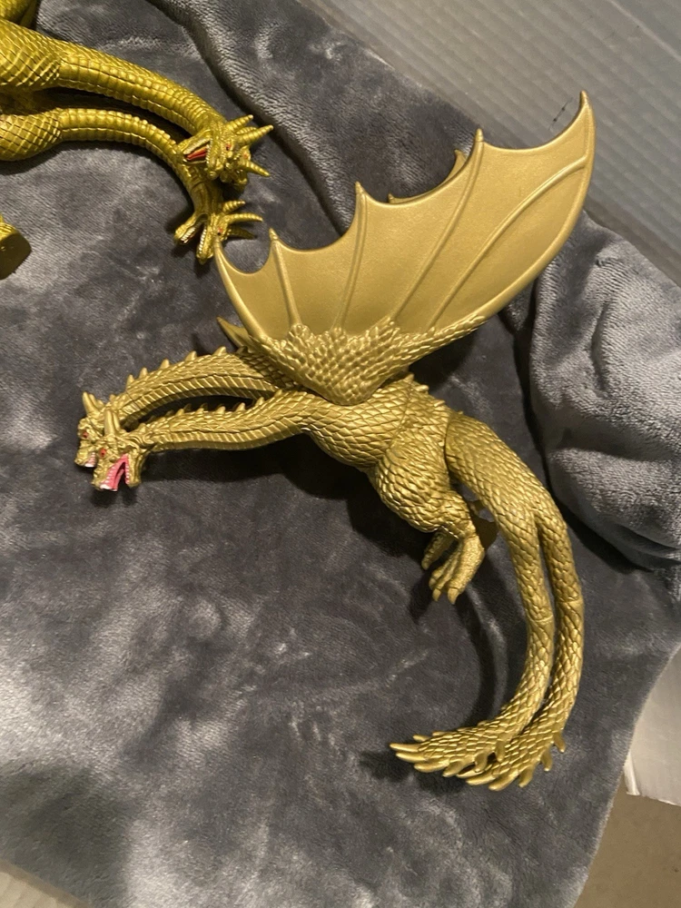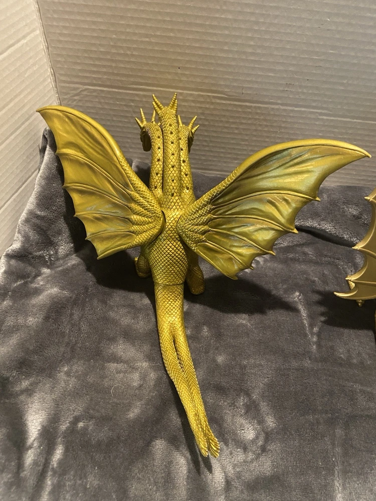 Up for sale 2 Godzilla Ghidorah figures. From smoke free collection in excellent condition. 7” tall 12” long 1998 Bandai jointed at wings & hips, softer material. 6” tall 9” long 2014 TOHO Co B.14 jointed at wings and tail, more harder martial both plastic. Nothing broken no damage. All shown in photos. You will receive exact items in photos. Please look at photo see condition. Will be shipped with padding in a box with tracking number. Thank you for looking.