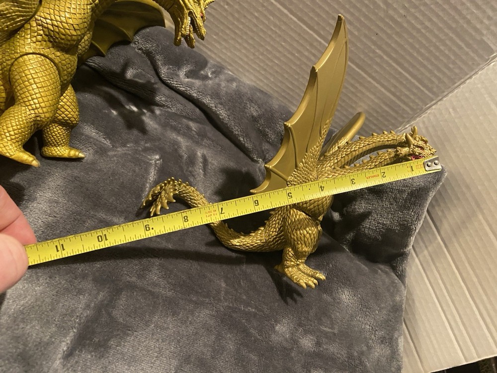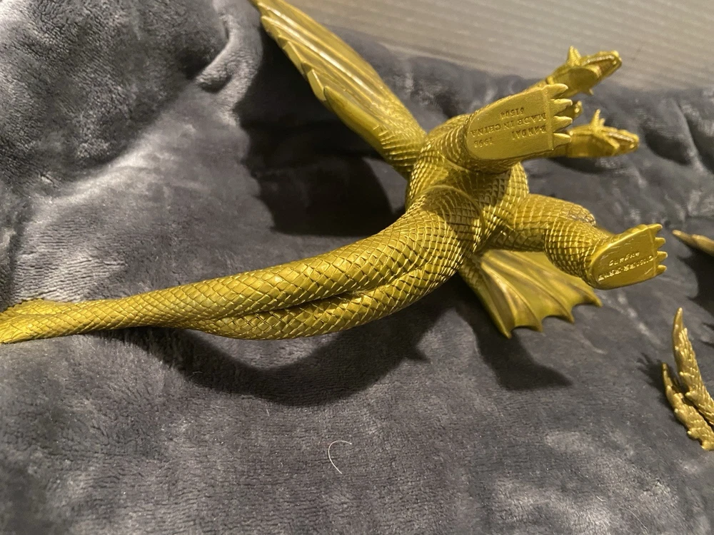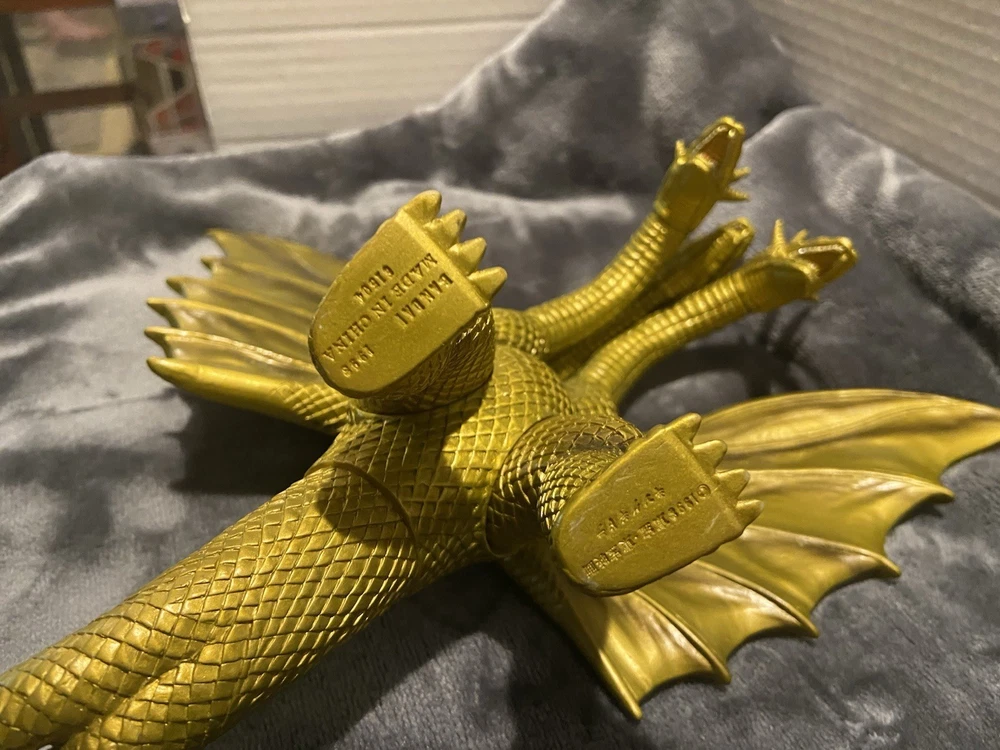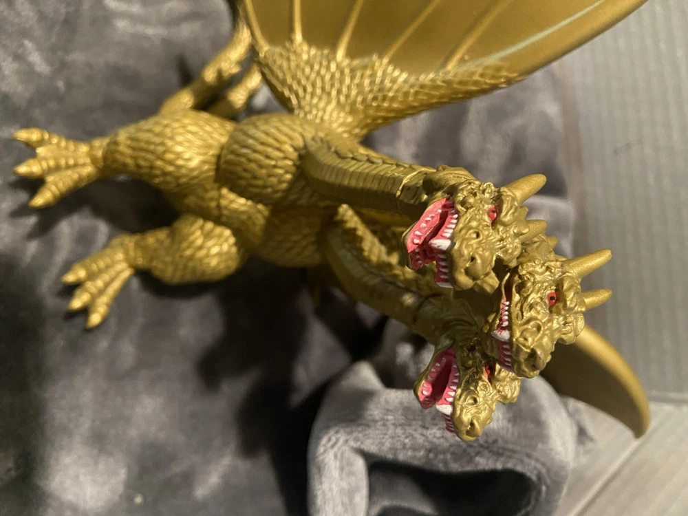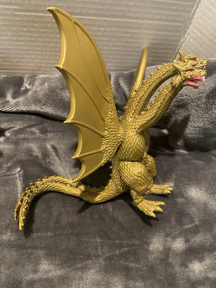 Up for sale 2 Godzilla Ghidorah figures. From smoke free collection in excellent condition. 7” tall 12” long 1998 Bandai jointed at wings & hips, softer material. 6” tall 9” long 2014 TOHO Co B.14 jointed at wings and tail, more harder martial both plastic. Nothing broken no damage. All shown in photos. You will receive exact items in photos. Please look at photo see condition. Will be shipped with padding in a box with tracking number. Thank you for looking.
