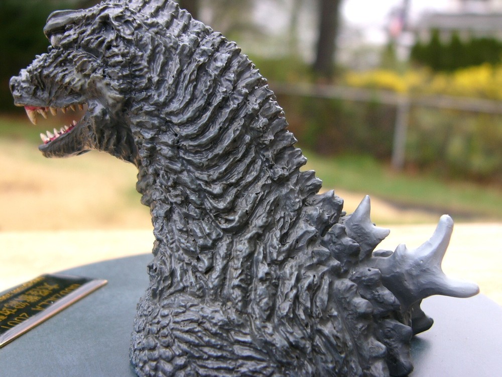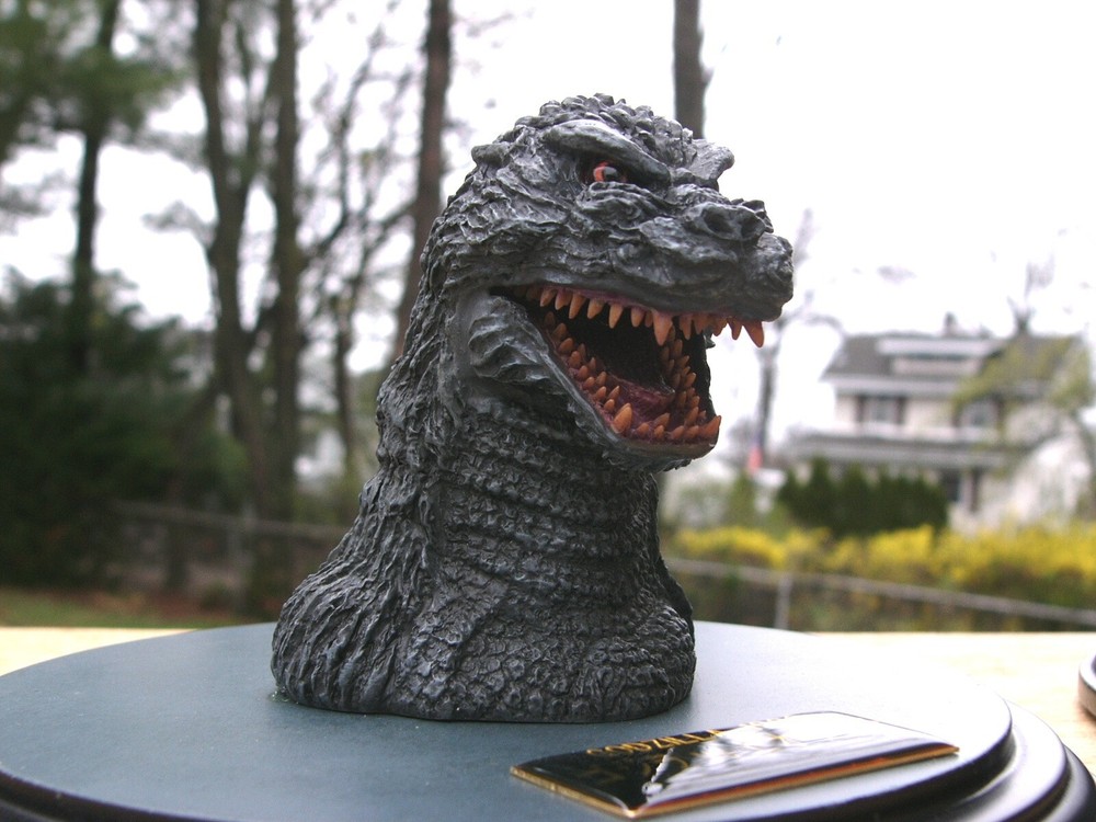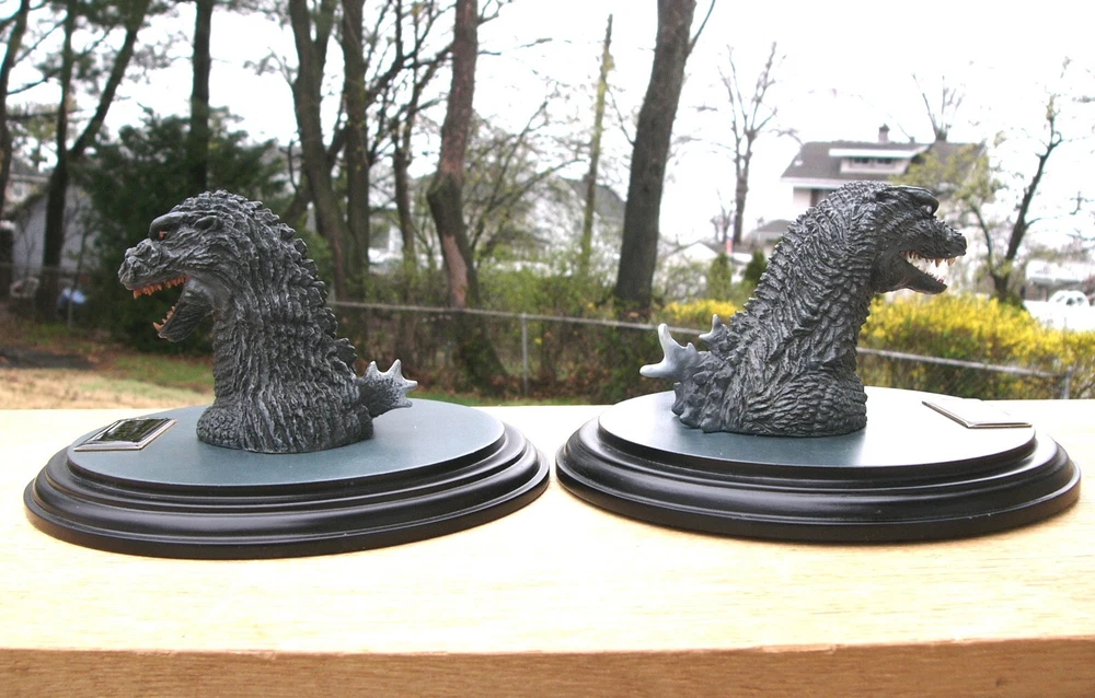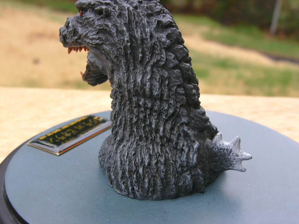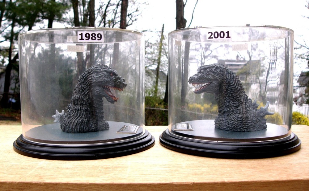 2 Godzilla Monster Heads 1989 & 2001 Movie Figures Top Quality 1989 movie title: Godzilla vs. Biollante 2001 movie title: Godzilla, Mothra & King Ghidorah These figures were expertly sculpted using quality resins, painted and approved by TOHO Studios. The heads are attached to high quality pedestals, includes Lucite clear dust covers and date plaques. These are not toys but are rare collectibles. Ships within the USA. Ships within 2 business days.