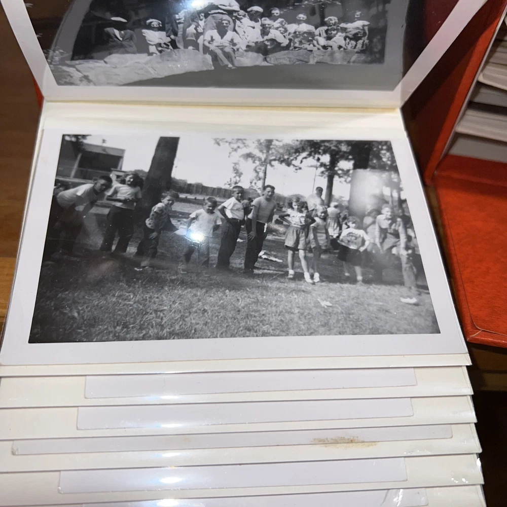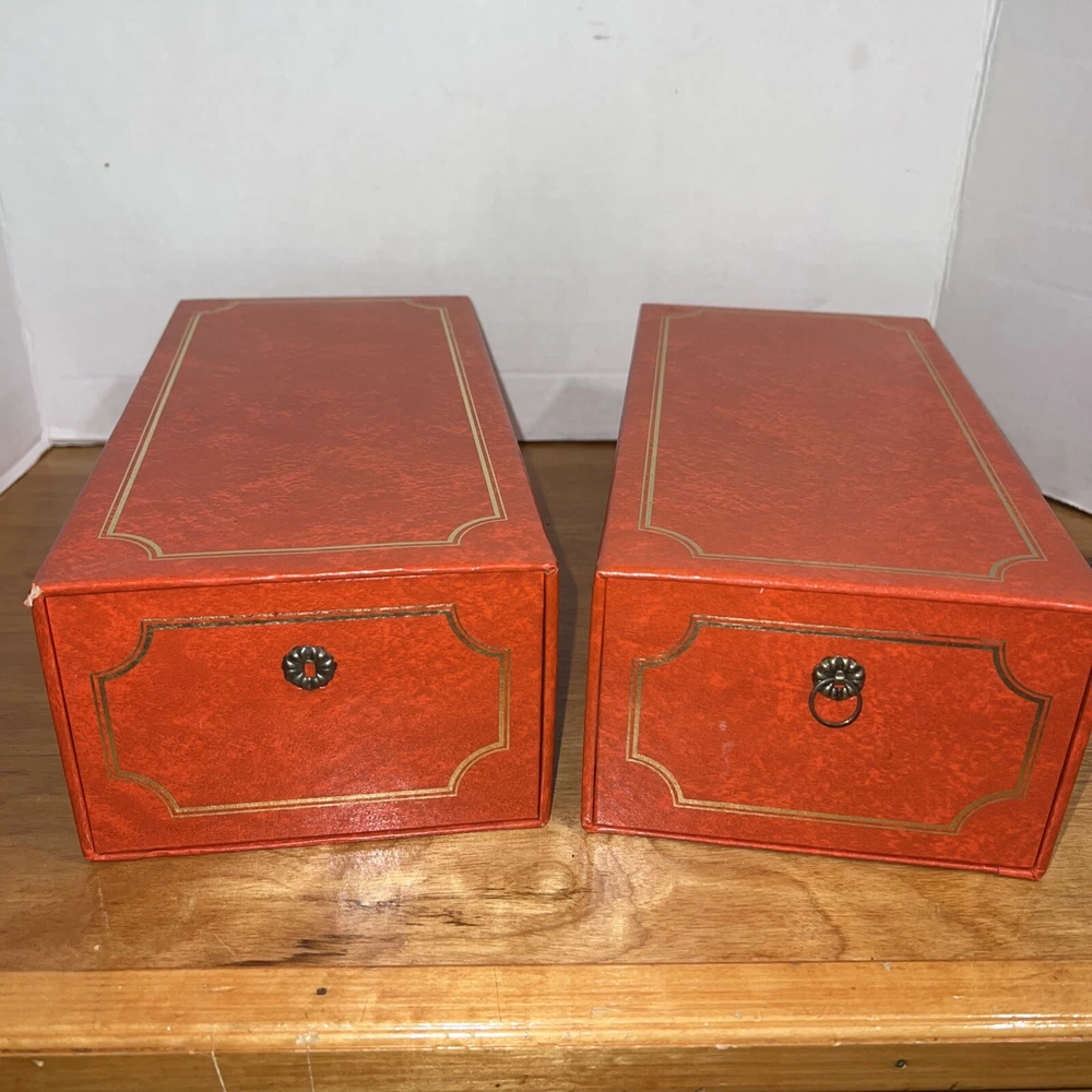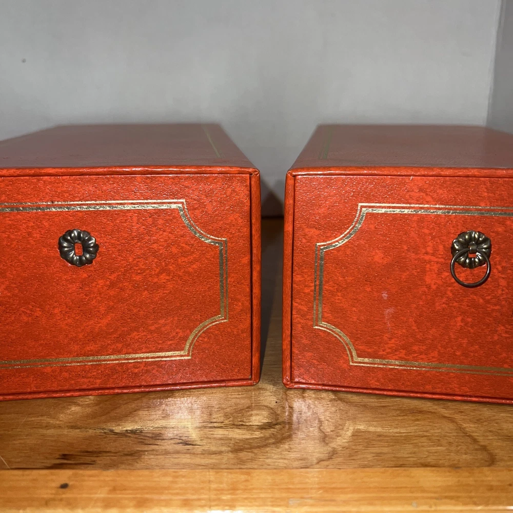 2 Holson Photo Memory Album Memory Box Red with Gold - With Sleeves And Photos. Black and white photos from the early 1900s As is...