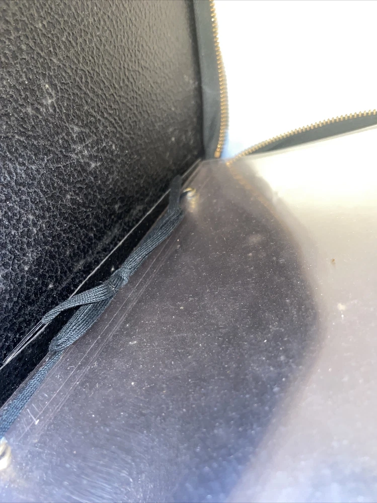 This listing features two vintage zippered folders from the 60's and 70's that are perfect for storing your precious memories. The folders have a black color and a vintage theme that adds a touch of nostalgia to your collection. The type of these slip-in albums is string bound, and they come in a set of two. The material used in the making of these folders is unknown, but it gives a feel / look of leather. These folders are estate finds and are perfect for adding to your vintage collection of photo albums and boxes. They are great for storing your memorable photos and keeping them safe.