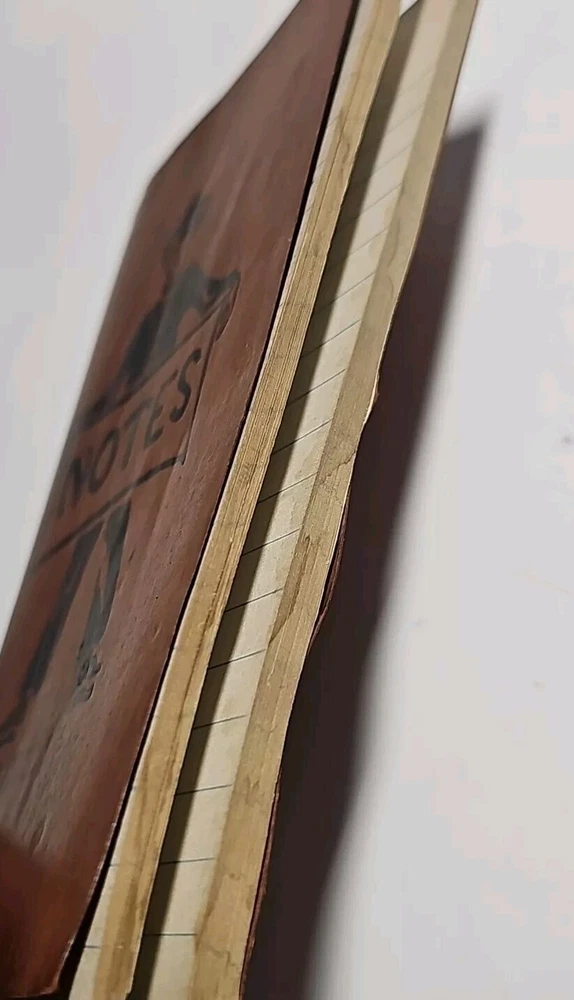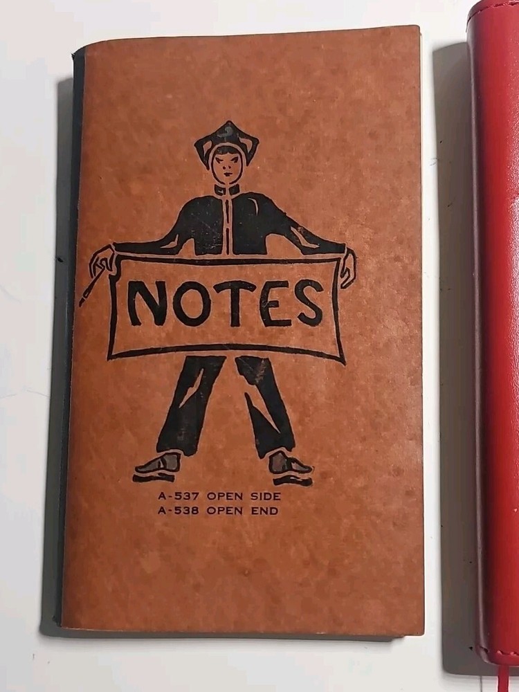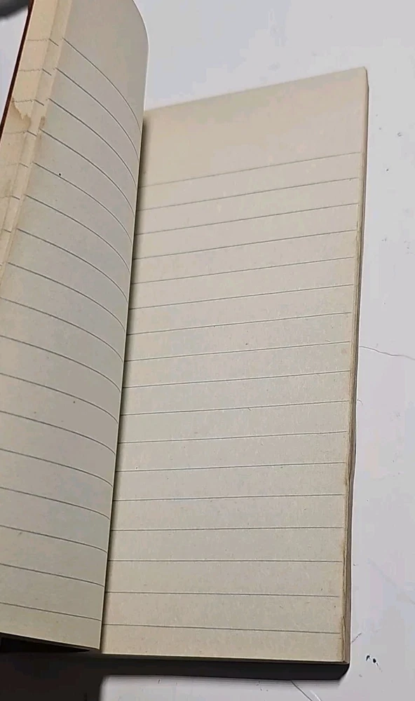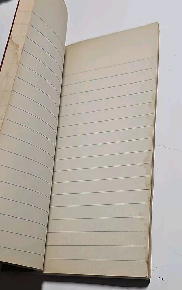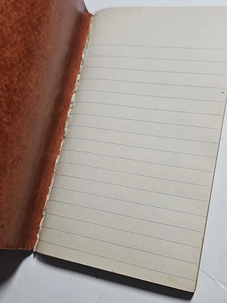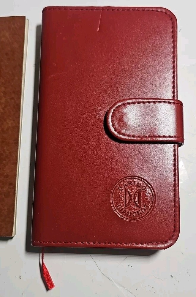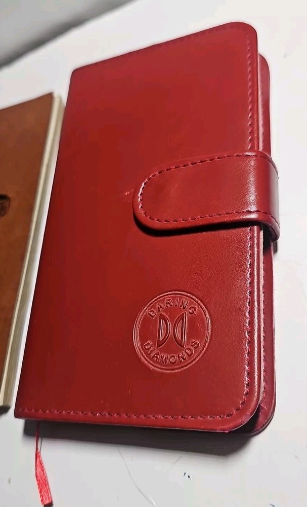 Lot of 2 old notebooks/journals. You will receive the exact Lot pictured. The brown notebook is from the 1930s, still in nice shape with some of the pages have been used/removed but there is still alot of blank pages, also has a water stain on the back cover and some of the pages. The daring diamonds red leather journal is the dirst one ive ever found, im not certain on the dste, but it has never been used and still has all its pages. Very nice journal Both books are very good pre-owned condition with some wear, as pictured.