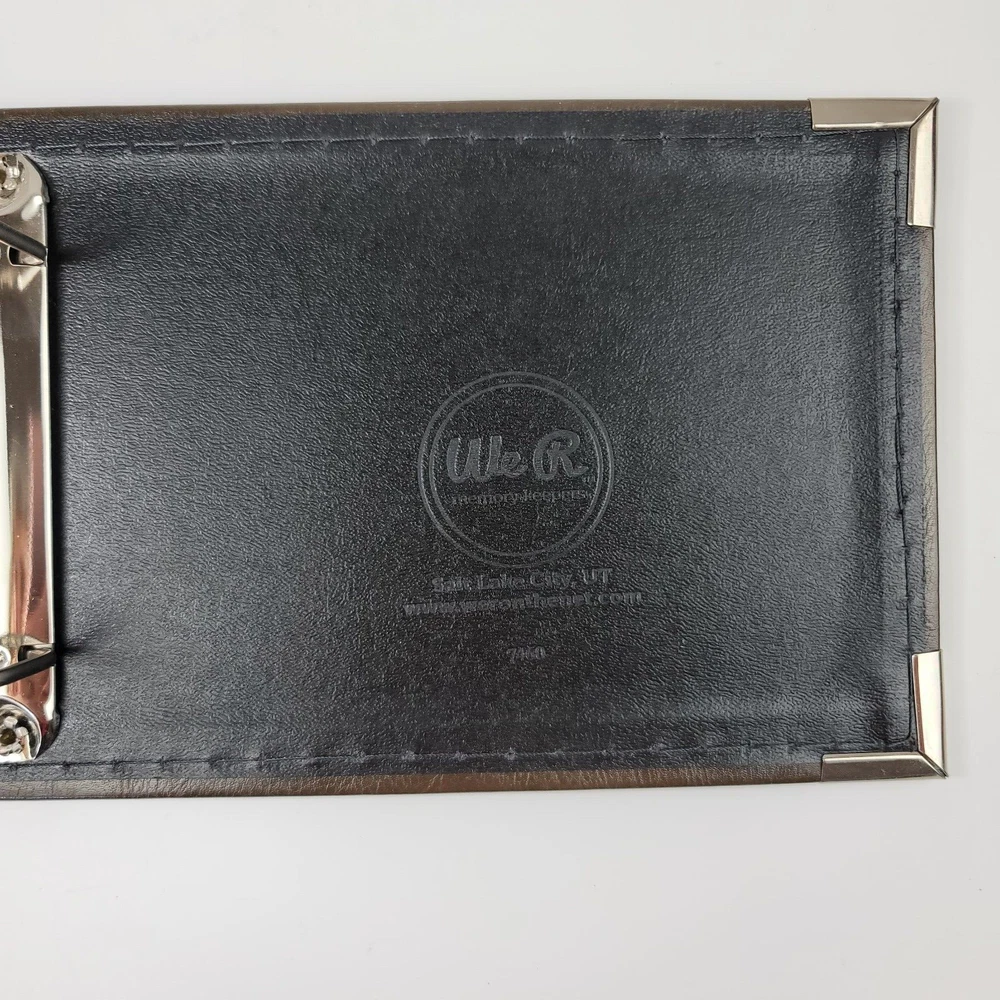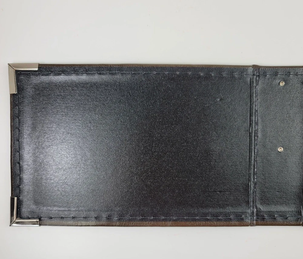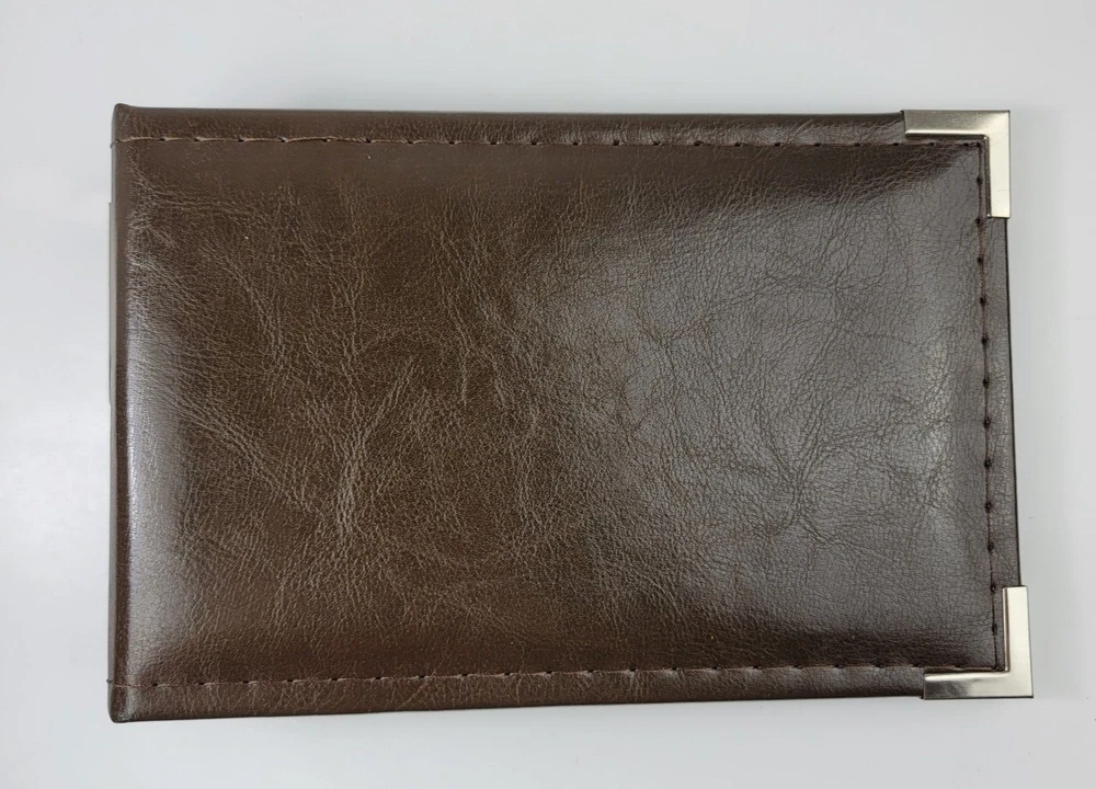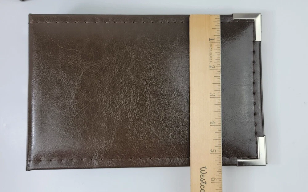 2 We R Memory Keepers Brown Leather 6" x 4" Ring Scrapbook/ Photo Album with 5- 4" x 6" Page Protectors in each album. Album measures approx. 8.5" x 5.5" x 1.75" deep. Album are unused. There is tarnish on some of the metal pieces from storage. Please see photos. This set of 2 is stored in a smoke/pet free home. Please buy with confidence that we will strive to make this an excellent transaction and you will enjoy your item. Please notice no returns. Thank you.