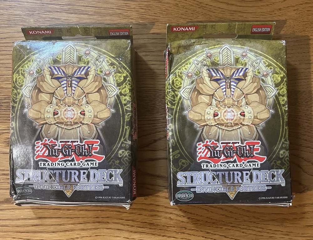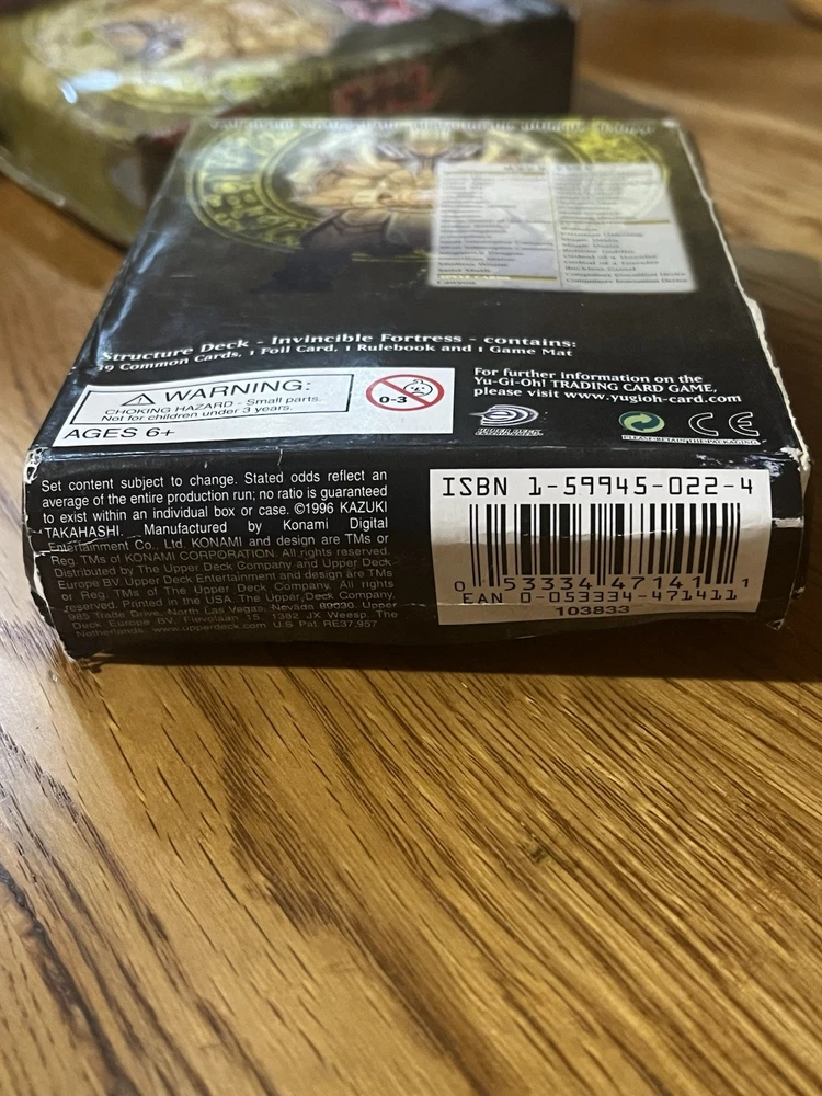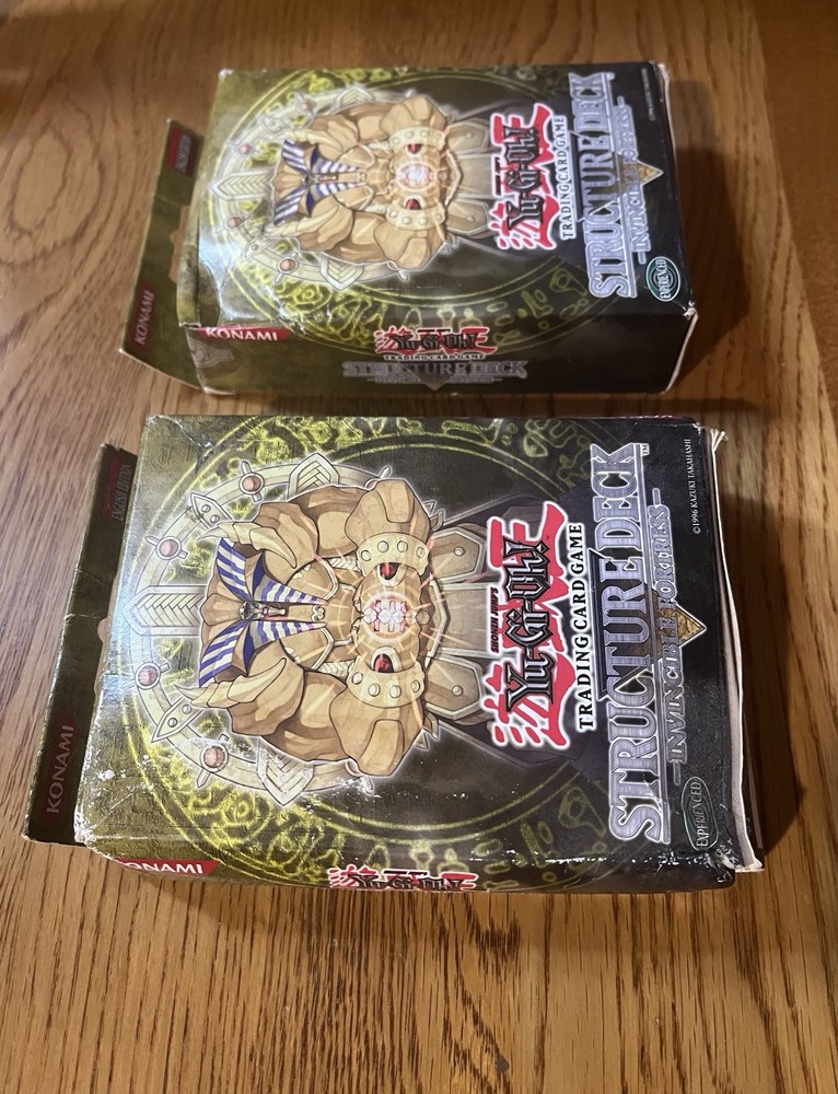 Hello and thank you for checking out my listing! Here you will get 2 sets. Please see all of the photos provided, the boxes are not in great shape. I’ve had these stowed away for many years, both are still completely sealed. I’ve taken pictures from all angles so you can see the condition I am describing and to be as transparent as possible. I have a couple others I will be listing so if you can, please check them out. These, if purchased, will be mailed out in a 12 x 9 manila envelope and each structure deck box wrapped in bubble wrap. As stated before, the boxes are in rough shape but still sealed with all contents. Original items. This is a set of 2 boxes, released in 2006 (I purchased them that long ago) English Edition Yu-Gi-Oh TCG Invincible Storm decks by Konami. Each deck contains 40 cards, 1 rule book and 1 game mat. Suitable for ages 6 and up. The product is not autographed or graded, and was printed in the USA. I ship fast, same day if the post office is open. Thank you again for taking a look and have a great evening!
