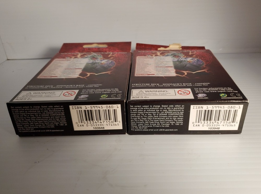 Up for sale are two Yu-Gi-Oh! Dinosaur's Rage structure decks, each containing 40 cards. The decks are factory sealed, making them a great addition to any Yu-Gi-Oh! collection. Sold as-is. See pictures for details. Please ask any questions prior to purchase. WN_VS6527