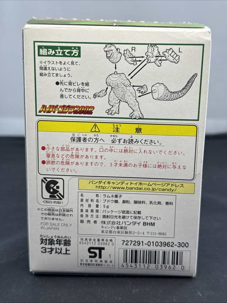 2001 BANDAI 4” GODZILLA 2002 Hyper Candy GODZILLA Figure NEW IN BOX. Please note that the top of the box was opened, but the contents are still new in bag.